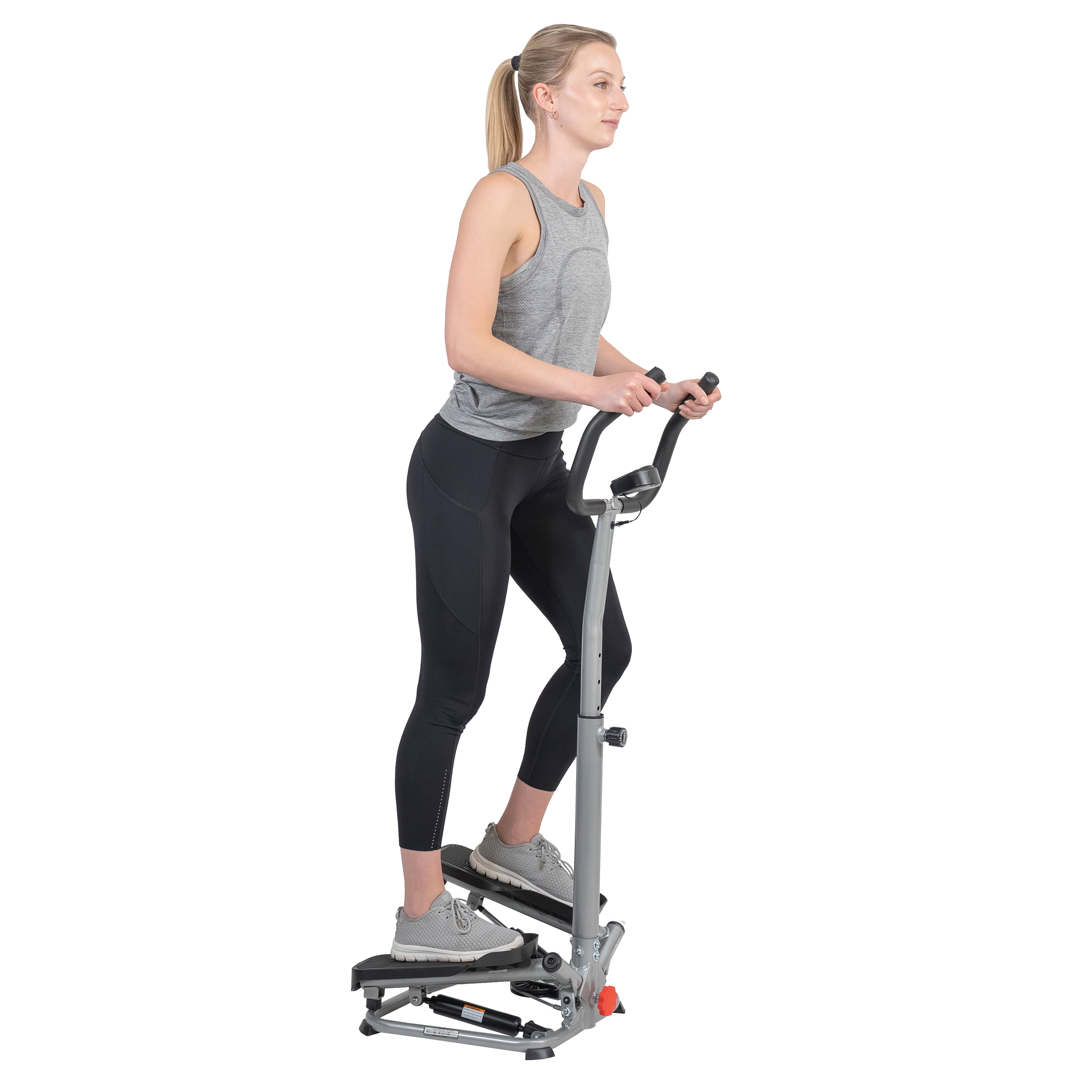 LOW-IMPACT: The Twist Stair Stepper low-impact workout experience, allowing users to tailor intensity levels, engage in effective cardio, target leg muscles, incorporate interval training. TWISTING STEPS: The lateral side-to-side action imparts a fluid step motion, engaging different muscles compared to conventional step machines, providing a comprehensive and dynamic workout experience. STURDY HANDLEBAR SUPPORT: The sturdy handlebar provides essential support and balance, allowing users to maintain proper posture and stability during their workouts, ensuring a safe and effective exercise experience. LCD MONITOR WITH COMPREHENSIVE METRICS: The integrated LCD monitor displays essential metrics including calories burned, step count, scan function, and total count, offering users real-time feedback on their progress. QUIET AND SMOOTH: Equipped with quiet and smooth hydraulics, ensuring a noise-free and seamless workout experience. This feature allows users to exercise without disturbing others, making it ideal for home use and distraction-free workouts. HEIGHT ADJUSTMENT & CUSTOMIZED INTENSITY: The Stepper offers adjustable step height, allowing users to customize the intensity of their workouts. By altering the step height, individuals can tailor the resistance levels to match their fitness goals. EASY ASSEMBLY AND STORAGE: Designed for effortless assembly, allowing users to set it up quickly and start their workouts without hassle. Its space-saving design ensures easy storage, making it convenient for users with limited space at home. STURDY FRAME FOR STABILITY: Robust and durable frame, providing exceptional stability and support during workouts. This sturdy construction ensures user safety, allowing for confident and intense exercise sessions. Sunny Health & Fitness Commitment: A top fitness brand for 20+ years, offers superior products and a dedication to excellence. Count on our committed customer service and enjoy peace of mind with a 1-year warranty on the structural frame.