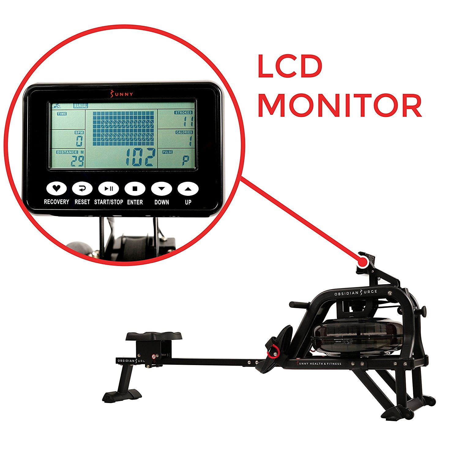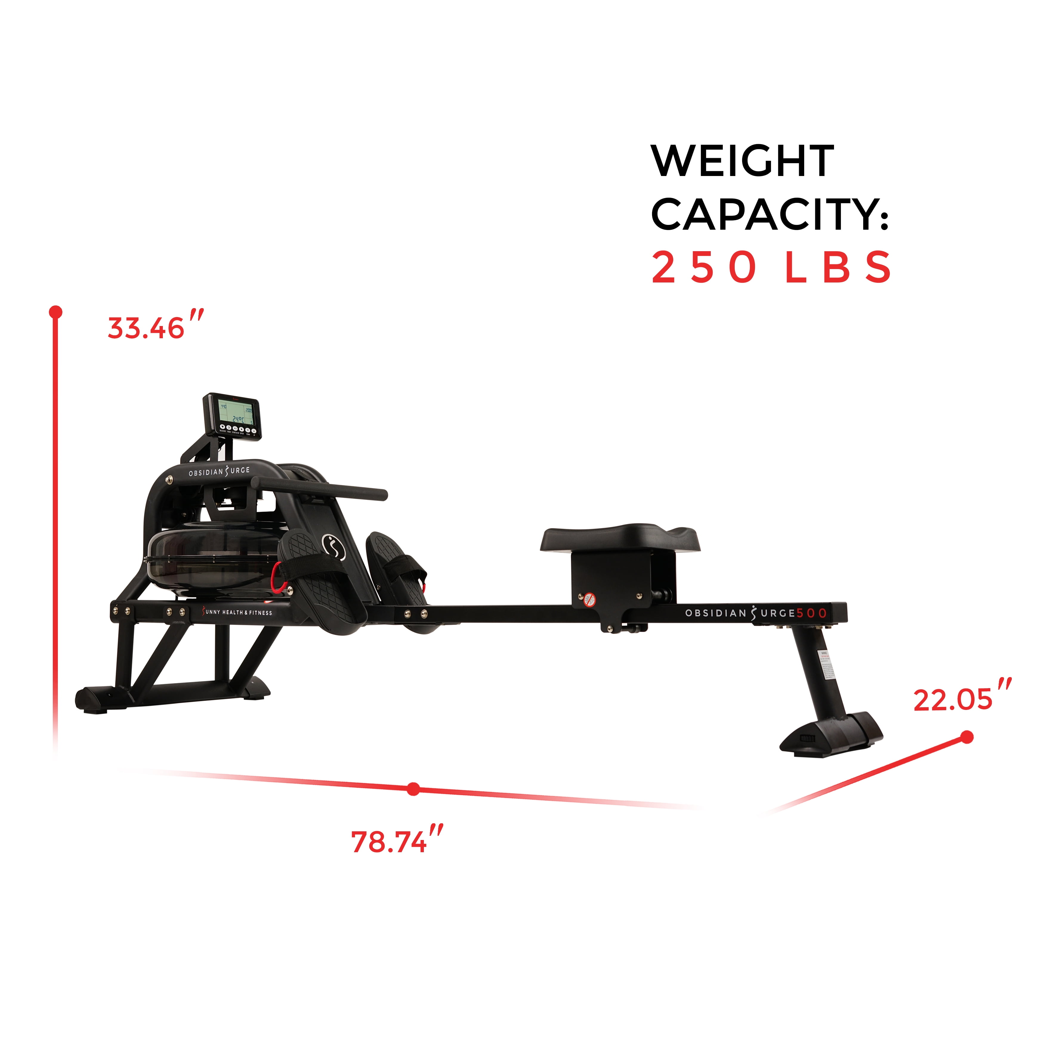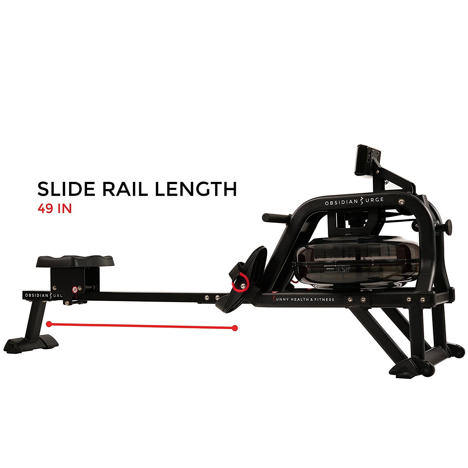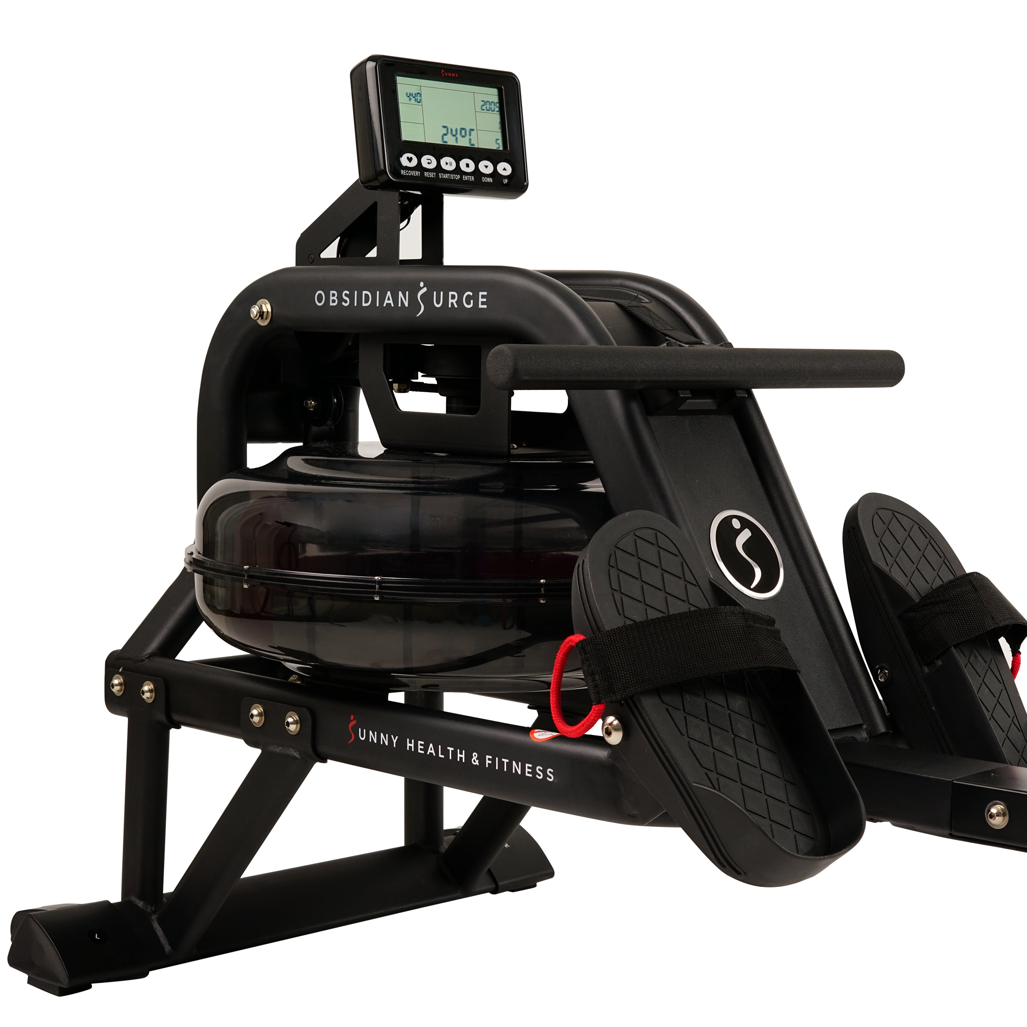 WATER PERFORMANCE: Row on the water in the comfort of your home. The water creates a smooth and steady rowing experience with every stroke. Instant resistance is available with the flywheel and the fan blades. The faster the fan blades spin, the higher resistance and dynamic response caused by the harmonious interaction with the water, providing a unique experience. DESIGN: Constructed with lightweight sturdy steel, for solid performance and durability. The Hydro Blades mimic the dynamic movements of competitive rowing. Non- slip HD handlebar is sweat-resistant and wide enough to accommodate different hand widths. Tear-resistant mesh belt withstands the stress of repeated pulling. Keep the rower sturdy and level with the adjustable leveling end caps. ERGO-EFFICIENT: Molded padded seat is designed to be comfortable and functional. High-profile seat design is 17 inches from the ground, which allows users to get on and off the seat without bending and straining your back. Non-slip foot pedals with durable nylon Velcro straps keep feet secure. Foot pads pivot to allow more freedom of the foot and ankle to ensure optimal rowing mechanics. FITNESS TECHNOLOGY: Sunny Health & Fitness’s R2 Fitness Meter is designed to accurately track all essential workout metrics: total time, 500 m time, SPM, total strokes, calories, HR, ambient temperature, and more. R2 Fitness Meter allows the user to tailor a personalized workout or use the built preprogrammed features. Wireless connection with a compatible heart rate strap. EASY STORAGE: High-density non-marking rubber wheels are perfect for easy transport and store upright when not in use. Recommended to be placed upright against the wall for storage. ANT+ HEART RATE BELT COMPATIBILITY: Compatible with ANT+ heart rate technology, like heart rate belts or watches, so you can measure an accurate pulse and monitor the effectiveness of your workout. When worn around your chest during your exercise routine, the pulse belt will transmit your heart rate to the advanced digital monitor. Heart rate belt sold separately.
