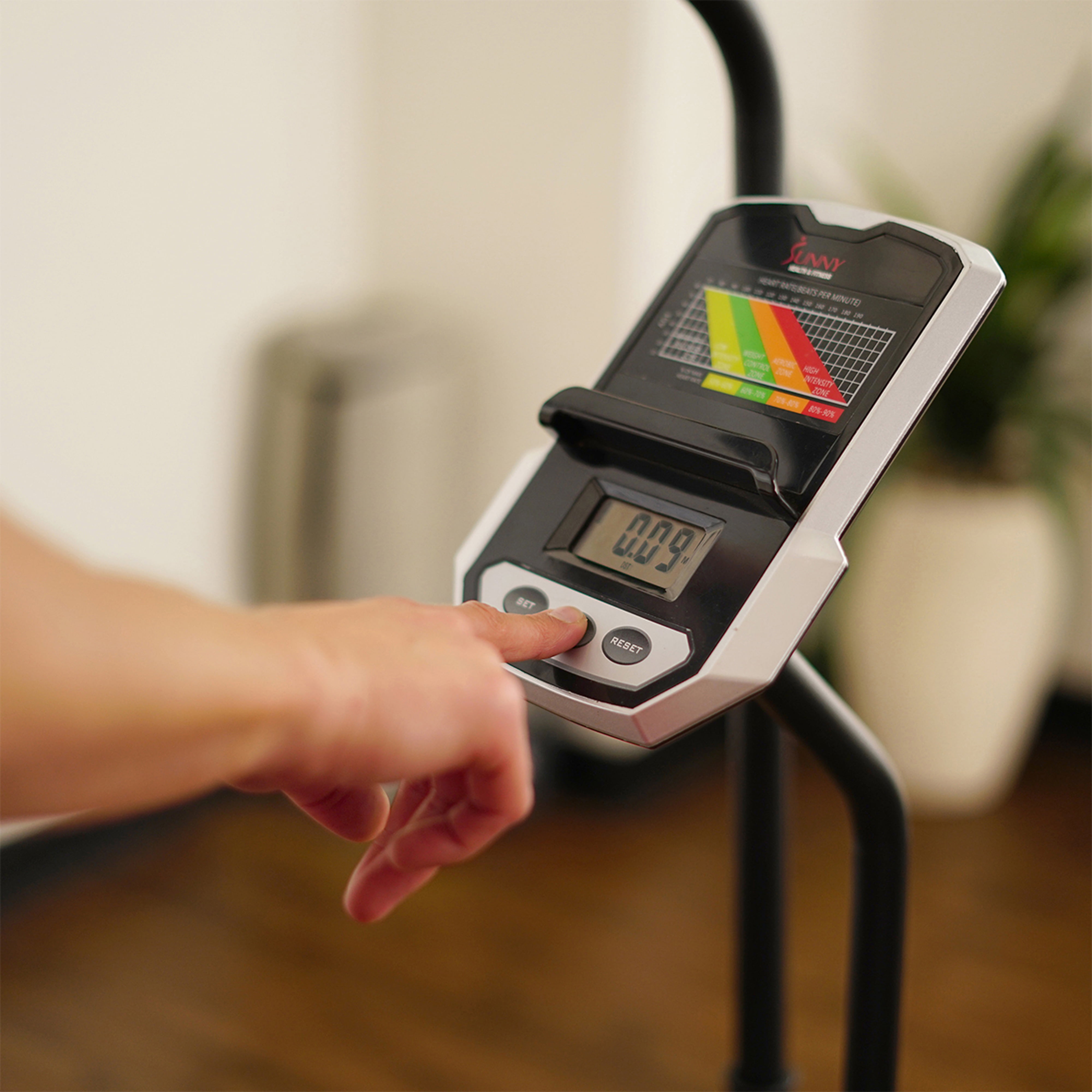 Build endurance and stamina with the SF-B2715 Zephyr Air Bike by Sunny Health and Fitness. Air resistance technology creates higher resistance making this workout machine low impact yet, completely intense. Achieve a full body workout when utilizing the arm resistance handlebars while cycling. Track all of your fitness results on the digital monitor. Experience superior comfort on the Zephyr Bike with features which include padded seating, adjustable seat and pedals, and rubber foam handles. The bike measures at a convenient 44L X 24W X 45H (inches). Achieve an incredible workout on The Zephyr Air Bike: the bike built to take punishment.