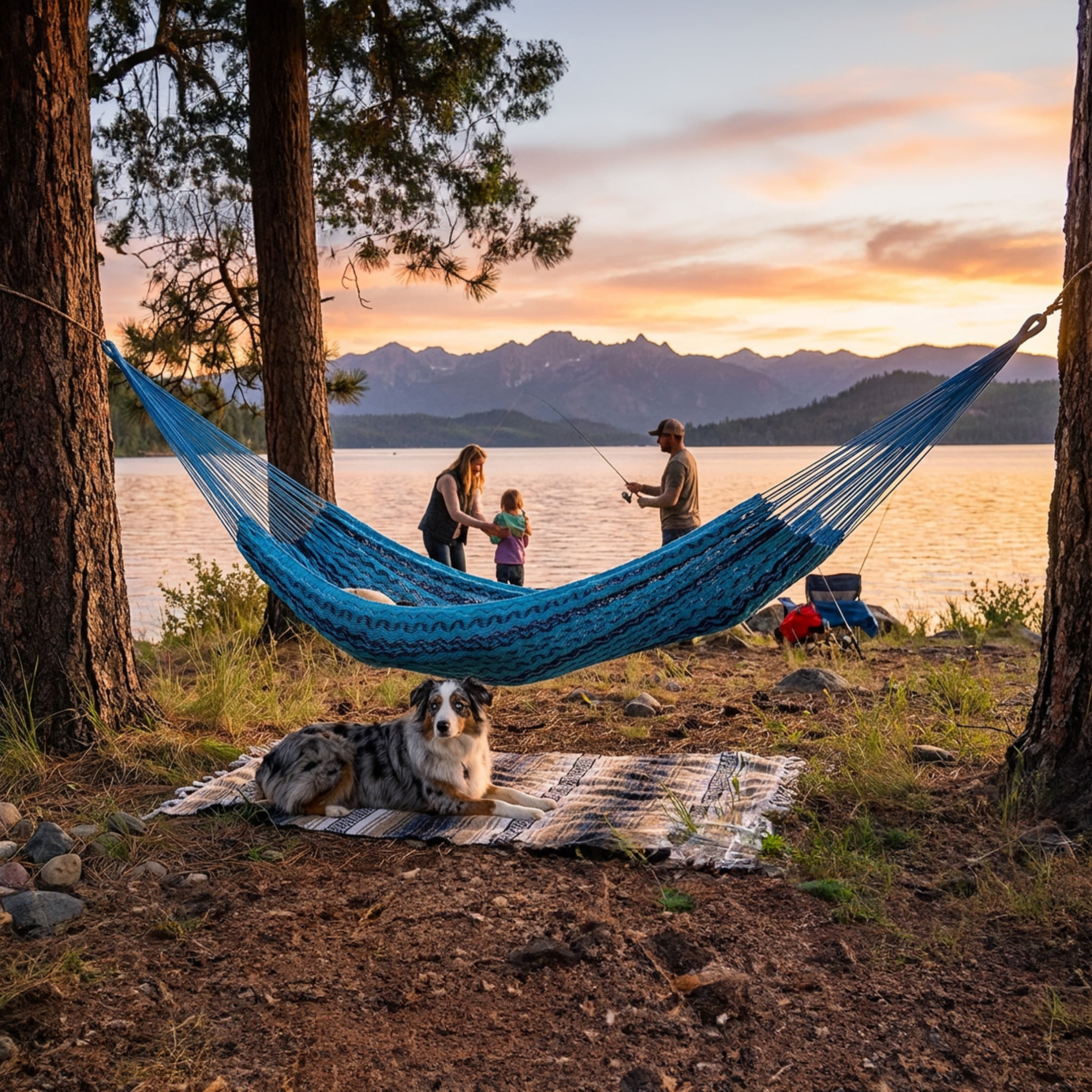 SPACIOUS COMFORT FOR 2 OR MORE: Measuring 156″ W x 90″ D, this extra-large patio hammock easily accommodates one, two, or even the whole family with a weight capacity of 625 lbs. The oversized hammock bed area (79″ W x 90″ D) offers plenty of room to stretch out, nap, or lounge in total ease. SOFT YET STRONG HANDWOVEN CRAFTSMANSHIP: Made from 80% cotton and 20% nylon, this Mayan hammock combines softness with lasting strength. Each piece of the rope hammock is handwoven with thick cotton cord, giving it a supportive yet breathable structure built to endure daily use. VIBRANT AND DURABLE FOR ANY SETTING: Designed for both indoor and outdoor use, this 2 person hammock hammock brings color and comfort to patios, decks, balconies, or backyards. The unique handwoven patterns vary with each hammock, adding authentic style and personality to any space. BUILT TO HANG ANYWHERE WITH EASE: This large hammock is simple to set up between trees or with a 15′ hammock stand (sold separately). Whether it’s lakeside, beachside, or in the backyard, the durable nylon blend ensures stability across multiple environments. WORRY-FREE PURCHASING: Sunnydaze Decor backs its products with a 1-year manufacturer’s warranty.