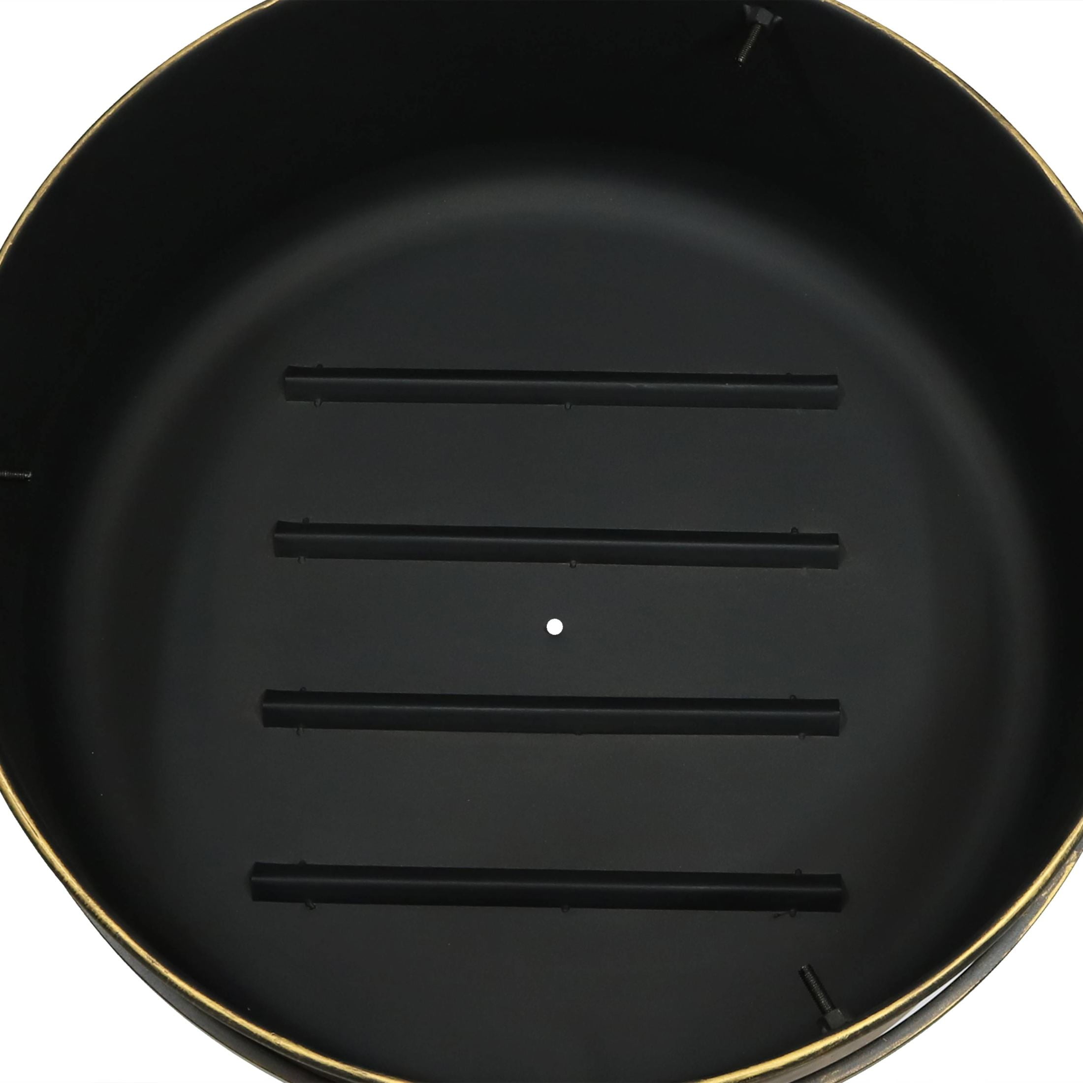 Sunnydaze 24″ Round Wood-Burning Dark Bronze Finish Steel Cauldron Outdoor Fire Pit Bowl This steel, cauldron-style fire pit with an included spark screen is sure to be a stunning centerpiece on any patio, yard, campsite, or other outdoor space. With its decorative legs, built-in wood grate, durable steel construction, and an attractive bronze finish, this fire pit is sure to be a hit among all your friends and family. The built-in wood grate allows for wood to sit comfortably while creating convenient air circulation all night long. Use the poker to easily maneuver wood and keep the fire burning all night long or use it to lift up the spark screen when it’s hot. Create the fire pit space of the year! This fire pit features a beautiful dark bronze finish on the bowl and legs for further heat resistance and added style. The eye-catching design and details this fire pit has to offer is sure to complement any backyard decor.