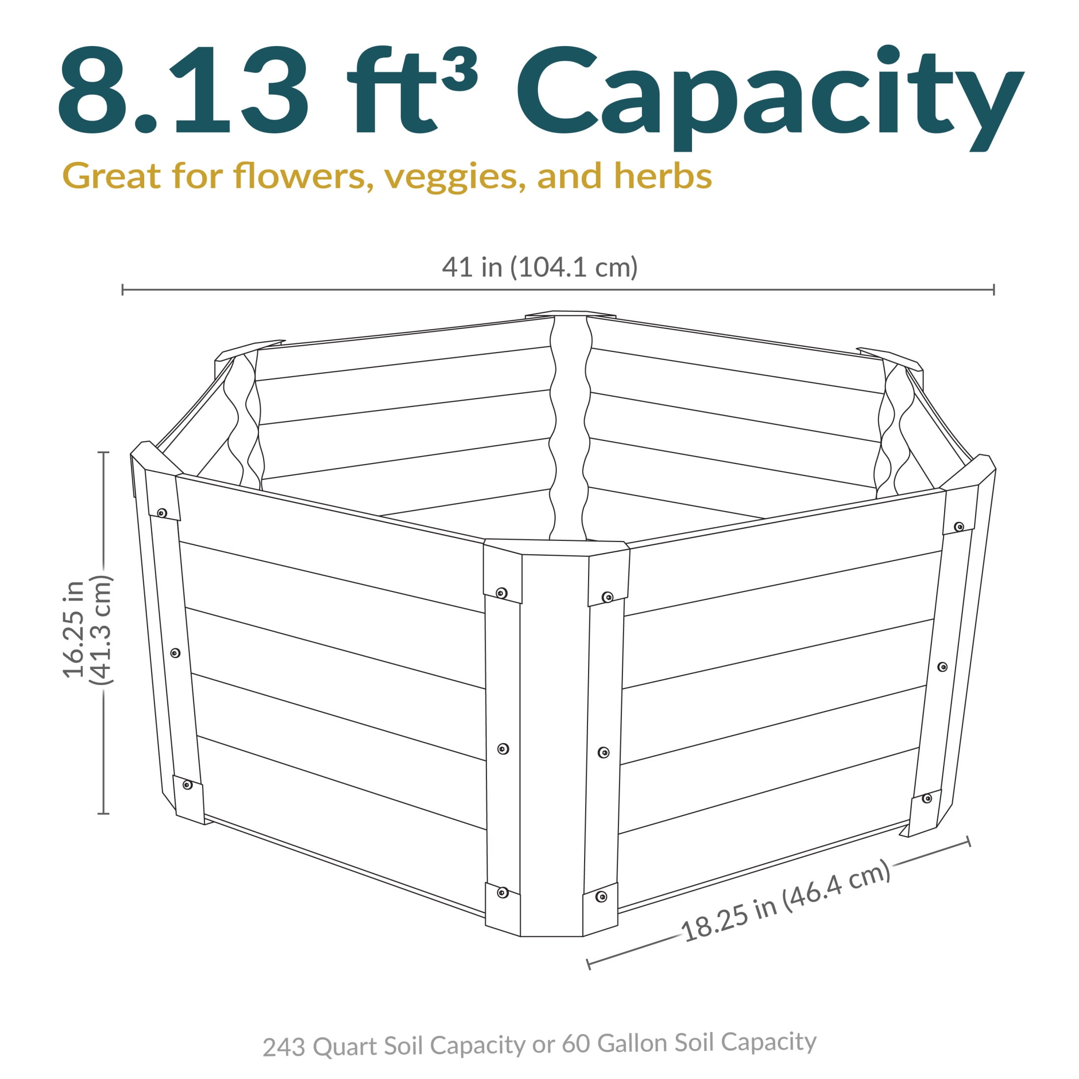 Sunnydaze 41″ x 35.5″ x 16.25″ Hexagon Gray Galvanized Steel Raised Garden Bed