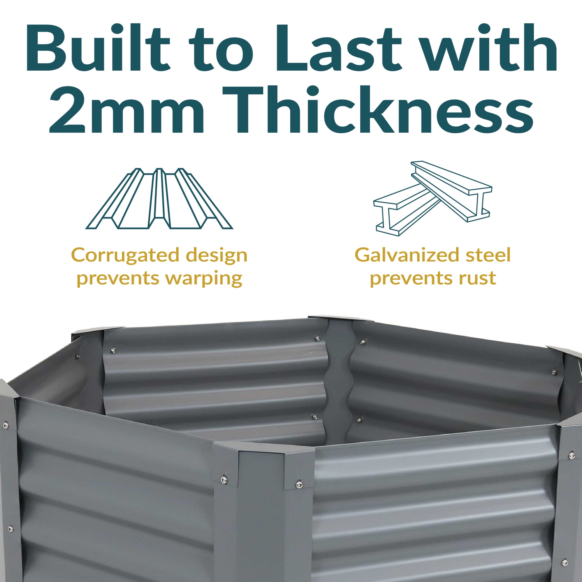 AMPLE GROWING SPACE: This elevated garden bed has plenty of space for growing a variety of vegetables and flowers. The raised bed measures 41″ W (from corner to corner) x 35.5″ D (from straight edge to straight edge) x 16.25″ H, weighs 18.6 lbs, and has a 8.13 cubic foot soil capacity. The side panels are 18.25″ W x 2mm thick. Each corner panel is 1mm thick. DURABLE CONSTRUCTION: This raised garden bed kit is made from galvanized steel, providing superior durability and stability compared to wood or plastic. Galvanized steel withstands harsh weather conditions for long-lasting use. EASY TO USE: All hardware and tools are included to assemble the garden bed. Simply place the kit above ground, add soil, and watch as veggies and plants begin to grow. PROMOTES HEALTHY ROOTS: This raised bed for gardening vegetables, fruits, flowers, and herbs supports root development for healthy and strong plants. WORRY-FREE PURCHASING: Sunnydaze Decor backs its products with a 1-year manufacturer’s warranty.