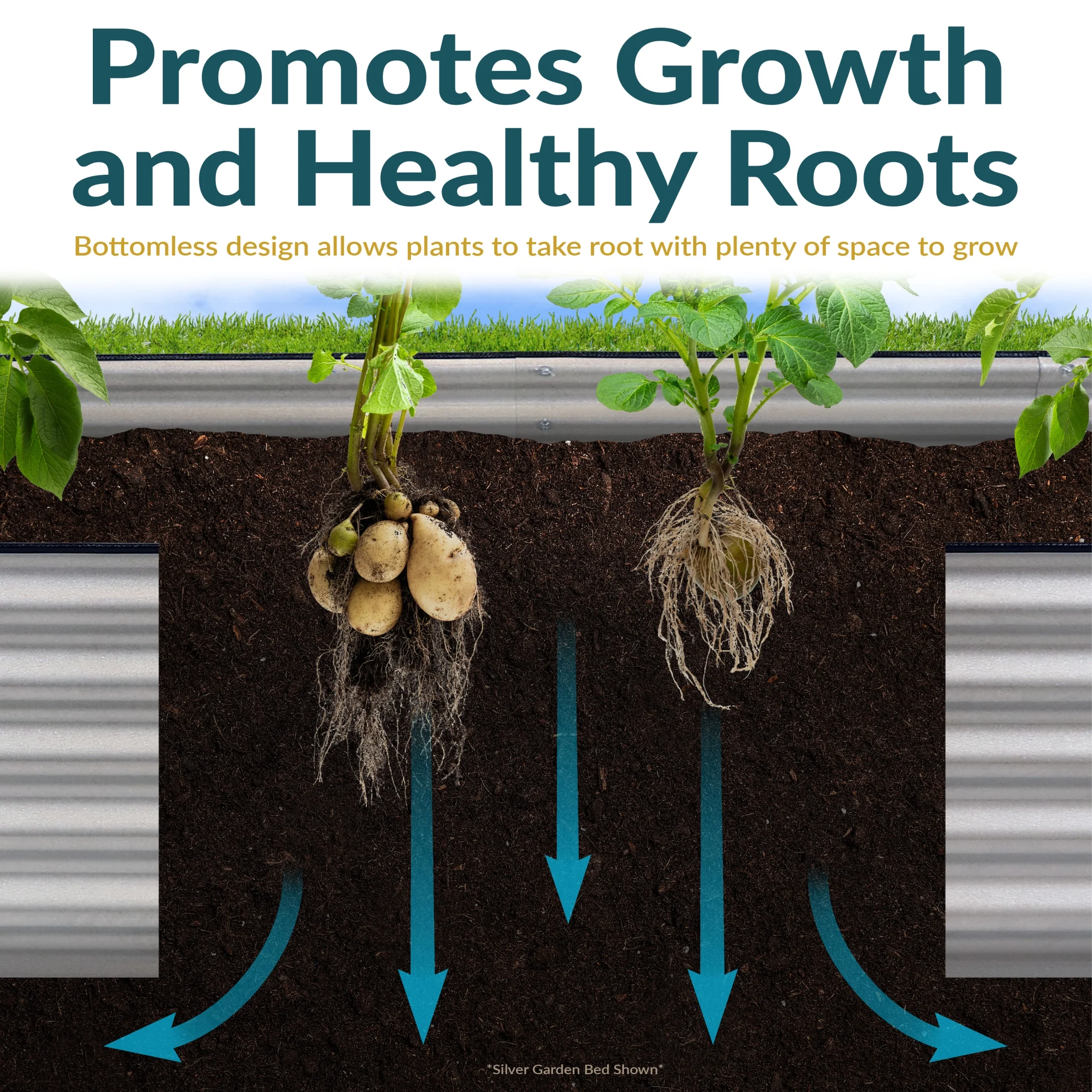 AMPLE GROWING SPACE: This galvanized corrugated steel garden bed has plenty of space for growing vegetables and herbs or beautiful flowers in the backyard. The raised planter box measures 59.5″ W x 59.5″ D x 11.75″ H, weighs 19.6 lbs, and has a soil capacity of 15.4 cu ft or 115 gal. BUILT TO LAST: Made from 1mm thick galvanized steel, these metal raised garden beds are designed for long-term durability and resistance to rust and weather damage. Galvanized steel is sturdy and capable of holding large amounts of soil and plants without bending or buckling. PROMOTES HEALTHY PLANTS: The raised metal garden bed improves soil structure and drainage, reducing the risk of waterlogging and root rot. The elevated design keeps soil warmer and less compacted, promoting faster germination and stronger root systems. The garden bed also provides plants with better aeration, access to nutrients, and protection from common ground-level pests for more better growth and higher yields. QUICK AND EASY SETUP: Each garden bed panel has pre-drilled holes and all hardware required for assembly is included, making setup simple. A screwdriver is required for assembly but not included. Once assembled, place the garden bed in the yard or landscape, add soil, and begin to plant vegetables or flowers. WORRY-FREE PURCHASING: Sunnydaze Decor backs its products with a 1-year manufacturer’s warranty.