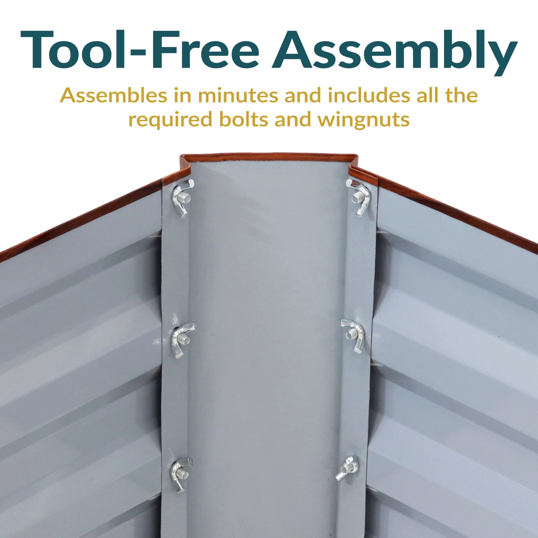 Sunnydaze 59.5″ x 59.5″ x 11.75″ L-Shaped Woodgrain Galvanized Steel Raised Garden Bed Grow flowers, vegetables, herbs, greenery, and other plants with ease in the garden or yard with this galvanized steel raised garden bed. Place this L-shaped garden bed at the corners or center of the garden to create a growing area that is easy to maneuver in. This corner garden bed is sure to add height and health to any garden space with extra capacity for soil and growth. Raised garden beds provide plants with better soil and moisture drainage to produce a higher yield. Made from durable galvanized steel, this raised garden bed is weather resistant and won’t crack in freezing temperatures. This metal raised bed makes gardening easier by keeping your plants at a higher level as they grow to alleviate stress on the back while tending to plants. This garden bed comes with all the hardware and components required for assembly.