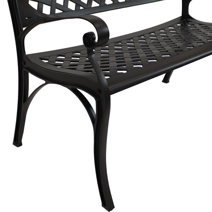 You will fall in love with the style and comfort of this 2-person outdoor garden bench! The inward-sloped seat creates a comfortable yet sturdy area to sit for an extended period of time and take in the tranquil surroundings. The classic checkered design makes a beautiful addition to any outdoor space or to accent a larger garden area. Made from durable weather-resistant cast aluminum material this outdoor garden bench is sure to last for many years to come.