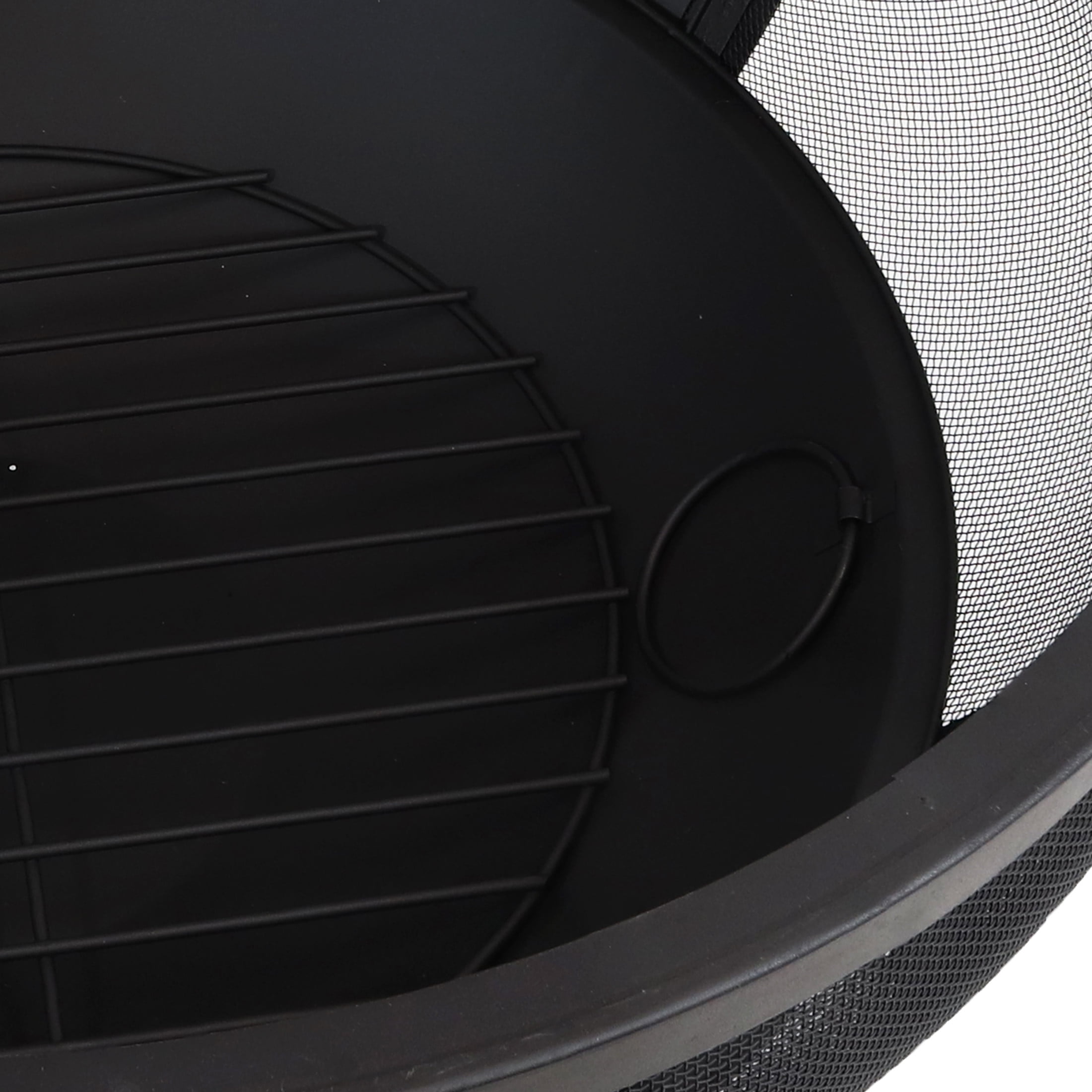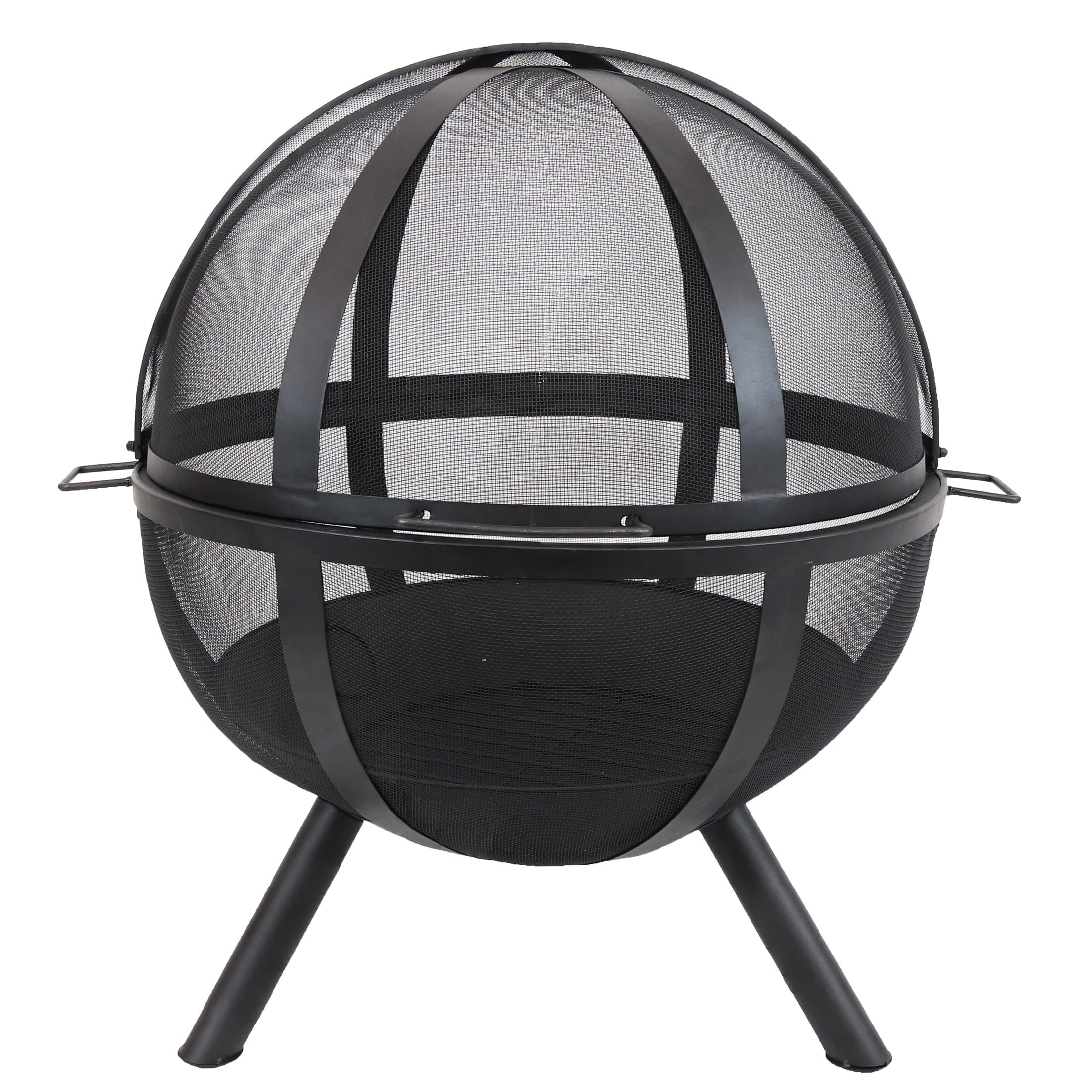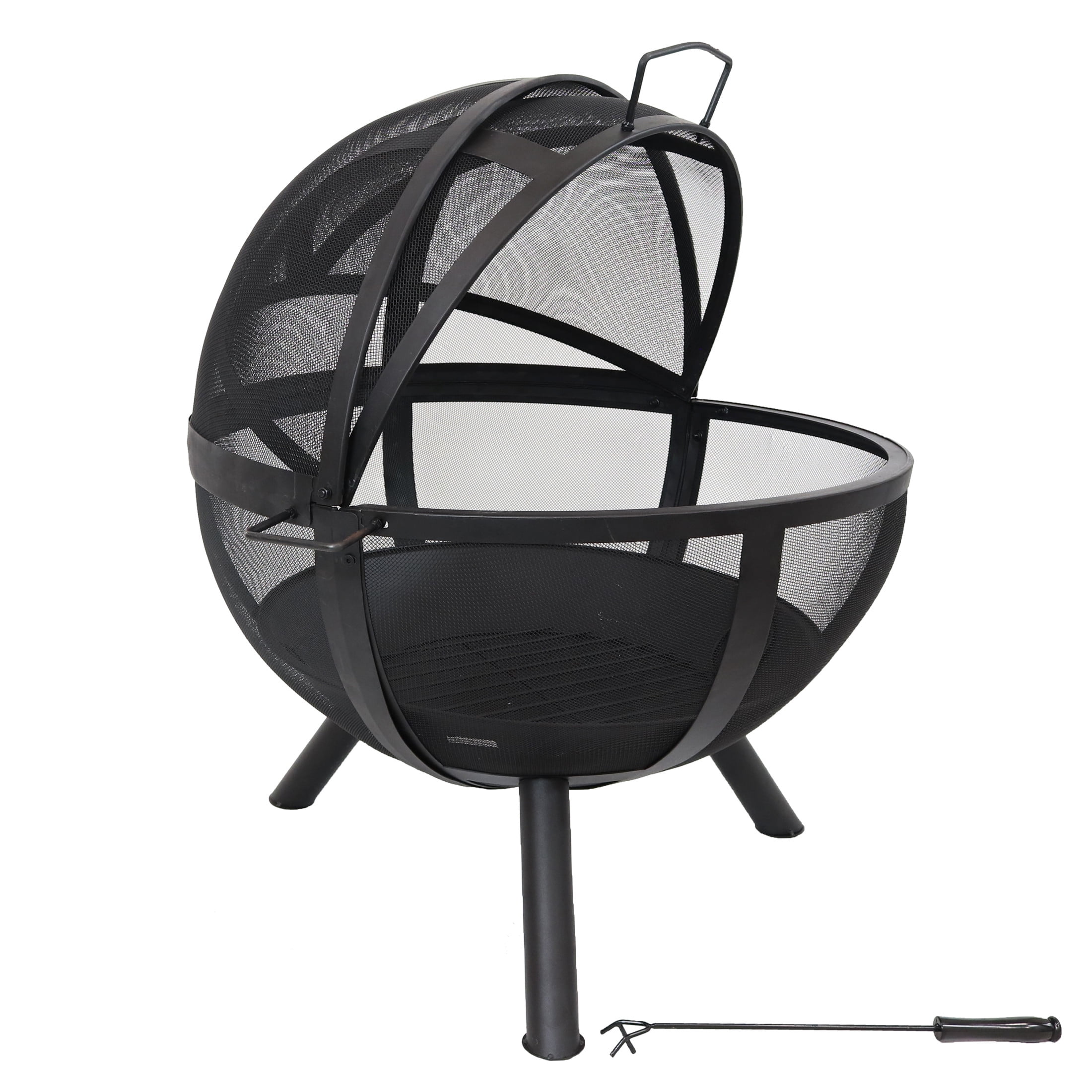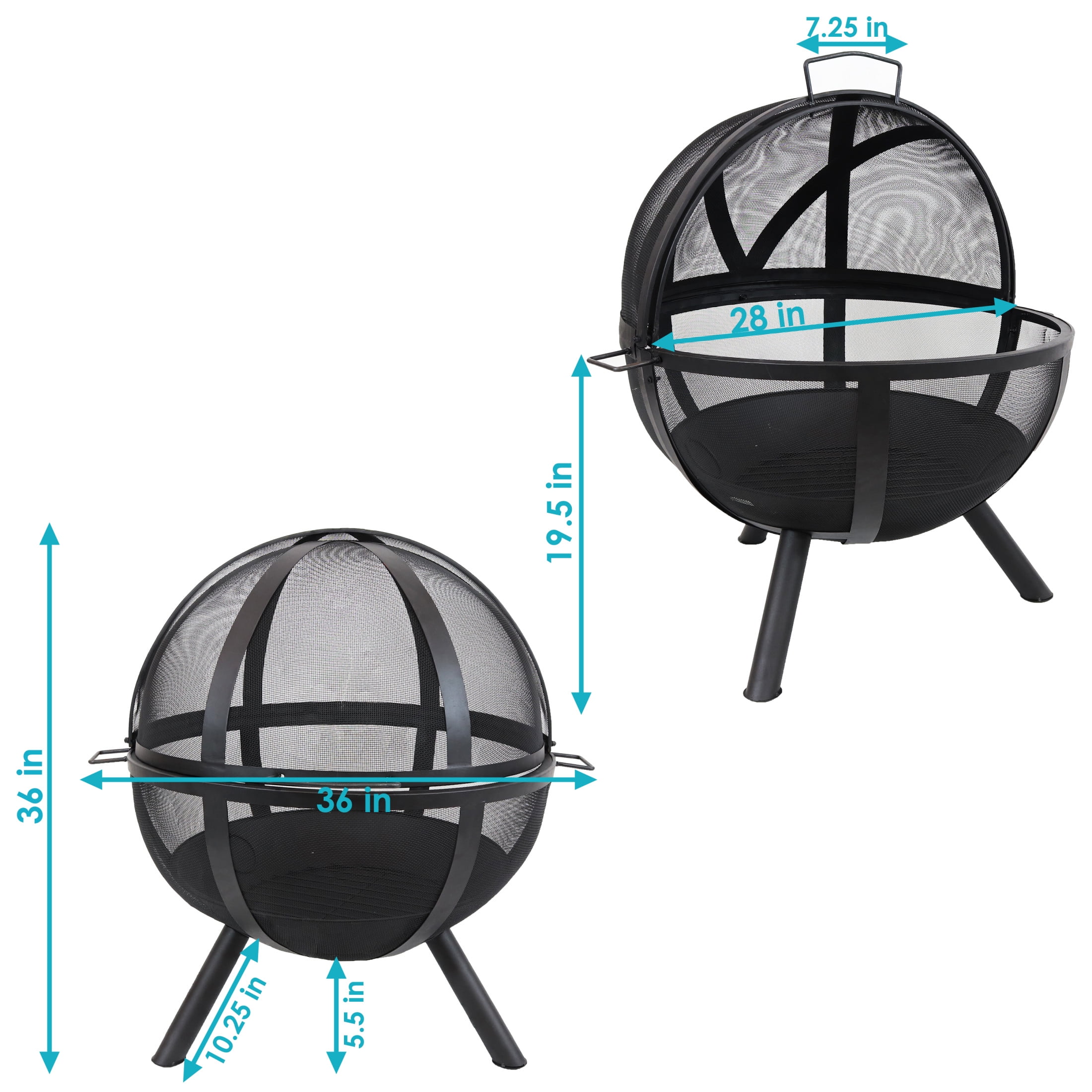 Sunnydaze Flaming Ball 30″ Round Wood-Burning Black Finish Steel Fire Pit with Poker Create a striking centerpiece for the backyard or patio with this modern Flaming Ball fire pit. This fire pit has handles on each side so it is simple to move from place to place. A large front handle allows the fire pit door to easily glide open to access the flames. Close it up again after tending the fire to keep stray sparks and embers safely contained inside thanks to the metal mesh design. Plus, this fire pit is made from a durable metal construction and metal mesh material and finished with a high-temperature, black paint finish for ultimate durability. It comes with a 200D PVC cover to ensure longevity. After the fire has been completely extinguished and drape the protective cover over the fire pit to help protect it from the outdoor elements when not in use. Plus, this fire pit includes a 16″ poker to maneuver logs in the fire without worrying about burns, and a 16.5″ firewood grate to allow airflow for brighter burning fires. The ash fire bowl tray has handles so it is easy to lift out, remove the ashes, and clean.
