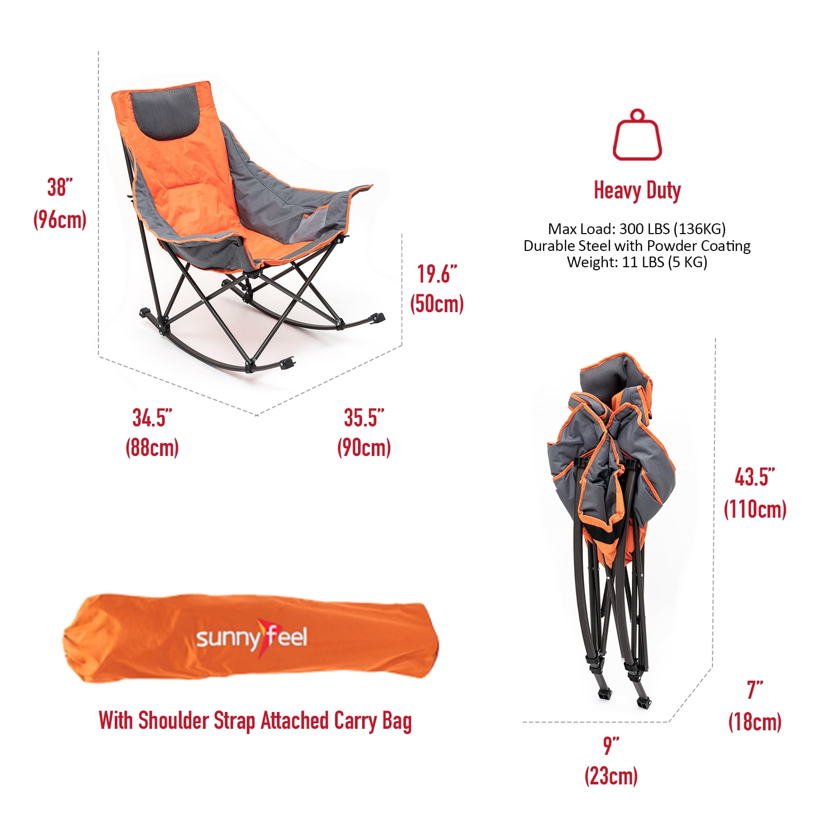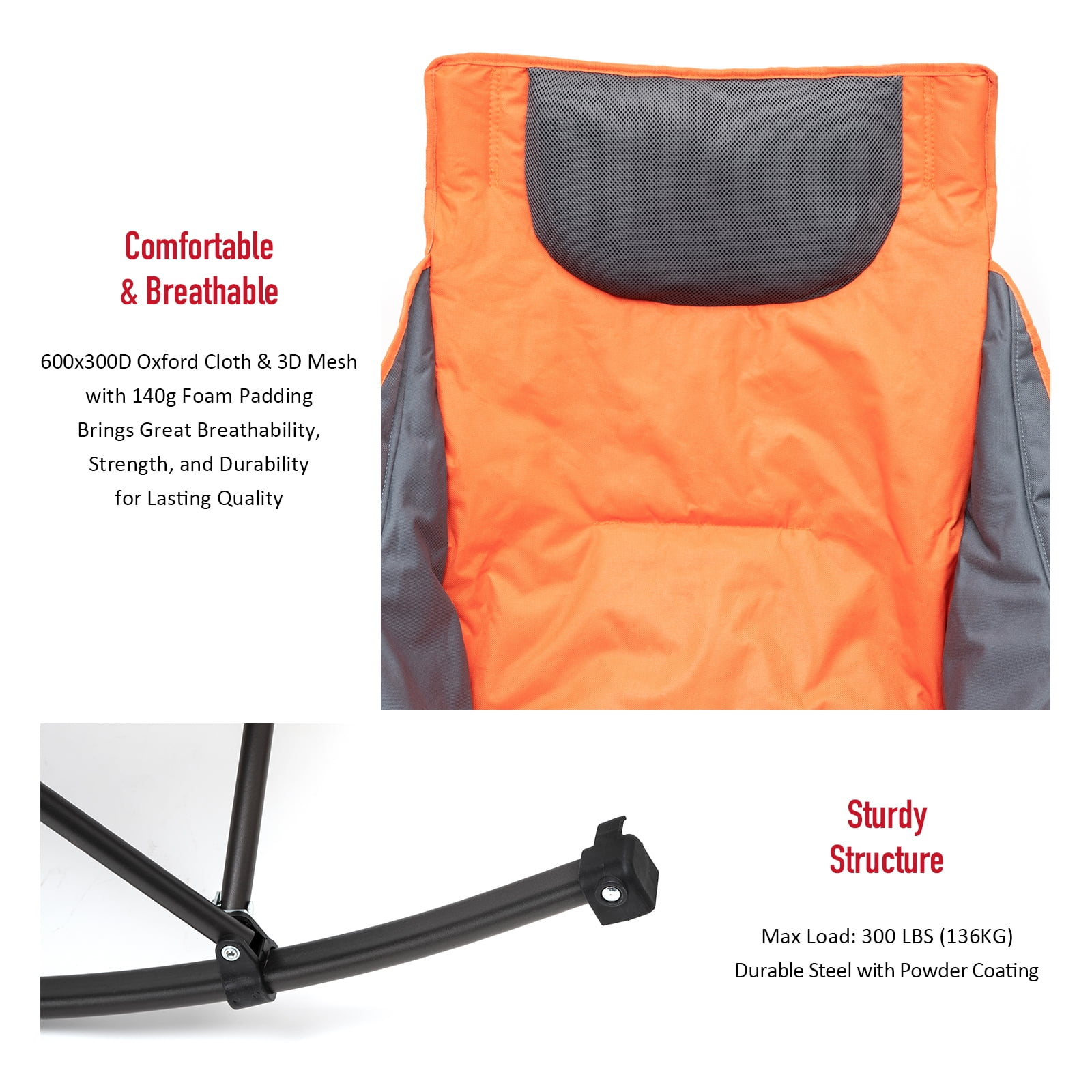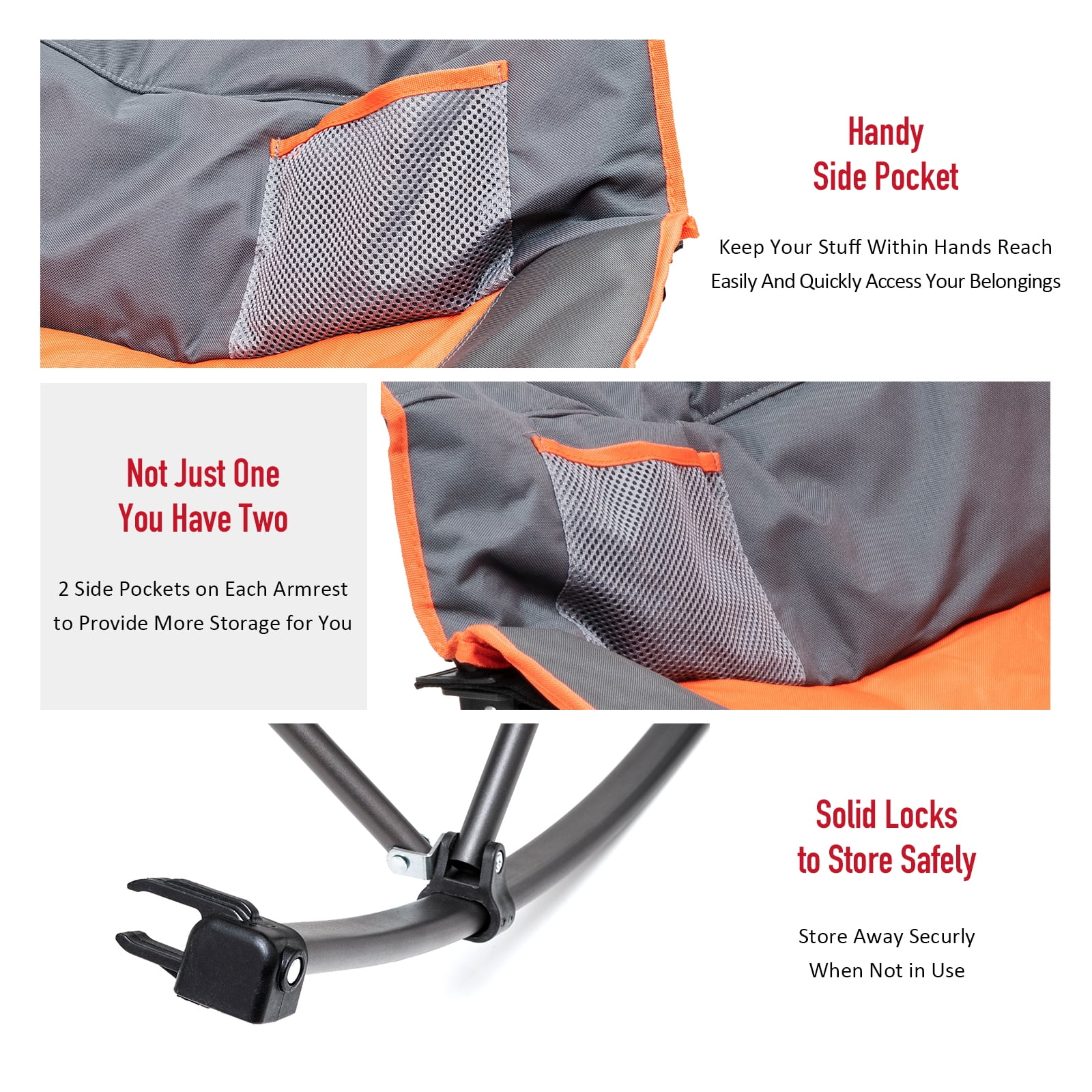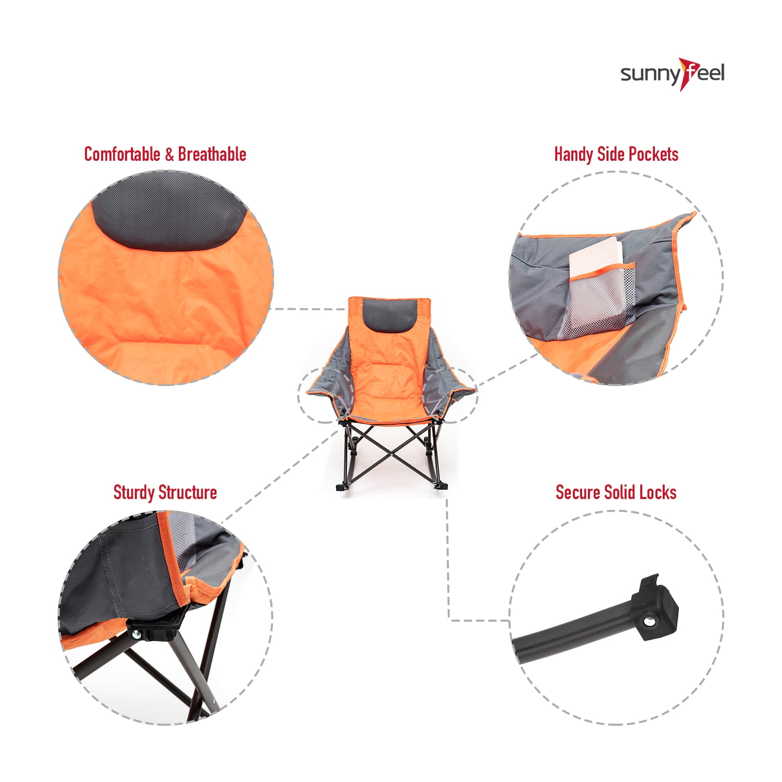 Sunnyfeel Foldable Outdoor Padded Rocker Camping Chair, Luxury Recliner, Oversized Folding Lawn Chair (Orange)