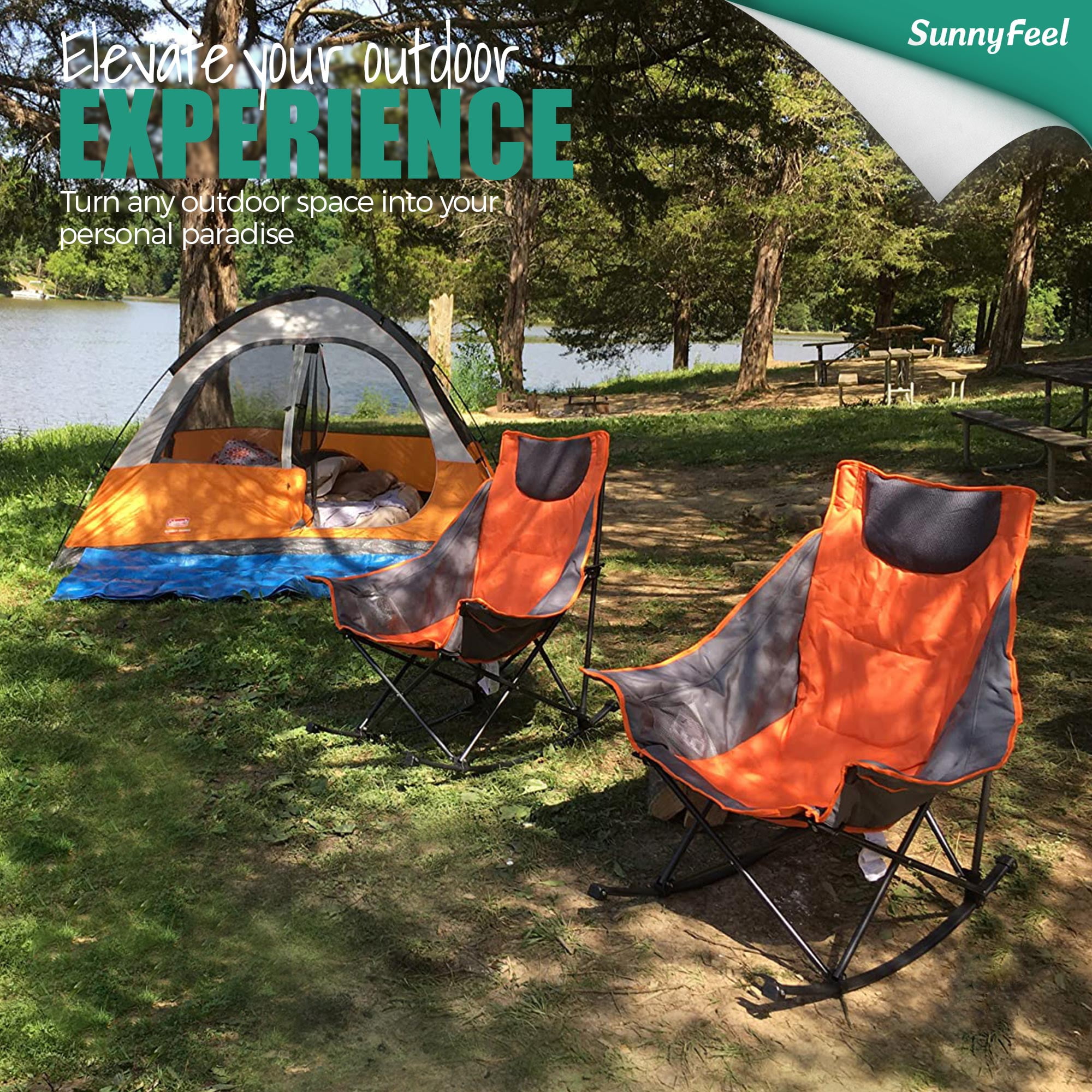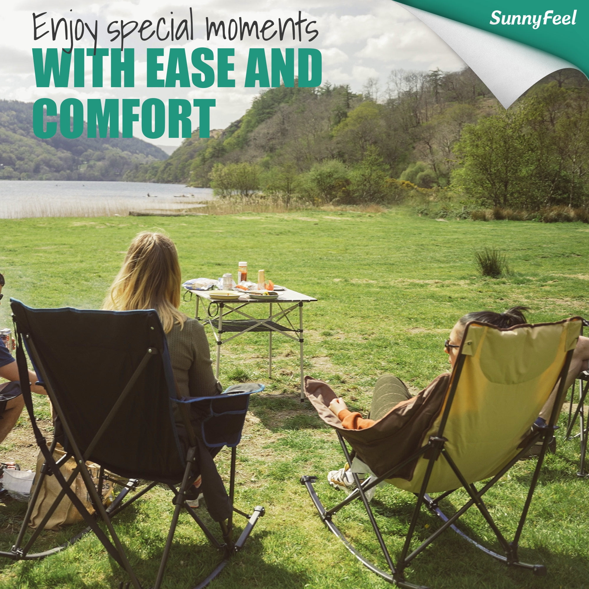 Sunnyfeel Rocking Camping Chair, Luxury Padded Recliner, Oversized Folding Lawn Chair with Pocket, Heavy Duty for Outdoor/Picnic/Lounge/Patio, Portable Camp Rocker Chairs with Carry Bag
