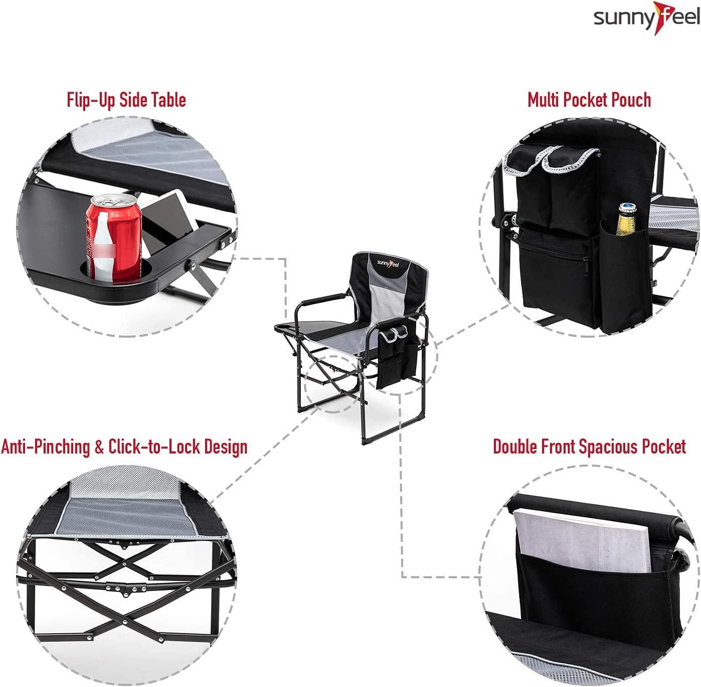 Sunnyfeel Camping Directors Chair, Heavy Duty,Oversized Portable Folding Chair with Side Table, Pocket for Beach, Fishing,Trip,Picnic,Lawn,Concert Outdoor Foldable Camp Chairs