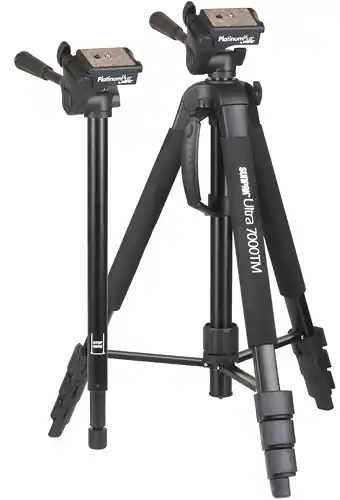 Take shake-free videos and pictures with this Sunpak PlatinumPlus Ultra 7000 2-in-1 70″ tripod and monopod, which features a 3-way, fluid-effect, quick-release pan head with a built-in bubble level to support and stabilize your camera or camcorder.