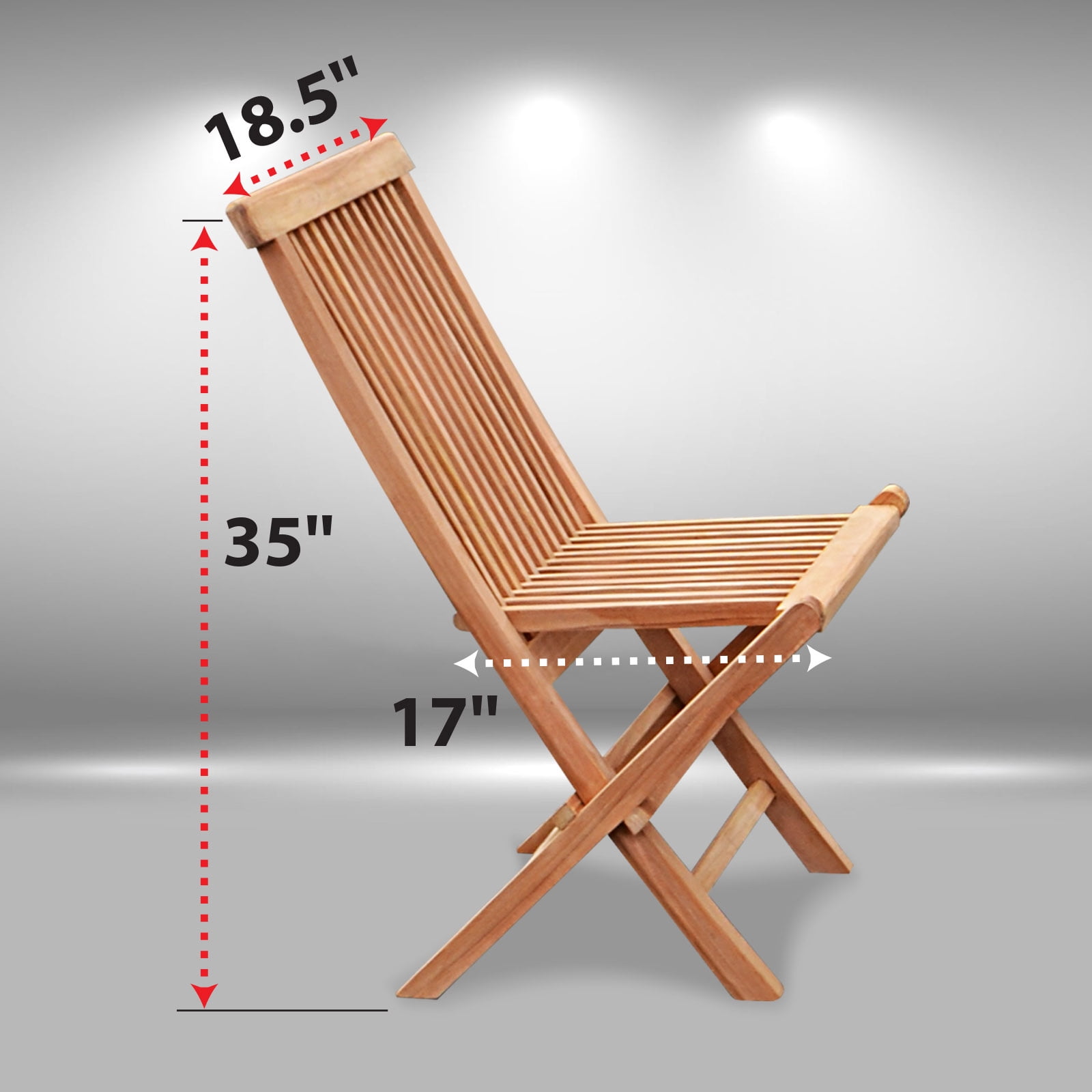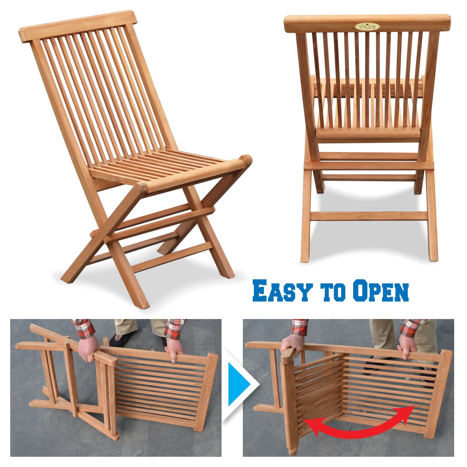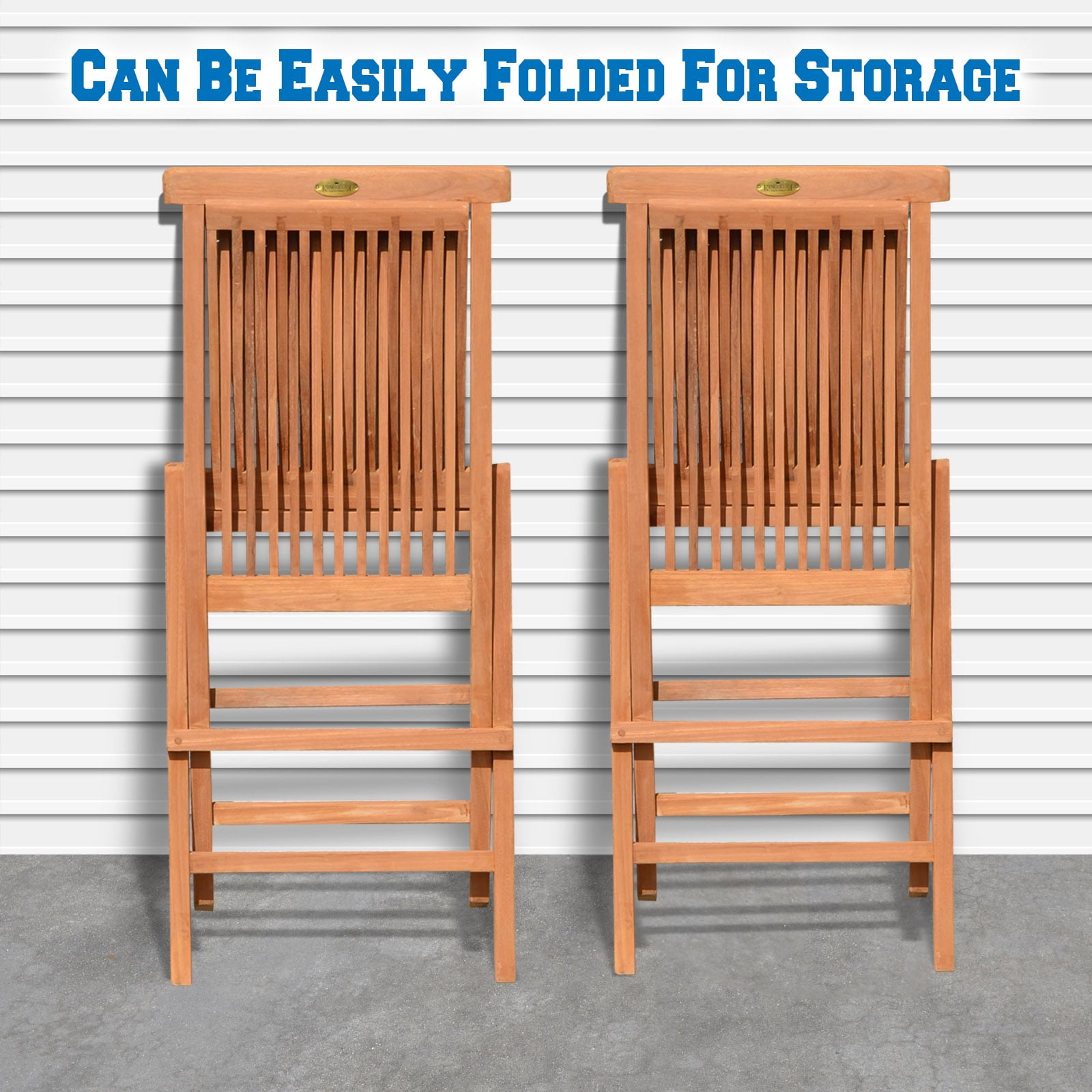 Size: H 35″ x 18.5″ x 17″ (H89 x 47 x 43cm) Set of 2 folding chairs, 100% Solid Teak Wood Outdoor Chair Teak Wood is naturaly mold and mildew resistant Chairs can be easily folded for storage Indoor/Outdoor Use,No Assembly Required The Set of 2 folding Chairs is perfect for your outdoor furnishings; Golden Teak Wood is naturally mold and mildew resistant, Chairs can be easily folded for storage Indoor/Outdoor (Use Colors may vary due to the wood), We use solid Indonesian plantation teak to build our line of teak foldable chairs. These chairs can be easily stored away during off season or when not in use. Finished with polish wax and sealer to enhance its appearance as well as for extra protection. All non-rusting hardware are included, no assembly required. Features: Open Size: H 35″ x 18.5″ x 17″; (H89 x 47 x 43cm) Foldable Size: 43″ x 18.5″ ; Each chair weighs is foldable for off-season storage.