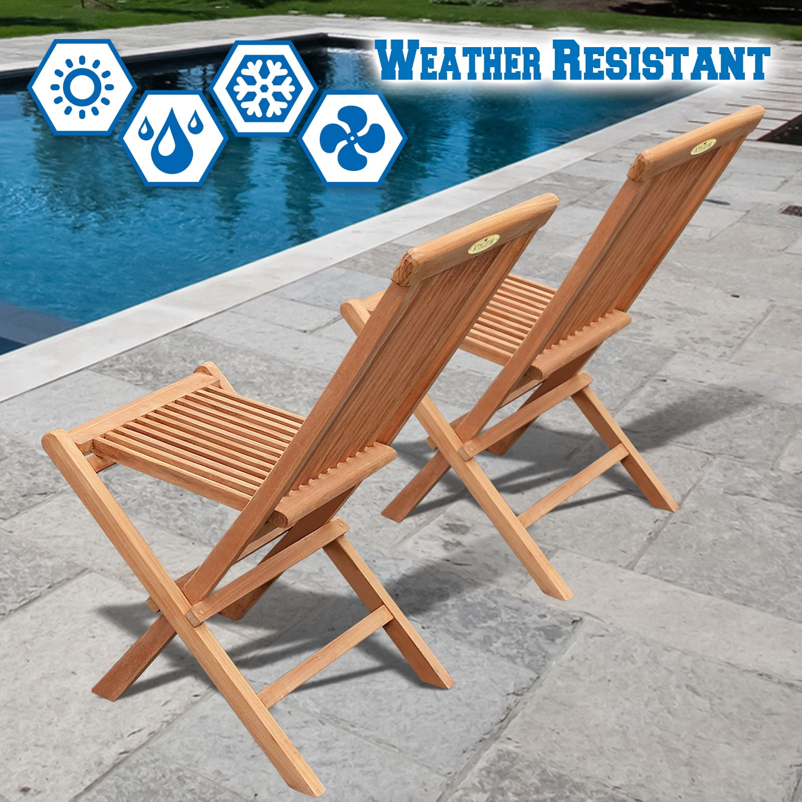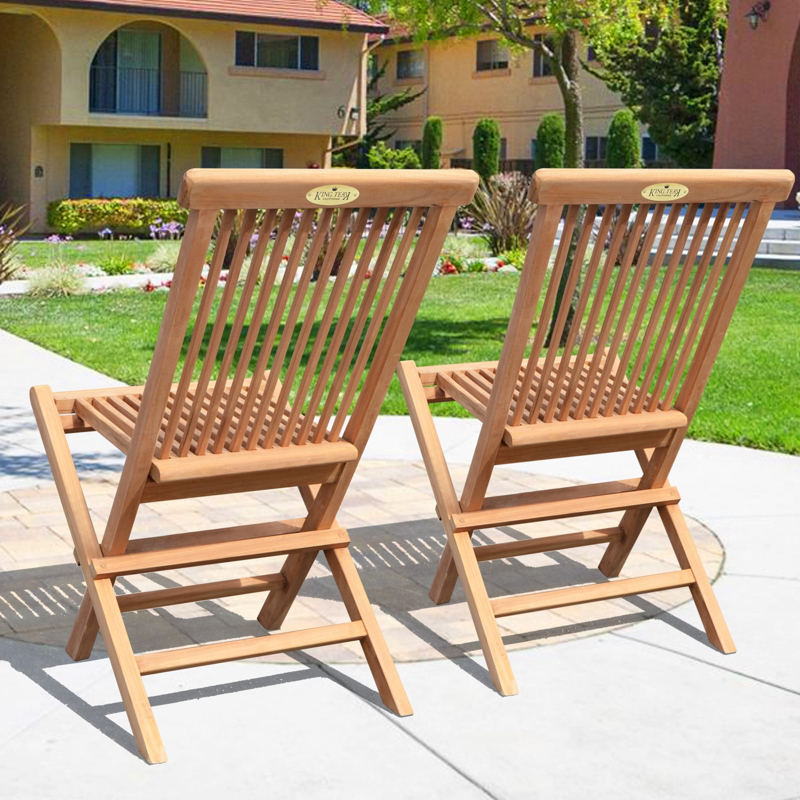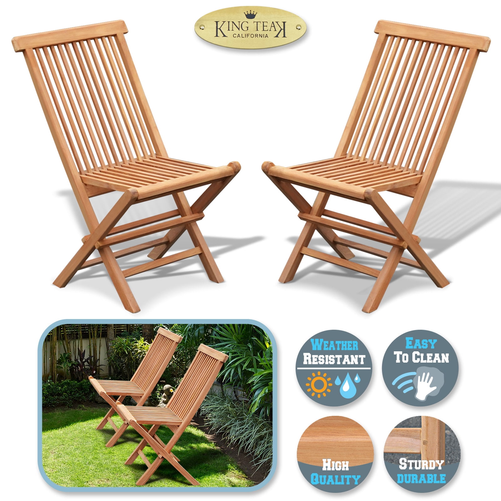 Size: H 35″ x 18.5″ x 17″ (H89 x 47 x 43cm) Set of 2 folding chairs, 100% Solid Teak Wood Outdoor Chair Teak Wood is naturaly mold and mildew resistant Chairs can be easily folded for storage Indoor/Outdoor Use,No Assembly Required The Set of 2 folding Chairs is perfect for your outdoor furnishings; Golden Teak Wood is naturally mold and mildew resistant, Chairs can be easily folded for storage Indoor/Outdoor (Use Colors may vary due to the wood), We use solid Indonesian plantation teak to build our line of teak foldable chairs. These chairs can be easily stored away during off season or when not in use. Finished with polish wax and sealer to enhance its appearance as well as for extra protection. All non-rusting hardware are included, no assembly required. Features: Open Size: H 35″ x 18.5″ x 17″; (H89 x 47 x 43cm) Foldable Size: 43″ x 18.5″ ; Each chair weighs is foldable for off-season storage.