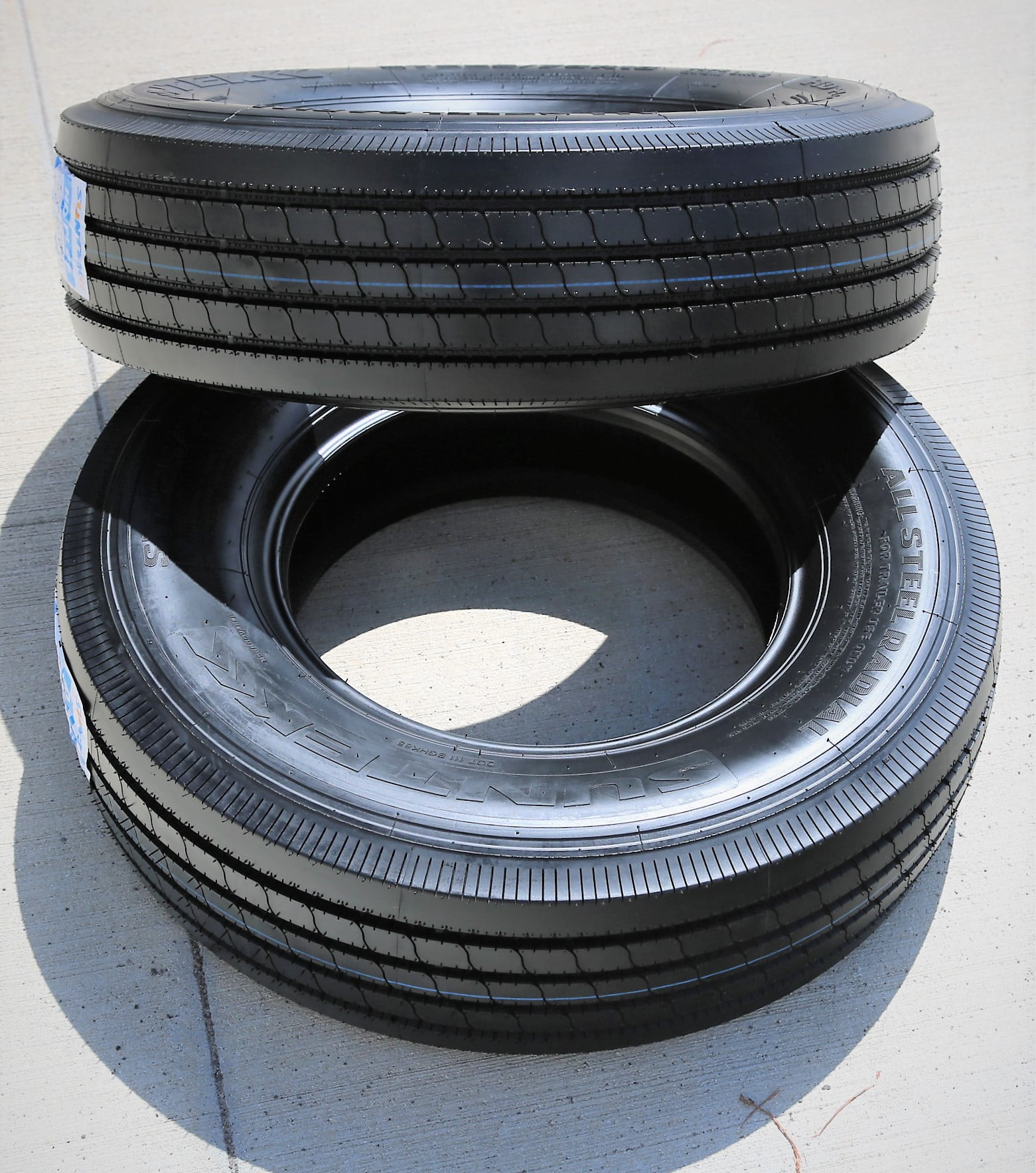 Suntek HD Plus FEATURES AND BENEFITS Trailer tire All weather traction Enhanced controllability Upgraded durability OVERVIEW The Suntek HD Plus is a highway terrain, all season tire manufactured for trailers. This tire is NOT MEANT TO BE MOUNTED ON LIGHT TRUCKS, as its construction will not support the weight and performing style of such vehicles. It can ONLY BE MOUNTED ON TRAILERS. The tire promotes great all weather traction. The all season compound and the optimally ribbed tread design to enhance the dry, wet and winter weather grip on the road surface. The tread design utilizes the siping and rib pattern in order to increase the grip with the use of extra biting edges. The all season compound keeps the rubber flexibility in versatile temperatures, boosting the summer and winter traction. The tread’s ideal groove pattern avoids hydroplaning. They disperse water and slush from the footprint, greatly increasing the wet weather driving safety levels. The ribbed tread design ensures the tire’s surface contact, which improves the controllability. The tread pattern allows the tire to enhance the steering responsiveness and the driving stability. In this manner, the tire is faster and more precise in its response to the driver’s commands, while the structure is secured against the driving pressure. The shoulder block pattern and detailed siping placement firmly grip the road surface with the use of extra biting edges. This greatly improves the cornering and maneuvering ability to increase the performing ability. The HD Plus also increases the load durability. The stronger internal structure keeps the ideal tire shape under the load and driving pressure. As the tire does not deform under the load and driving pressure, enhancing the overall load capacity. Furthermore, the tread design’s knobbed grooves prevent stone retention. They eject rocks stuck between the tread elements, avoiding damage to the casing, offering a safer performing ability at all times. Manufacturers recommend changing tires every 10 years. As long as tires are properly stored before they are sold, the year of their manufacture will not shorten their service life.