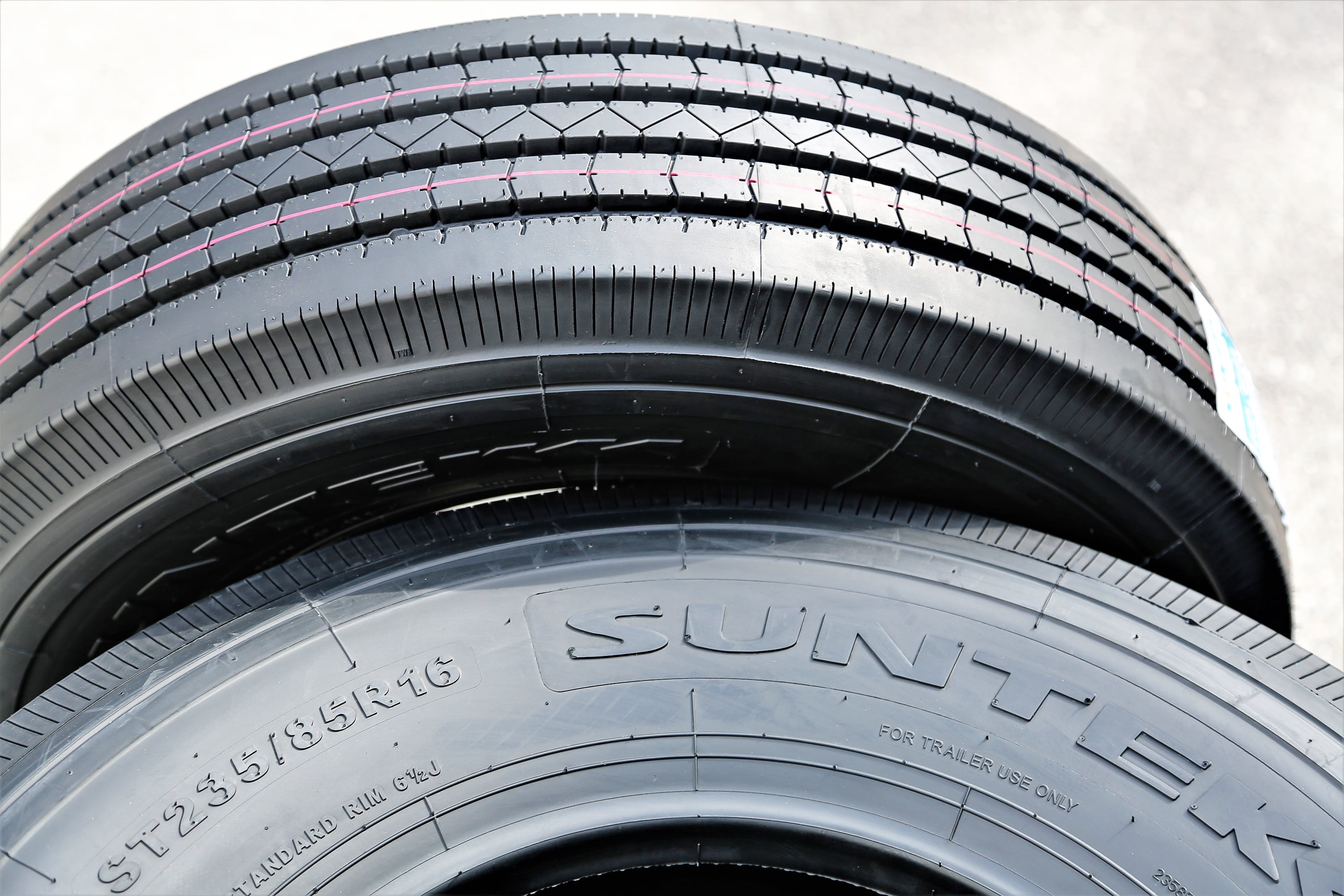 Suntek’s HD Trail is a trailer tire that features four wide grooves for solid traction and performance on wet roads. Closed shoulders reduce uneven wear to promote a longer tread life, and the HD Trail’s notched center rib and angled tread blocks boost traction and handling performance.