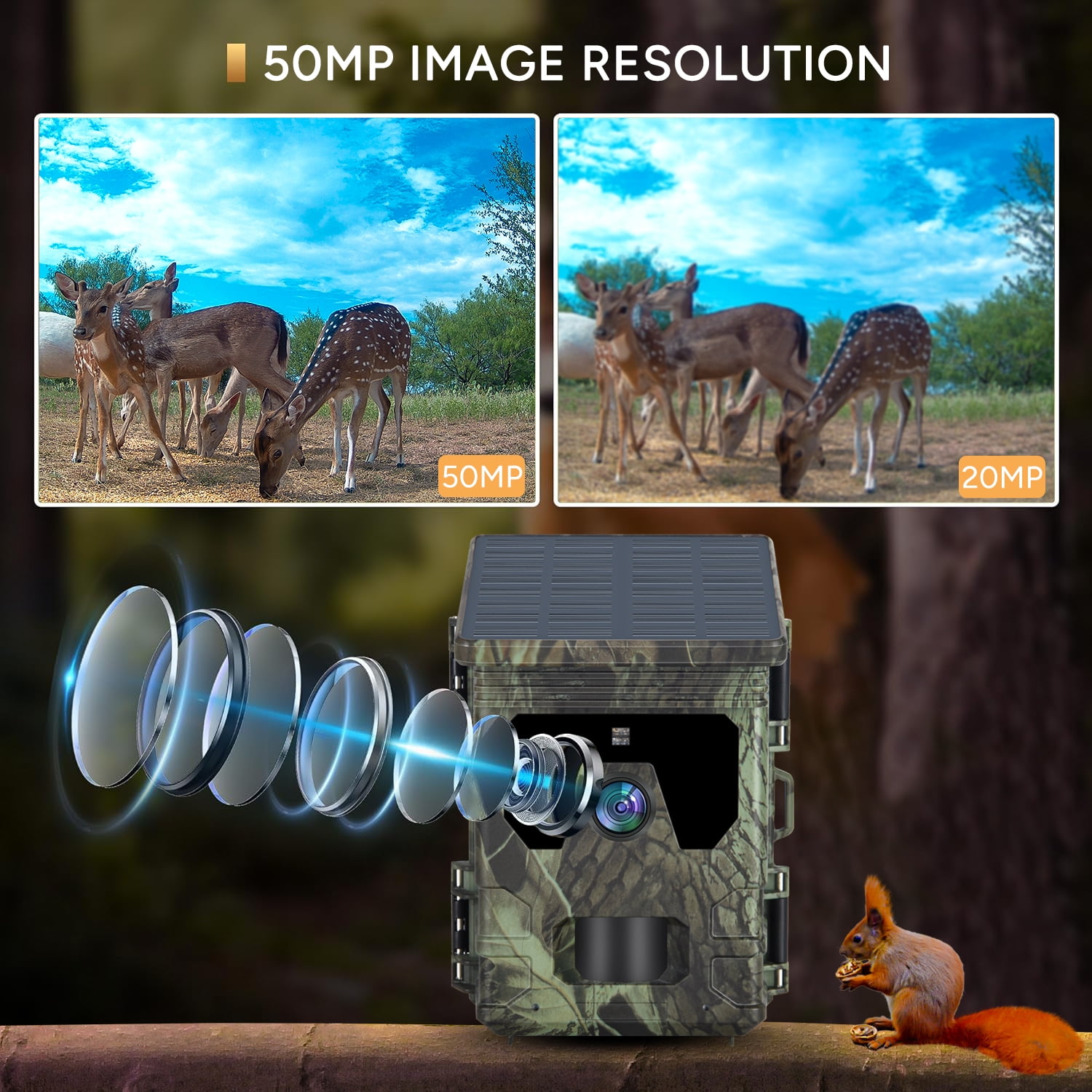 ✅[50MP/4K Full HD Resolution] HD trail cameras with night vision captures 4K videos with clear sound and 50MP clear colorful images by day and black & white images at night(Up to 3 snapshoots per detection). Ideal camera for outdoor wildlife surveillance.