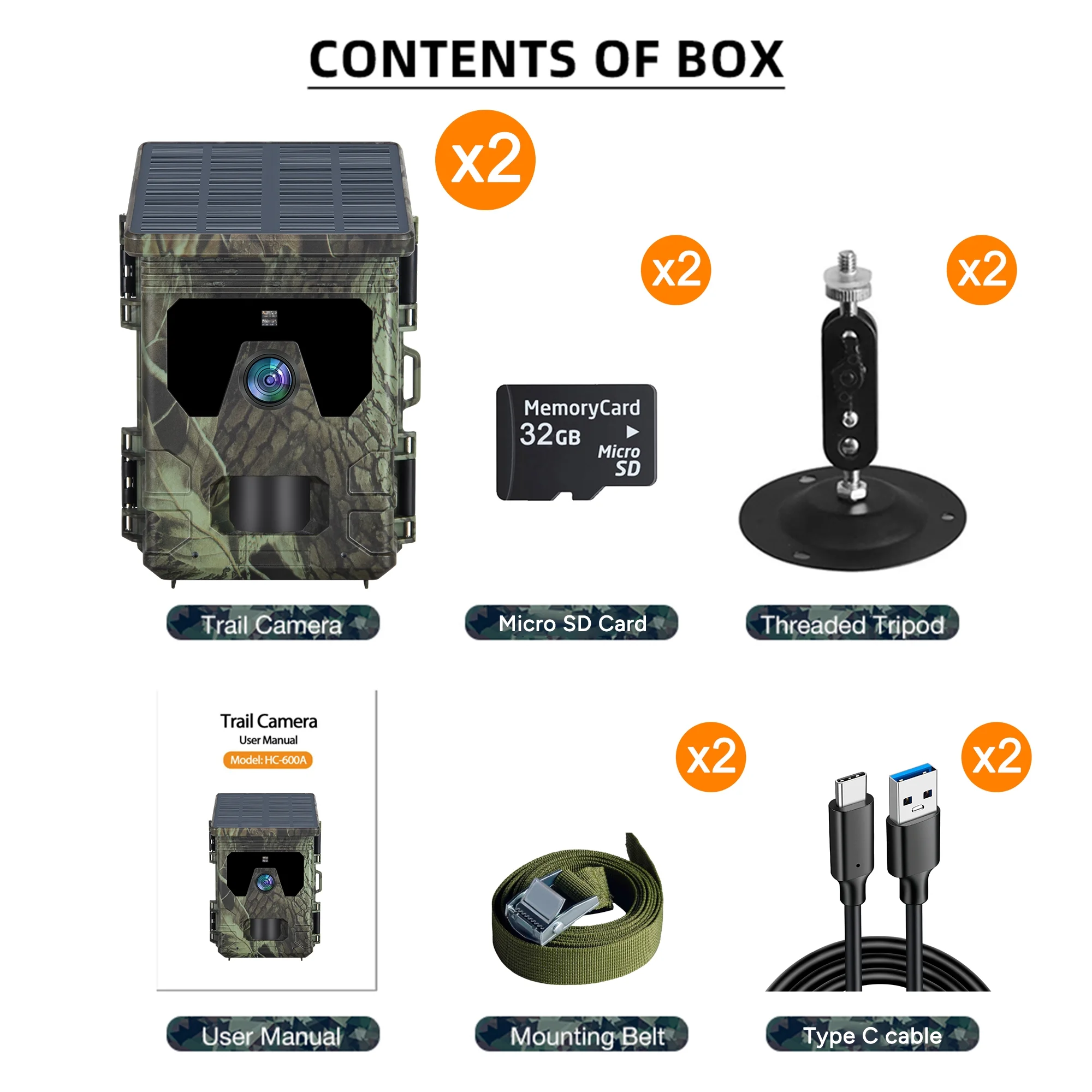 SuntekCam Solar Powered Game Camera【2 Pack】, 50MP 4K Trail Camera with Night Vision LED, Wildlife Waterproof Hunting Camera Wildgame, Hunting Trail Monitors HC-600A