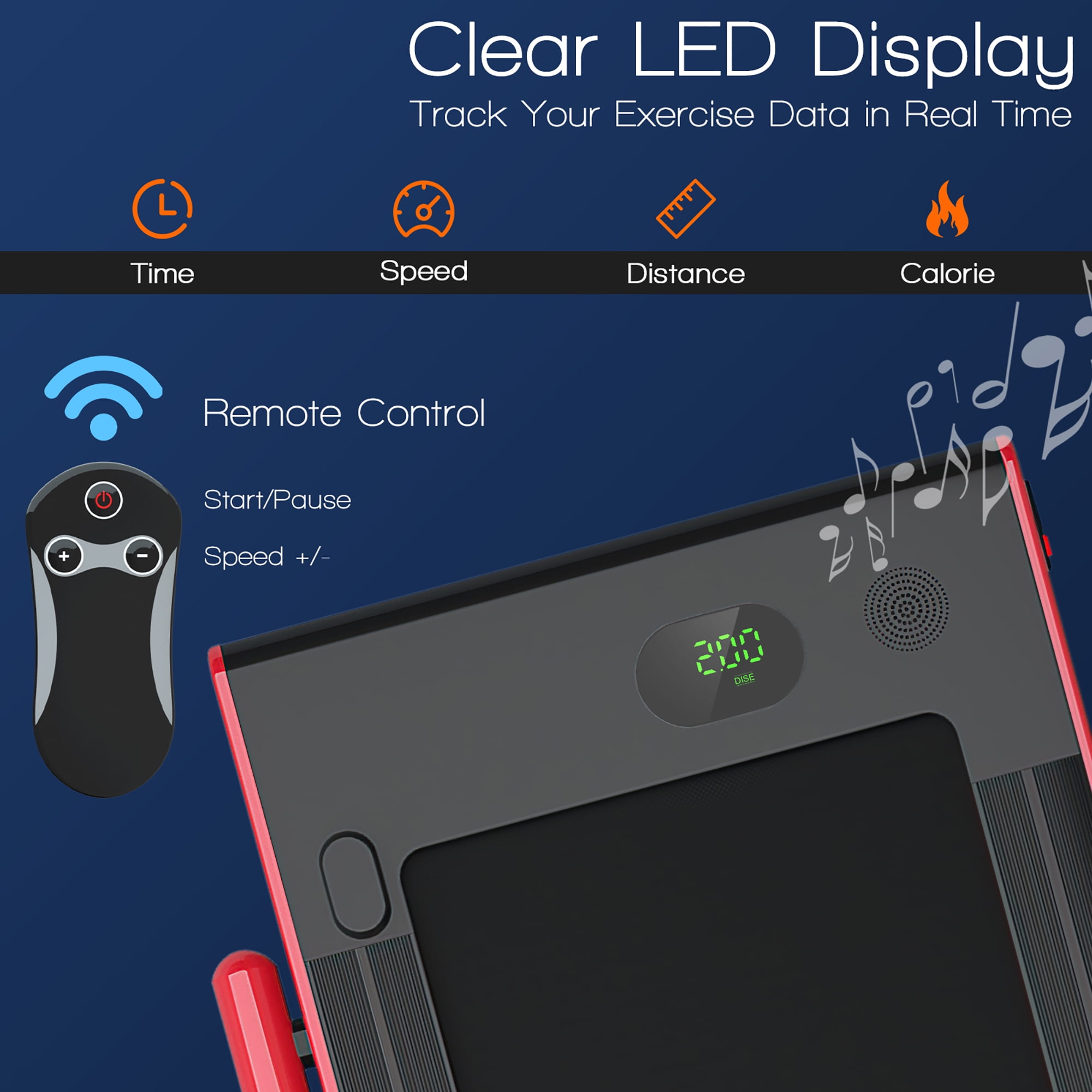 Superfit Up To 7.5MPH 2.25HP 2 in 1 Folding Under Desk Treadmill W/ Speaker Remote Control APP, Single Display Screen Red