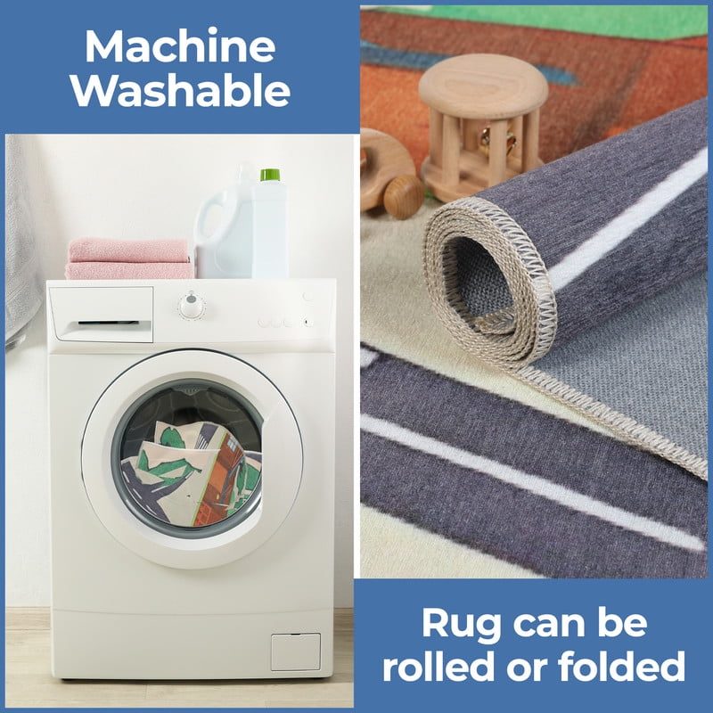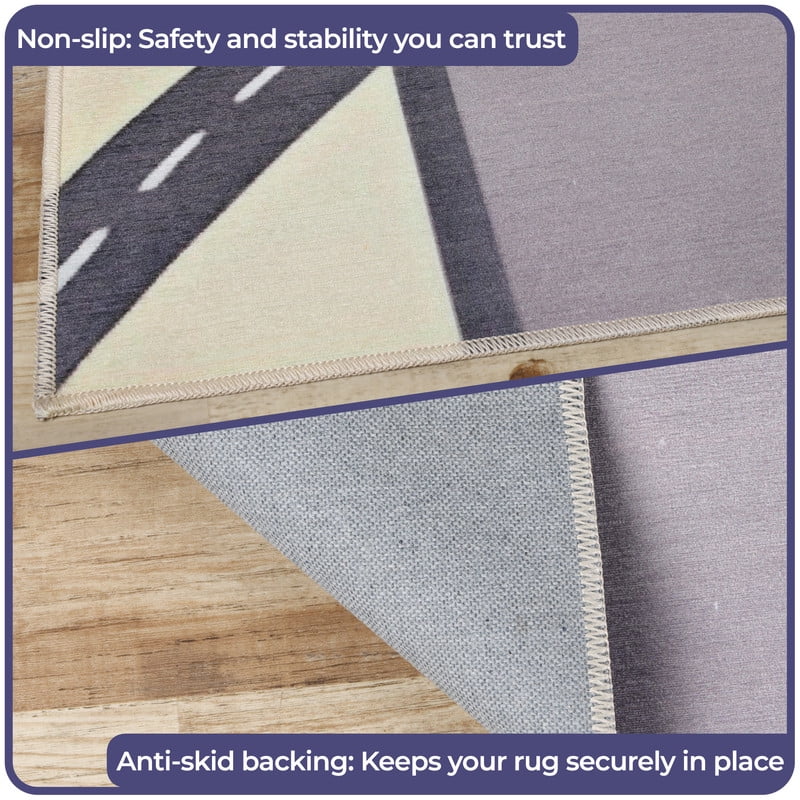 No Crafted from 100% Polyester Features a charming town scene with roads, buildings, and vehicles on a cream background Interactive town map design with roads, buildings, and playful details encourages imaginative play and storytelling No Rug Pad Needed: Features a non-slip backing for enhanced safety and convenience Coordinates with a variety of kids’ room themes while adding a pop of personality and style Easy to Store: Rolls or folds up compactly, perfect for small spaces or seasonal storage Ideal for busy households with kids and pets, perfect for living rooms, kid’s rooms, playrooms, nursery, daycare, schools, family room, hallways, and bedrooms Machine washable for effortless cleaning. For long-lasting results, we recommend to wash separately in cold water. Tumble dry low. Keep in mind creases upon unfolding will naturally flatten out over time. Always follow care label for best results We’re committed to make products safer for you and safer for the world; STANDARD 100 by OEKO-TEX certified; Every component of this product has been tested and verified free of harmful substances and produced sustainably