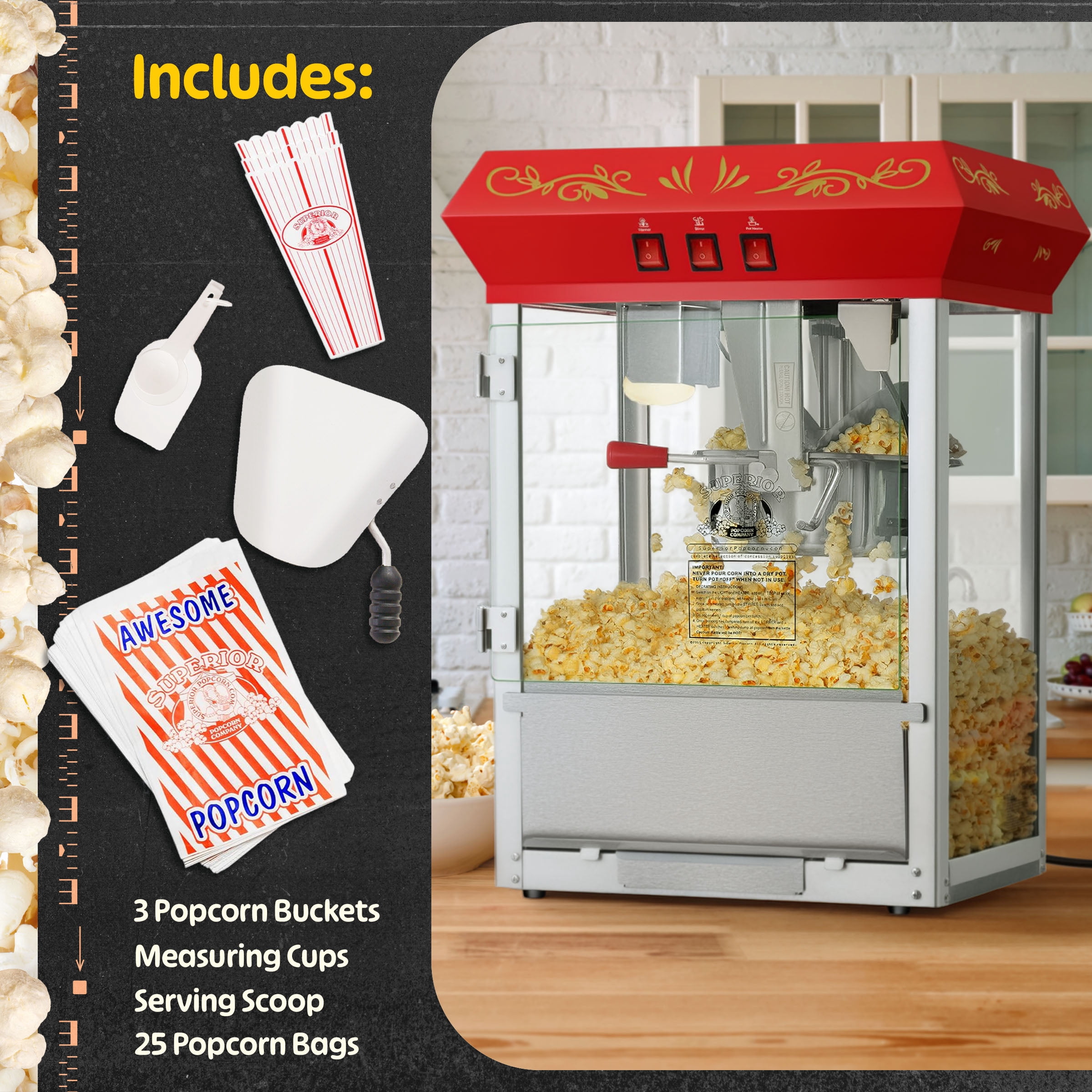 Superior Popcorn Company Movie Night Popcorn Popper Machine with Cart (8 oz, Red)