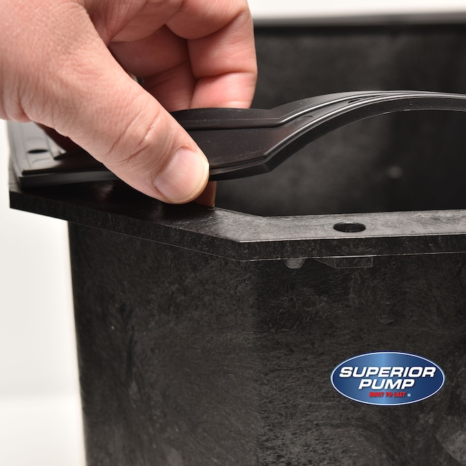 - Kit includes 1/3-hp thermoplastic pump, basin, check valve and installation hardware