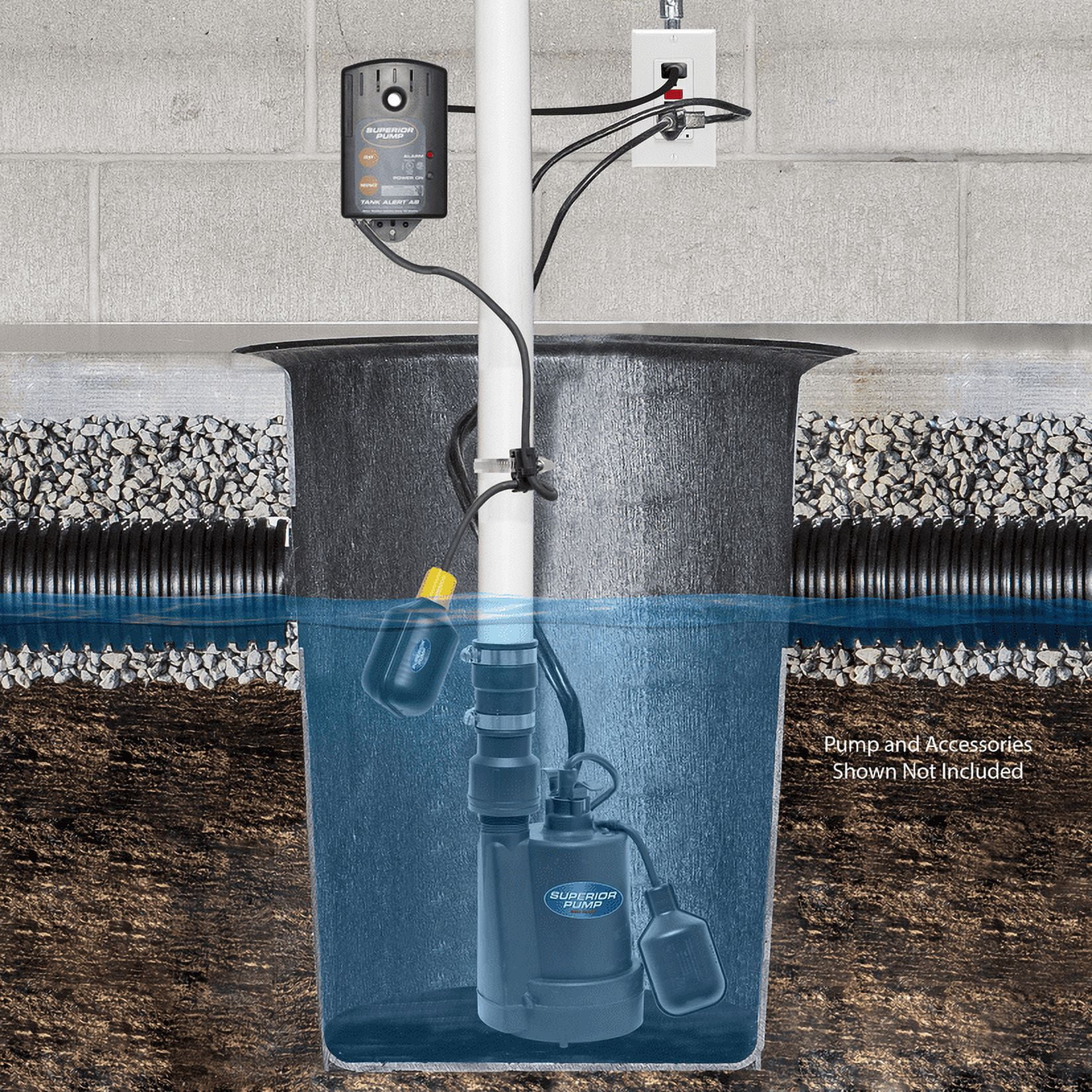 Superior Pump 92060 Tethered Water Alarm System for Utility Water Pump, 87 Decibel, 9 Volt: Superior Pump 92060 Tethered Water Alarm System for Utility Water Pump, 87 Decibel, 9 Volt: Monitors liquid levels in sump & sewage basins, holding tanks and other water applications Monitors liquid levels in sump & sewage basins, holding tanks and other water applications 87 decibel alarm horn with low battery chirp 9 volt battery backup (battery not included) 87 decibel alarm horn with low battery chirp 9 volt battery backup (battery not included) Comes complete with alarm, 15′ tethered float switch and mounting clip Comes complete with alarm, 15′ tethered float switch and mounting clip Non-corrosive NEMA enclosure, rated for indoor use Non-corrosive NEMA enclosure, rated for indoor use 1 Year warranty 1 Year warranty N/A N/A N/A