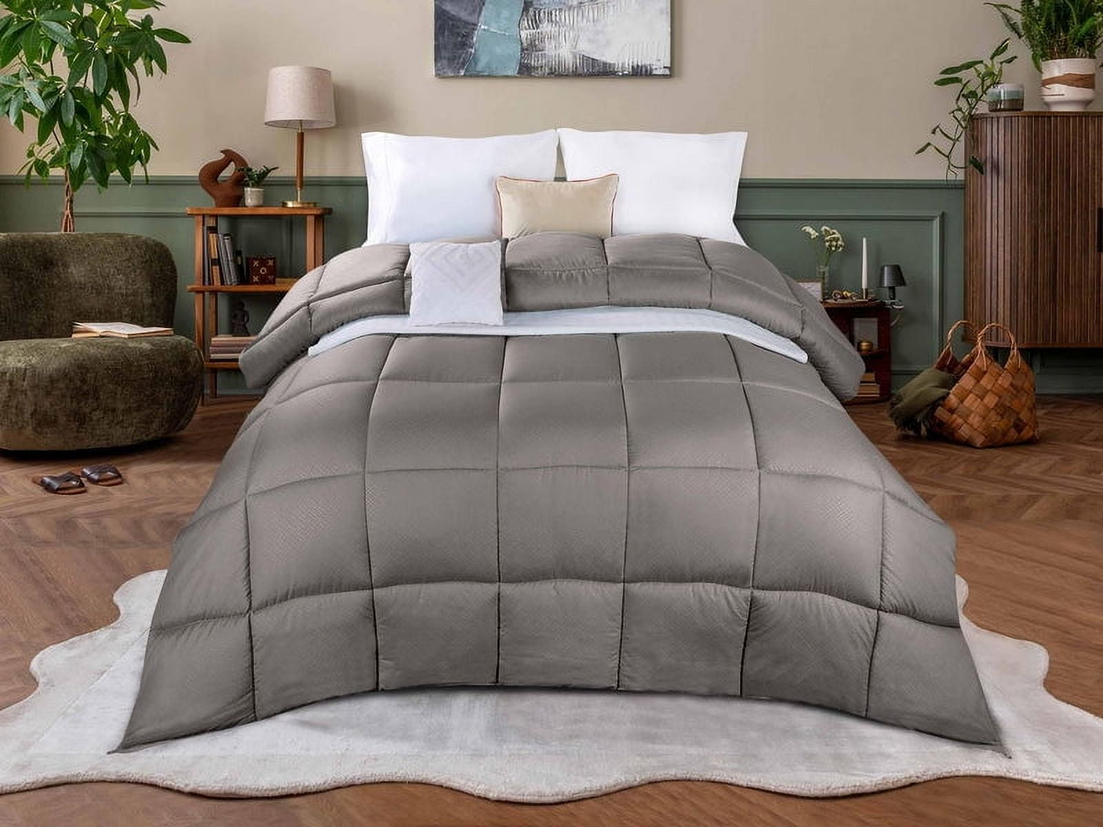 Superior Basketweave Plush Down Alternative Comforter, Full/ Queen, Charcoal