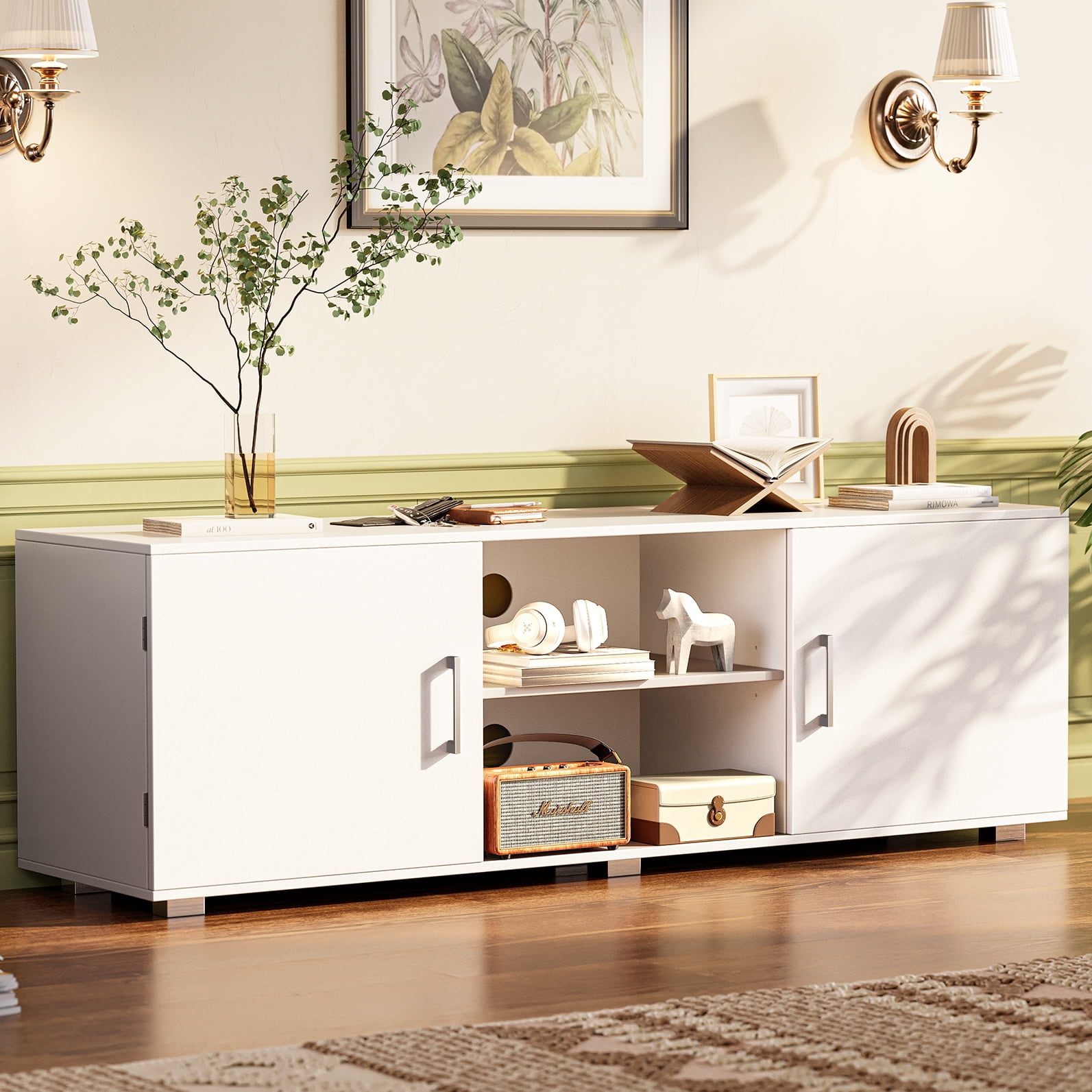 SUPERJARE White TV Stand for 55″ TV, Modern Entertainment Center, TV Console Media Cabinet with Storage and Cable Holes for Living Room Bedroom