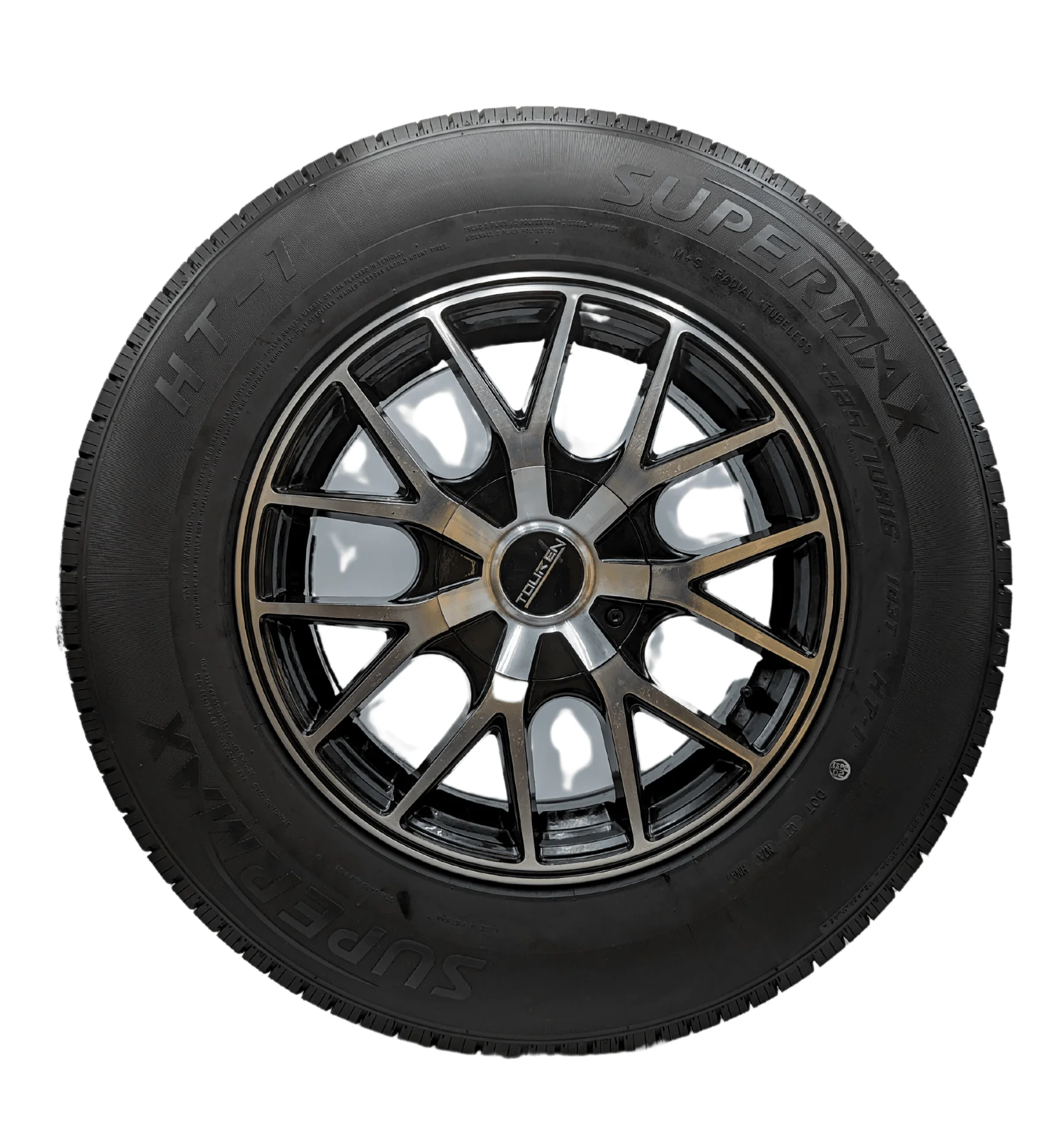 An all season tire, the HT1 from SuperMax is designed for use on CUVs, SUVs, and light trucks. Four wide grooves in the tread force water out of the tire to reduce the risk of hydroplaning in wet weather, and the HT1’s flat footprint and ribbed design puts more rubber on the road to enhance steering response and stability.