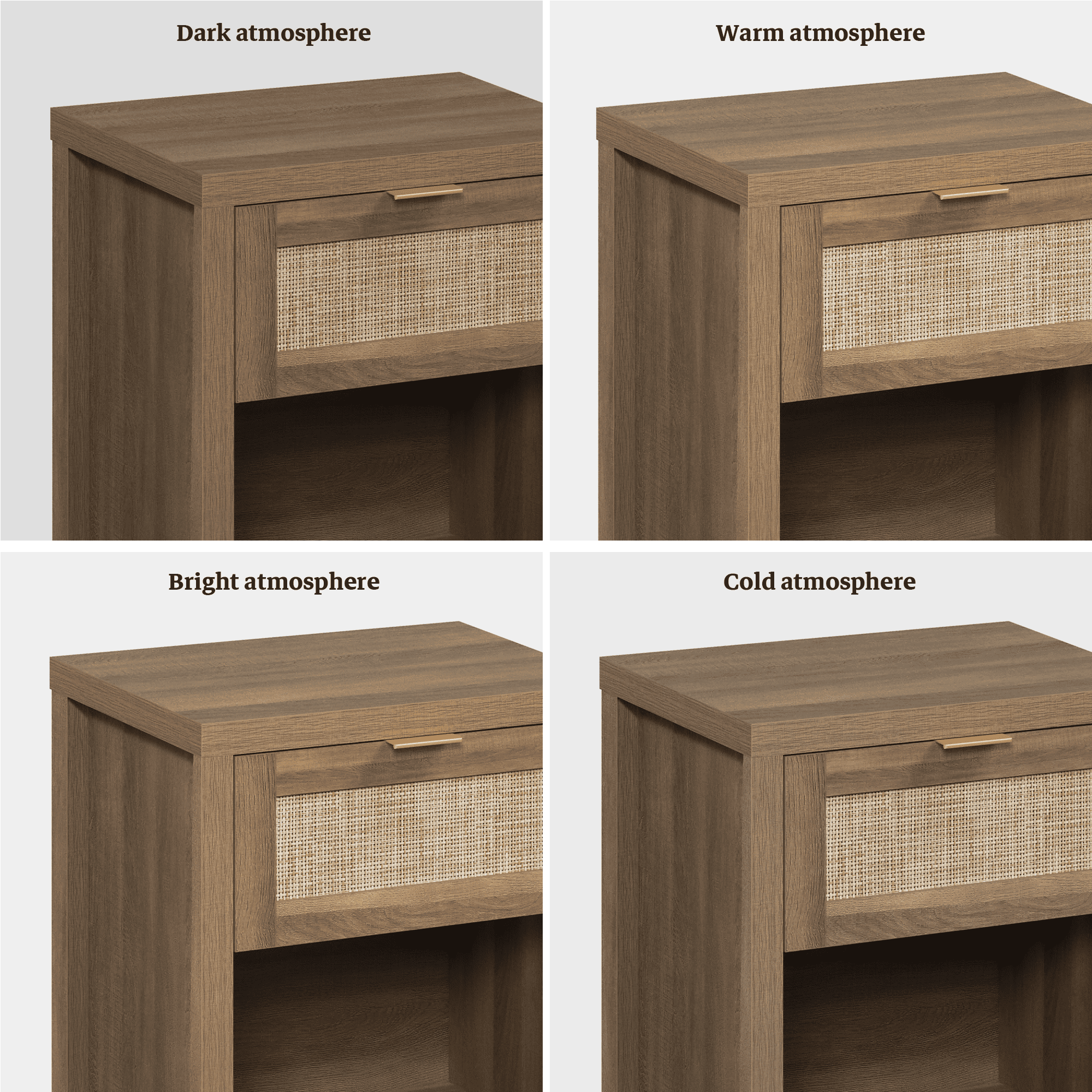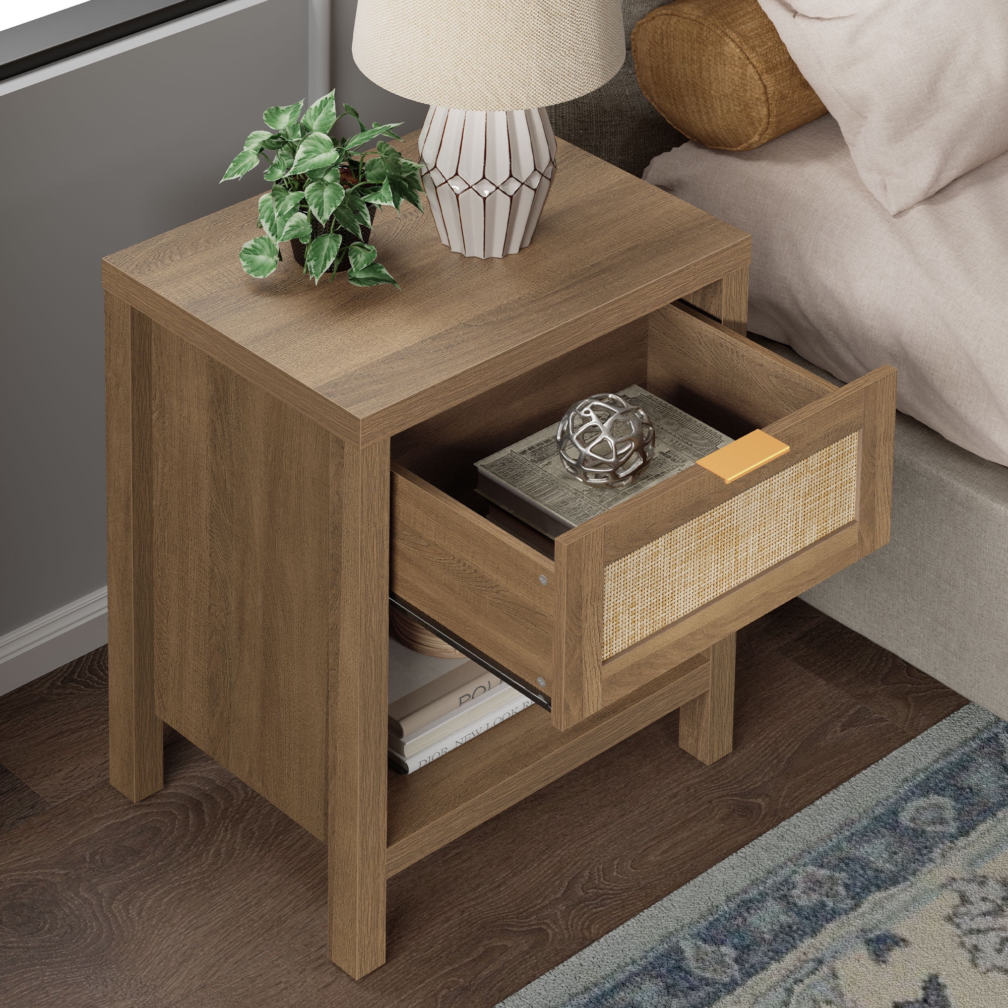 Surmoby Rattan Nightstand Set of 2,Farmhouse Bedside Tables Night Stands with Drawer and Storage Shelf,Boho Side Tables for Living Room,Bedroom,Oak