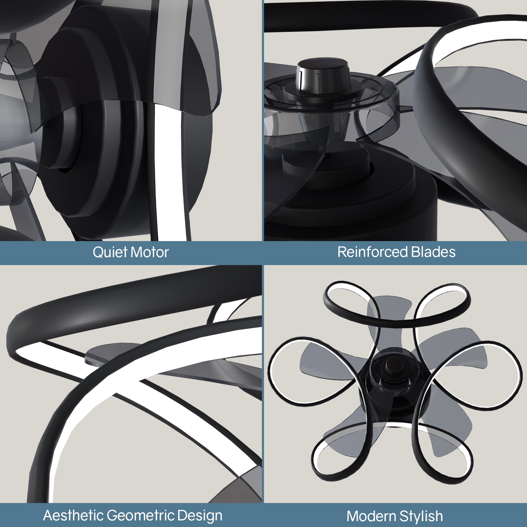 Ultra-quiet powerful motor with reversible function Bladeless design suitable for indoor and outdoor spaces Covers up to 100-170 sq ft with adjustable 1/2/4/8 hour timing and memory function 6 wind speeds and 3 adjustable color temperatures (cool, warm, neutral)
