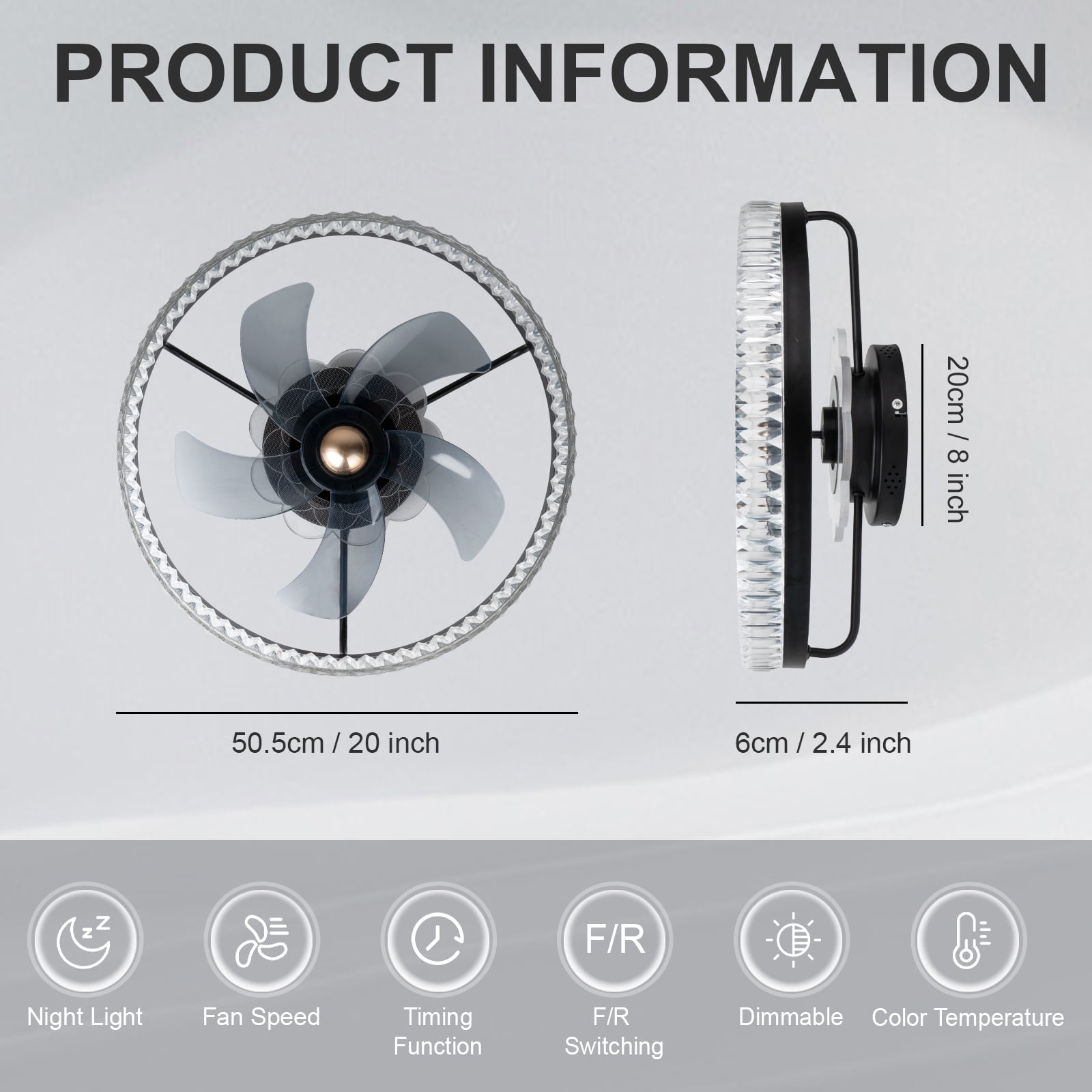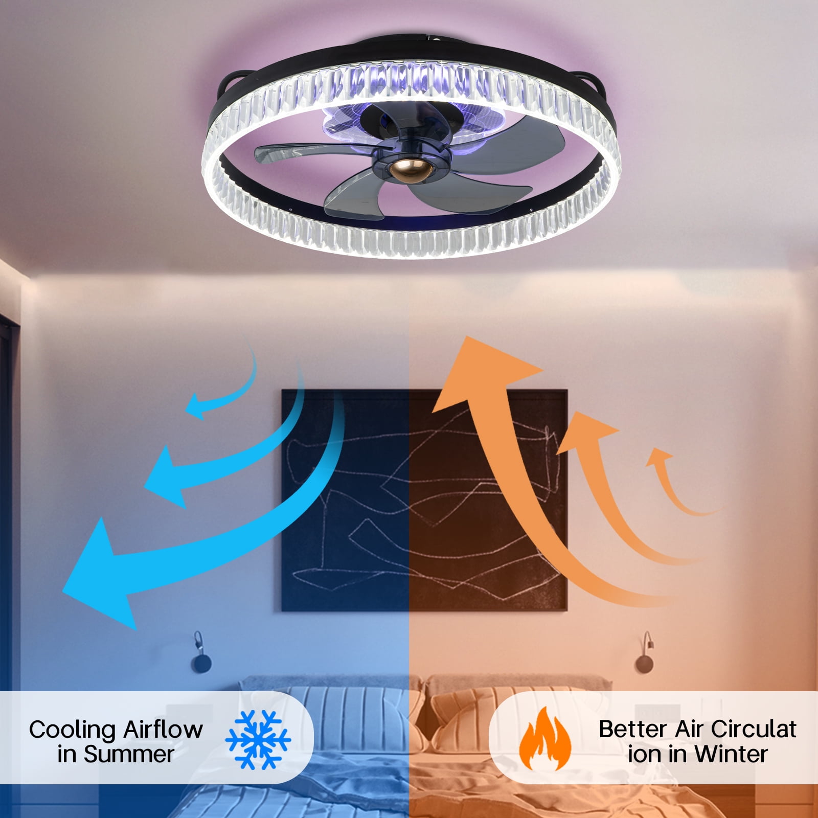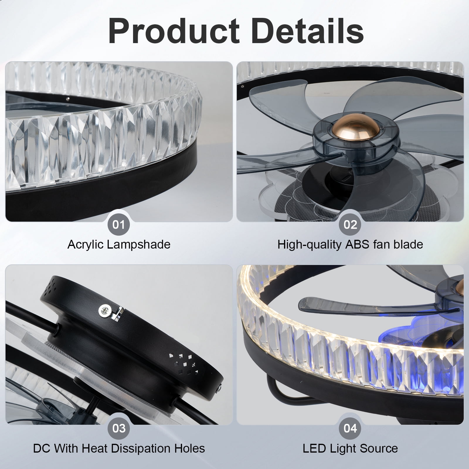 【Modern And Diamond Design】This low profile ceiling fan boasts flush mount and diamond lampshade design, making it suitable for small to medium-sized rooms with low ceilings, while its powerful yet quiet DC motor ensures optimal airflow. Enjoy year-round comfort and energy savings with our modern ceiling fan, the perfect addition to any home decor. 【Smart Ceiling Fan With Lights】Experience the convenience of remote and app control with our smart ceiling fan. You can easily adjust all functions, including 6 fan speeds, 2H timing, 3 light temperature, dimmable LED lights and reverse function. Customize the perfect lighting and breeze for any occasion. 【LED Ceiling Fan With Memory】The Ceiling Fan with an energy-saving LED light source that offers 3 color temperature options and a dimming feature, perfect for setting the right mood. The inclusion of an acrylic lampshade further improves light transmission, illuminating your room with high brightness. 【High Quality Materials】Our Flush Mount ceiling fan features a quality reversible pure copper motor that delivers powerful airflow while operating quietly in both downdraft and updraft modes. With transparent blades giving an elegant look, this fan is easy to install and clean, providing you with a hassle-free experience. 【Wide Application】Upgrade any room with our flush mount ceiling fan. Say goodbye to stuffy rooms and hello to a comfortable environment. Recommended for use in bedroom, living room, restaurant, kitchen, small room and office. 【Surnie Service】Enjoy peace of mind with our ceiling fan’s 2-year warranty and lifetime technical support. Our friendly customer support team is always here to offer the best solution for any issues or defects.