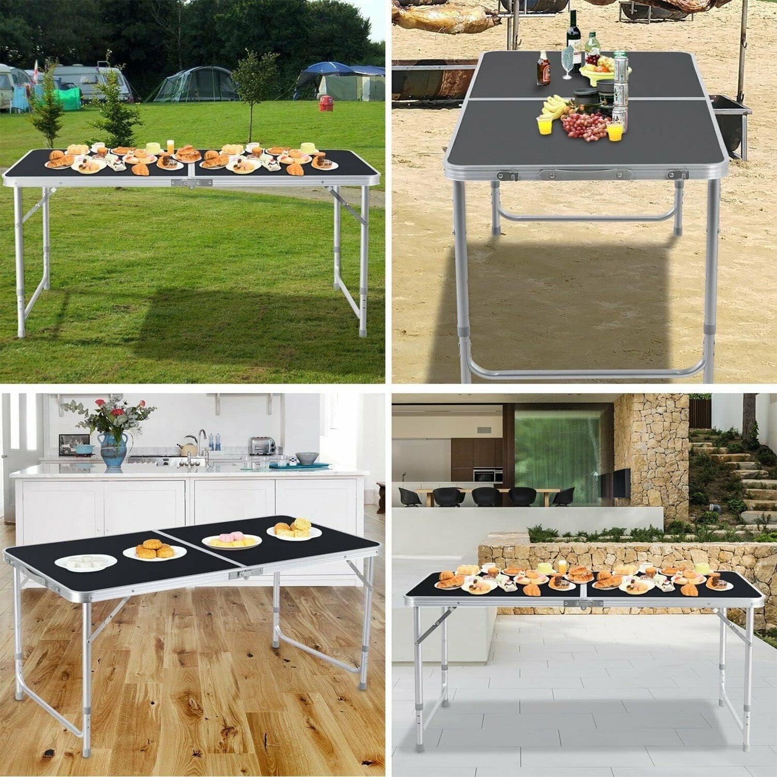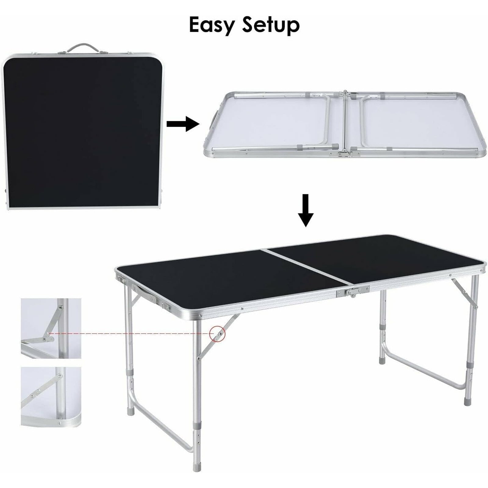 Folding Table 4 Foot Portable Heavy Duty Fold-in-Half Utility Table Small Indoor Outdoor Adjustable Height Folding with Carrying Handle, Camping and Party