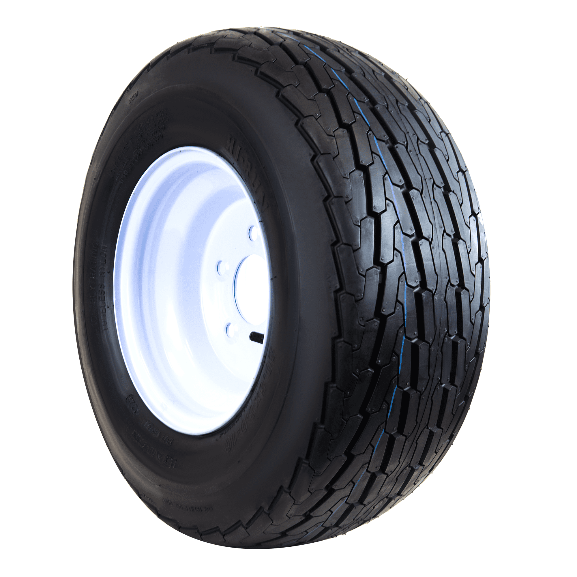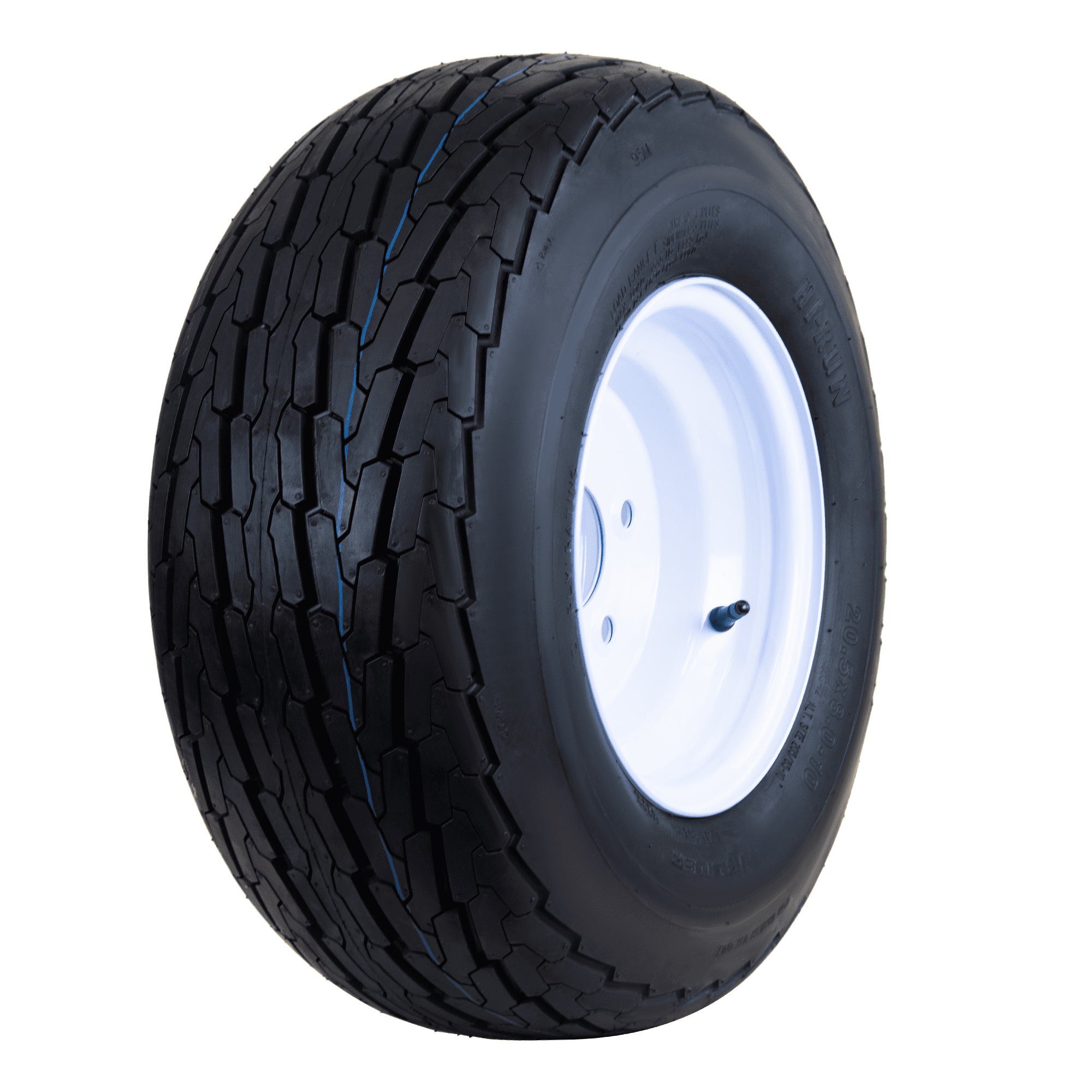 The Hi Run ST Bias Boat Trailer Tire is specifically engineered to deliver excellent performance while transporting your boat or other watercraft. It features strengthened sidewalls to handle the weight of your boat and offers greater load capacities compared to conventional tires. This Hi Run trailer tire meets all OEM specifications where bias tires are required. The tough and durable construction ensures that it will not wear down as quickly and will be able to keep its traction for longer. This 6-ply, trailer wheel tire provides strength, durability and safety for trailer tire needs. The Hi Run ST bias boat trailer tire and Wheel Assembly is a great replacement for your trailer when wear makes it necessary or for any trailer not equipped with a spare. Hi Run ST Bias Boat Trailer Tire with Wheel Assembly 20.5X8.00-10/L : Tire and Wheel assembly only, no additional parts included$The Hi Run ST Bias Boat Trailer Tire and Wheel Assembly is a great replacement for your trailer when wear makes it necessary or for any trailer not equipped with a spare$This durable, long-life tire is made to OE specifications$Run your trailer with Hi Run for strength, durability and safety Number of lug holes: 5 This durable, long-life tire is made to OE specifications Run your trailer with Hi Run for strength, durability and safety Number of lug holes: 5