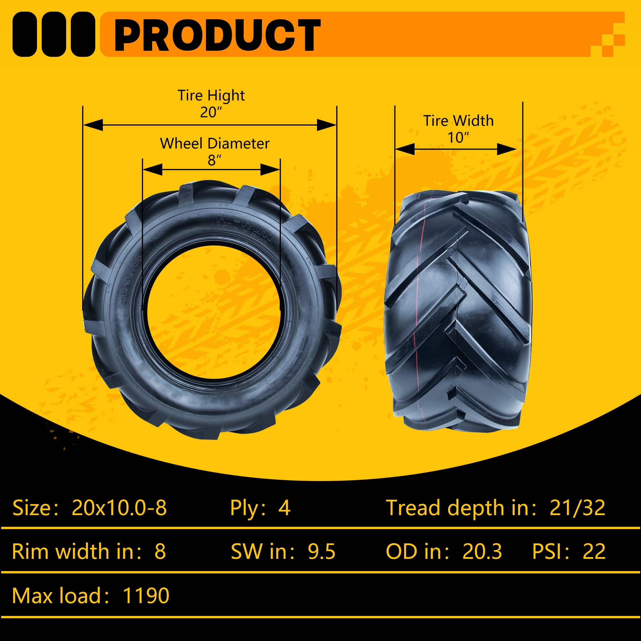 Hi-Run SU18 20X10.00-8 4PR Lawn and Garden Tire