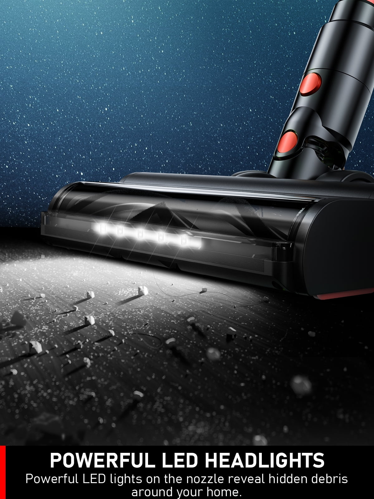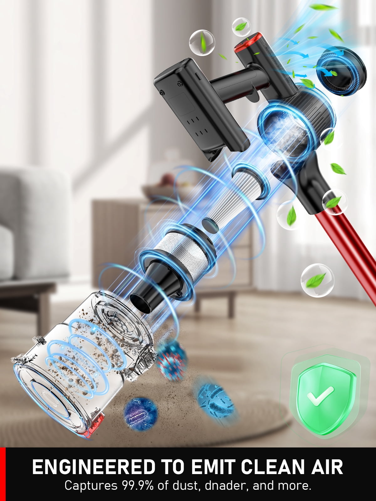 [30Kpa/350W Super Suction Power]: The upgraded 350W high-speed motor cordless stick vacuum provides powerful 30Kpa suction power in max mode. The 3-level suction power is adjustable to 30Kpa/20Kpa/10Kpa, which can easily and effectively remove dirt, debris, and pet hair. [Smart LED Display]: The LED display shows the remaining power, suction mode and blockage reminder of the cordless vacuums in real time. In order to prevent accidental touches, we have designed user-friendly physical button switches and suction power adjustments, making your cleaning work easier and more convenient! [Multiple High-efficiency Filtration]: This stick vacuum has a six-layer filter with new cyclone technology and a high-density mesh design, which can remove up to 99.99% of tiny dust particles as small as 0.1 microns. The 6-layer filtration system filters layer by layer, which not only prevents dust from entering the engine and extends the service life of the vacuum cleaner, but more importantly, keeps the indoor air clean. [Anti-Winding Floor Brush]: The cordless vacuum with a V-shaped anti-tangle floor brush can lift all the embedded dirt and pet hair from carpets or hard floors, effectively reducing hair tangles and spending less time cleaning the drum! The brush head of this highly maneuverable vacuum cleaner can support 270° rotation. LED lights provide no place to hide garbage, making cleaning more thorough. [Versatile, Lightweight]: With a lightweight design and a wide range of accessories, this cordless vacuum can be assembled into 8 different combinations to meet your cleaning needs in any situation. The vacuum cleaner weighs only 2.93 pounds (main body), making it perfect for one-handed cleaning. [Worry-Free After Sales]: Each SuXiangVac cordless vacuum cleaner comes with 24-month protection plan and 24/7 customer service. If you encounter any problems, please contact us via message or email.