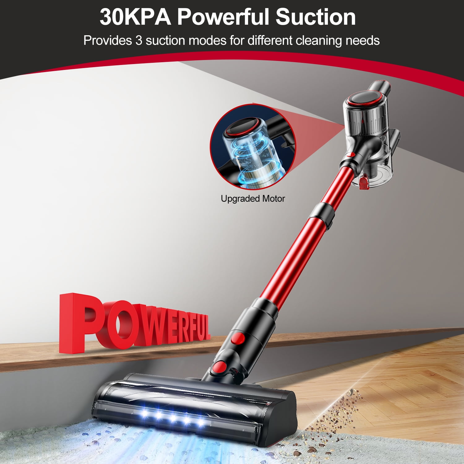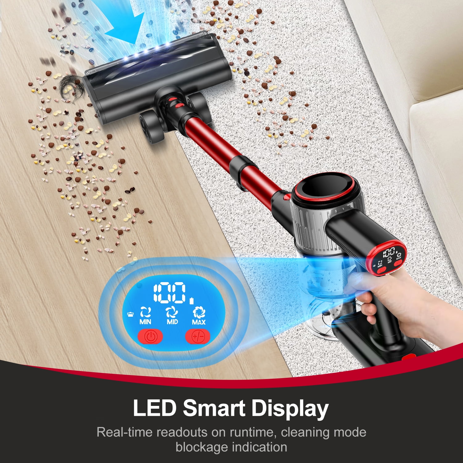 SUXIANGVAC Cordless Vacuum Cleaner, 30Kpa Powerful Suction 8-in-1 Stick Vacuum with LED Display, 3 Modes Suction, Lightweight Vacuum for Hardwood Floor/Carpet/Pet Hair, Red