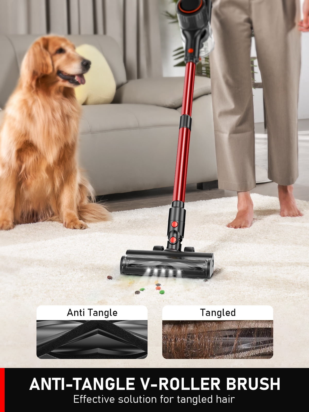 SUXIANGVAC Cordless Vacuum Cleaner, 30Kpa 8 in 1 Lightweight Stick Vacuum with Sofa Brush, 350W Motor, Anti-Tangle Vacuum, 40mins Runtime Rechargeable Vacuums for Home, Hardwood Floor, Carpet, Pet Hair, Red