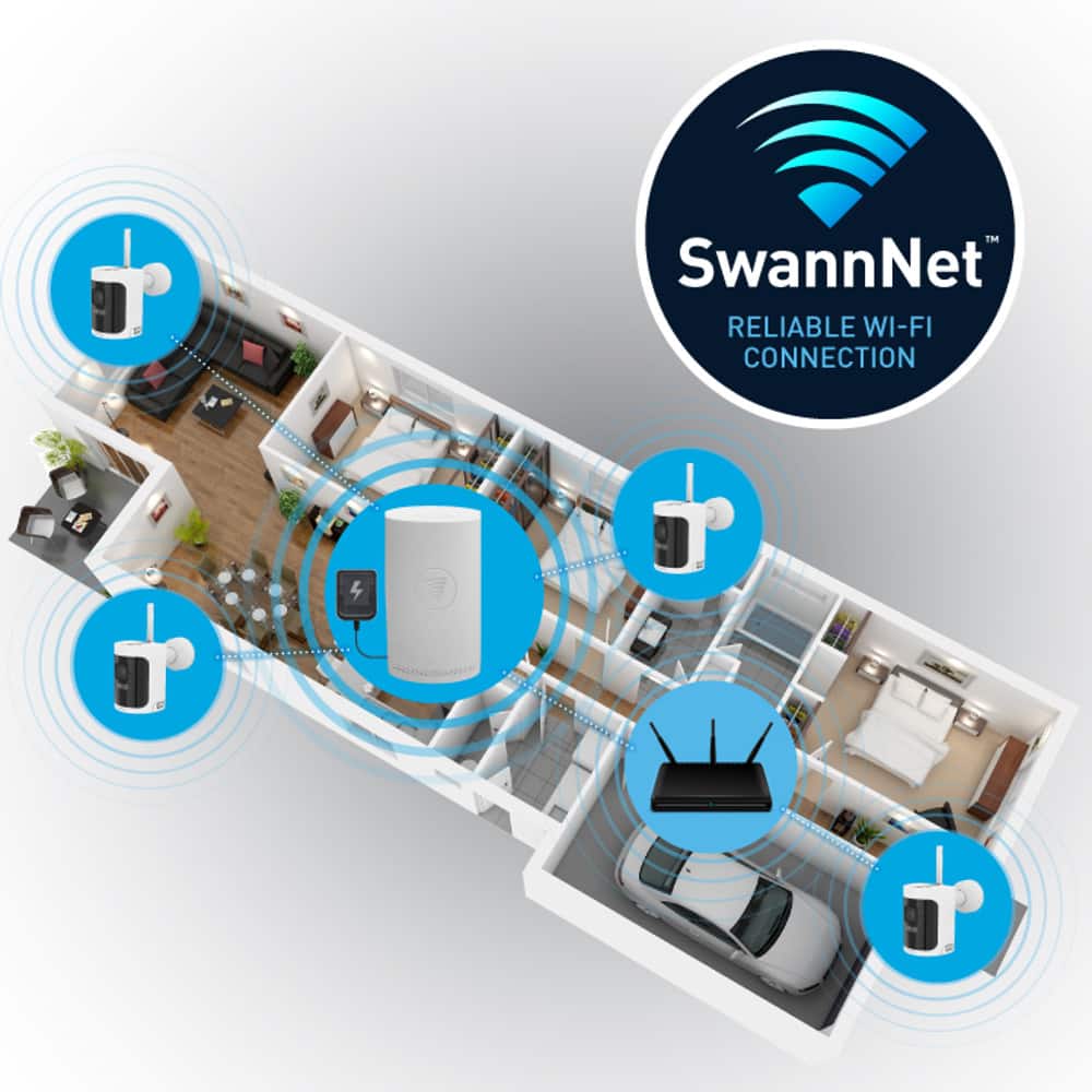 Swann’s AllSecure4K+ Wireless Security System is always charged and always secure. The 100% wireless cameras setup in minutes using rechargeable battery power and offering crystal clear 4K color video day and night. Actively prevent unwanted activity with True Detect heat and motion-sensing to trigger recording, spotlights, sirens and mobile alerts. Engage in two-way talk, see what’s happening, arm and disarm the system using the Swann Security app. The 4K+ Power Hub has a charging bay, and a spare battery ensuring there is never any ‘downtime’ – just hot swap the batteries to and from the cameras as needed. The spare battery also provides back-up power to the Hub for up to 5 hours in the event of an onsite power outage. Retain up to 2 years of clips at any time on the Hub’s large 1TB local hard drive plus cloud backup. Recording is always free and there are no monthly fees. The system is also expandable as you can connect up to 8 cameras to the 4K+ Power Hub if needed. There’s also offline mode, with the option to view on a TV or monitor and record without internet.
