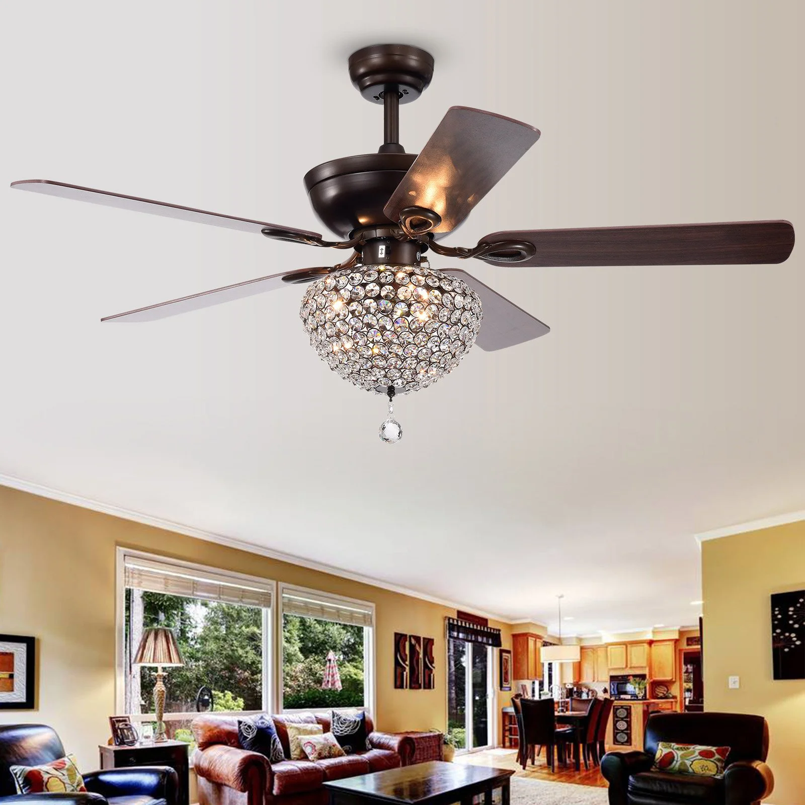 Swarna Antique Bronze 3-light Metal/ Crystal 5-blade 52-inch Ceiling Fan with Remote