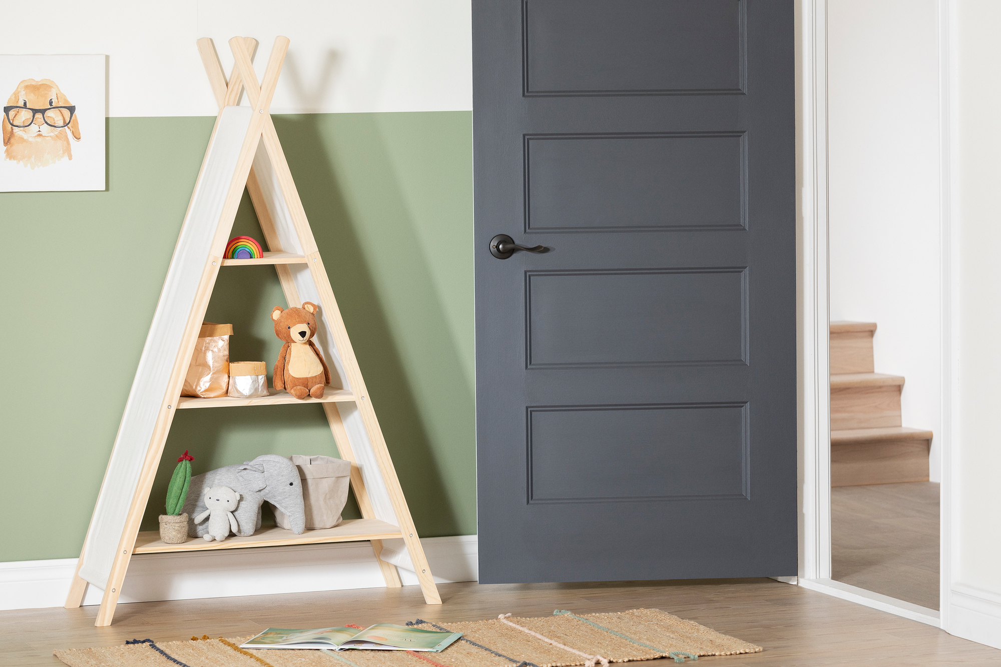 Sweedi Teepee Shelving Unit-Natural Cotton and Pine-South Shore