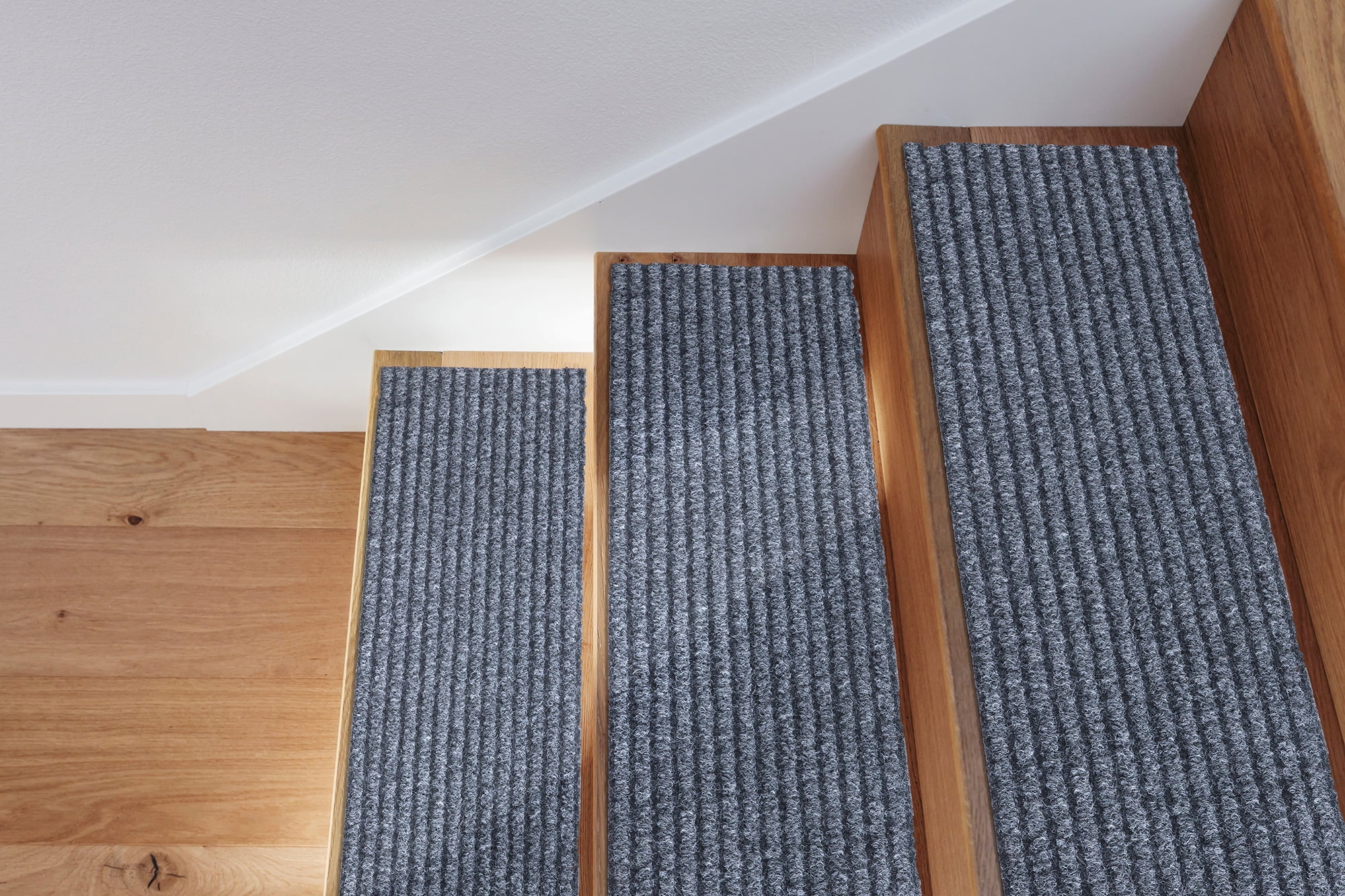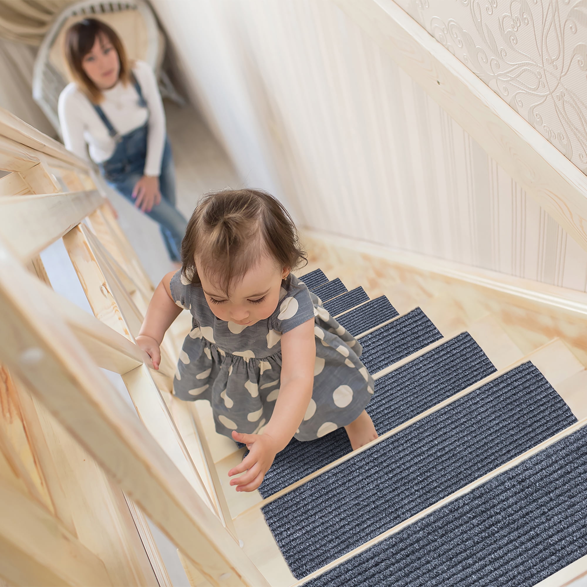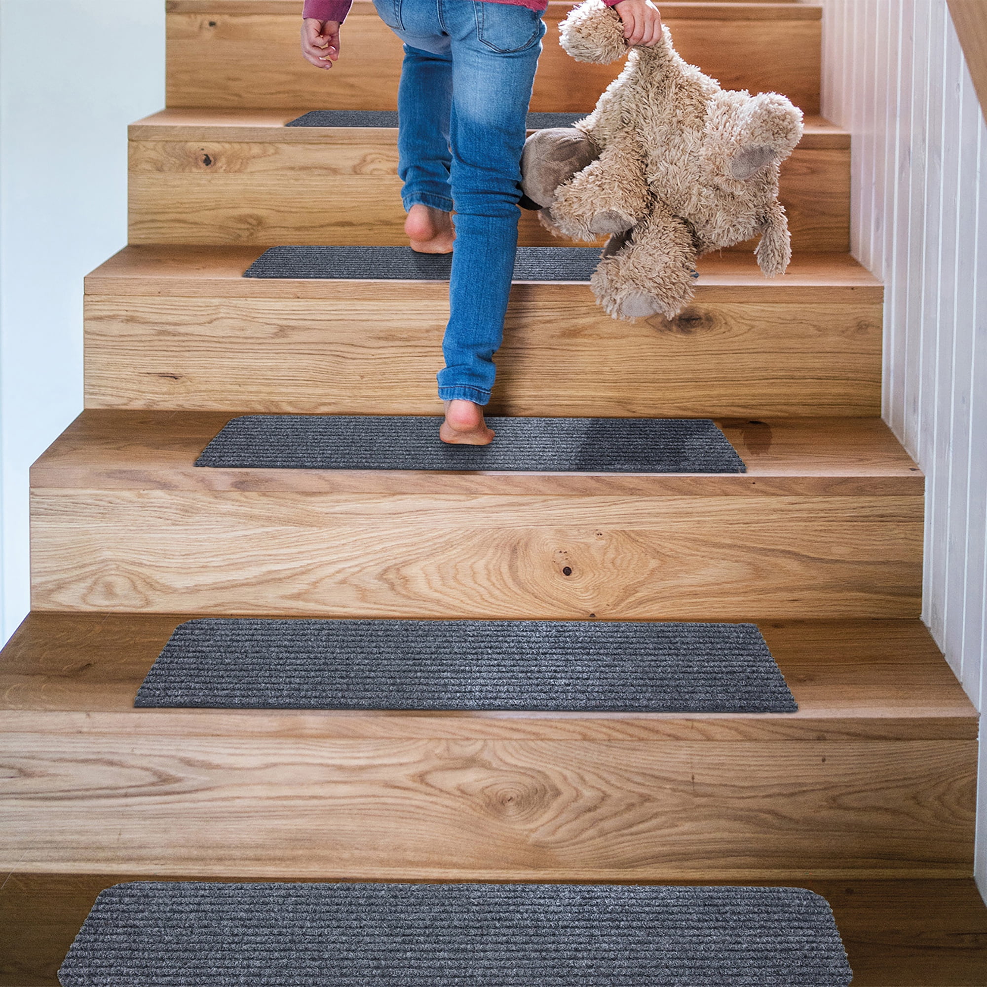 [KEY ATTRIBUTES]: Size: 14 Pack (8″ x 30″) | Thickness: 0.2 in. | Color: Gray [ULTRA THIN]: An ultra thin pile thickness of 0.2 inches offers ideal functionality that is perfect for your stairs. It provides a low profile so that it doesn’t give your stairs a bulky feel while also reduces tripping. [NONSLIP & STAIN RESISTANT]: Made in India with high quality and stain resistant Polyester material. The rubber backing minimizes slipping. To ensure comfort and additional grip please purchase double sided rug tape. [TRENDY STYLE]: This contemporary solid design indoor/outdoor stair treads feature a gray background that will enhance the look of your home. Its timeless design can be integrated into a variety of home décor styles. [KID & PET FRIENDLY]: Safe for everyday high foot traffic areas and more resistance to life’s unpredictable messes from kid or pet activity. [EASY CARE]: Stress free cleaning includes regular vacuuming (no brushes/rollers) and gently spot cleaning out minor stains with mild detergent or carpet cleaner. Creases and curling should flatten with 5-7 days of regular use. Hose washing is also applicable, simply wash down with a hose and leave to dry! To expedite this process, reverse roll the corner with the crease and gently apply pressure. [RECOMMENDED USE]: These stair treads will add the finishing touches to your basement steps, front steps, back steps, deck, and outdoor steps. [TRUSTED BRAND]: Quality rugs made for over 20 years. Founded with the aspiration to embellish indoor and outdoor spaces. Sweet Home Stores aspires to provide trendy rugs while always meeting customer needs.