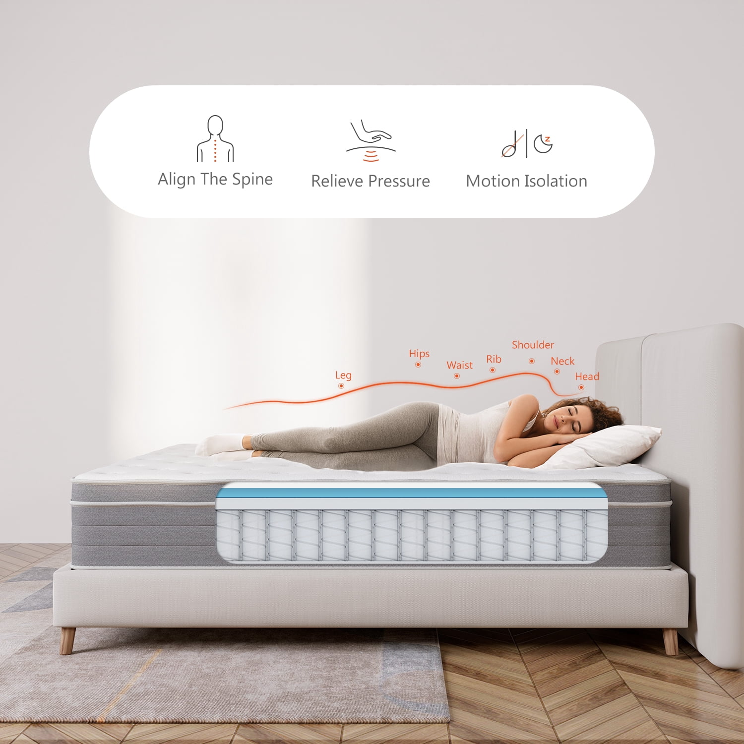 Sweetnight Island 12″ Adult Pocket Spring Hybrid Mattress in a Box Adult, Queen Size