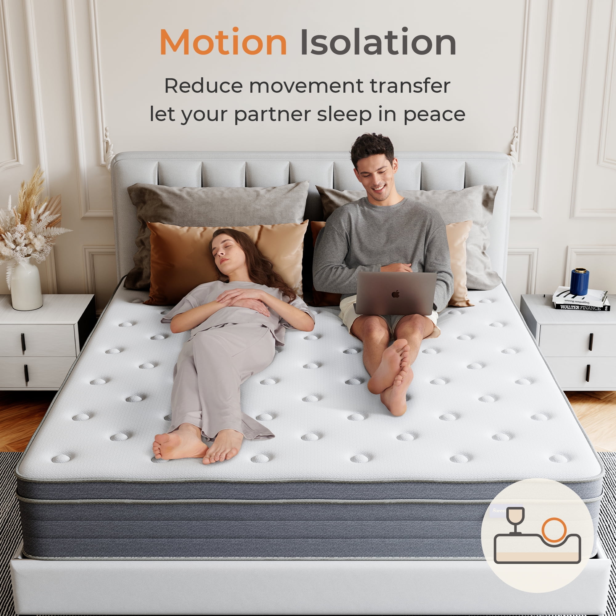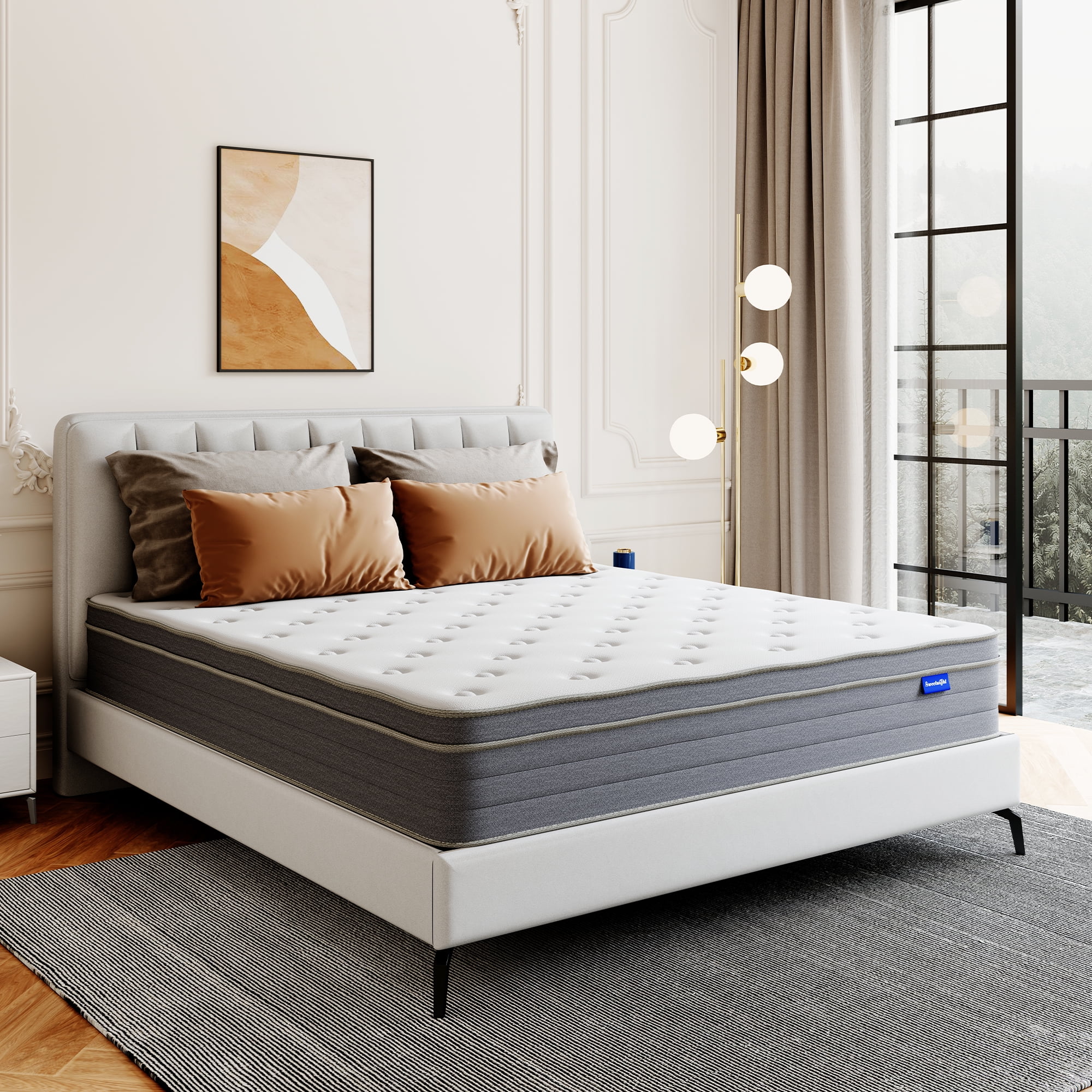 Feel restless and wake up in pain? Can’t sleep through the night? The Sweetnight gel memory foam hybrid mattress could help. This hybrid mattress combines memory foam and innerspring mattress benefits for a mix of support and comfort. Gel-infused memory foam adjusts to your weight and helps regulate temperature so you can sleep cool. You won’t feel the coils either. Pocket springs move on their own to fit your body, giving you proper alignment and ideal support on this pocket spring hybrid mattress. The CertiPUR-US foam makes sure your sleep is safe and healthy. Sweetnight hybrid full mattress is shipped in a box for easy setup. You can pick from 10-Inch or 12-Inch sizes.