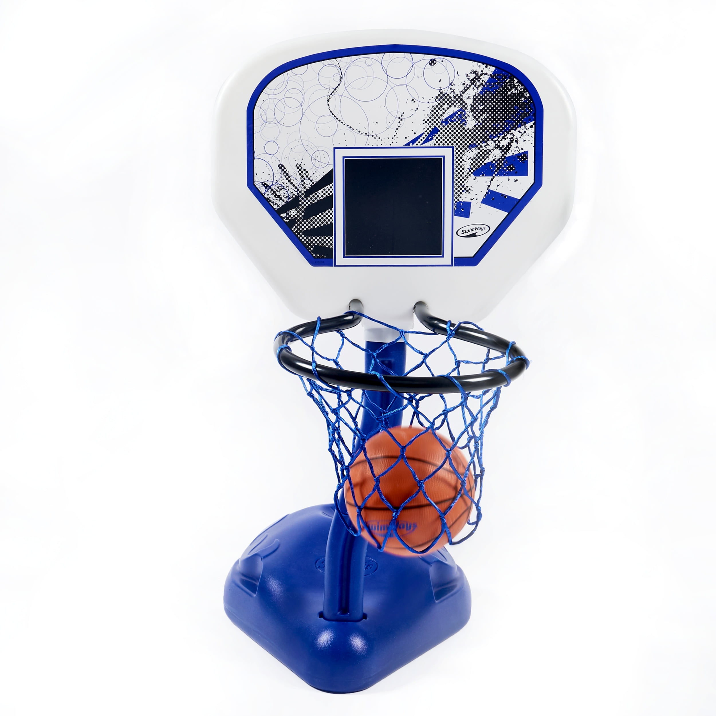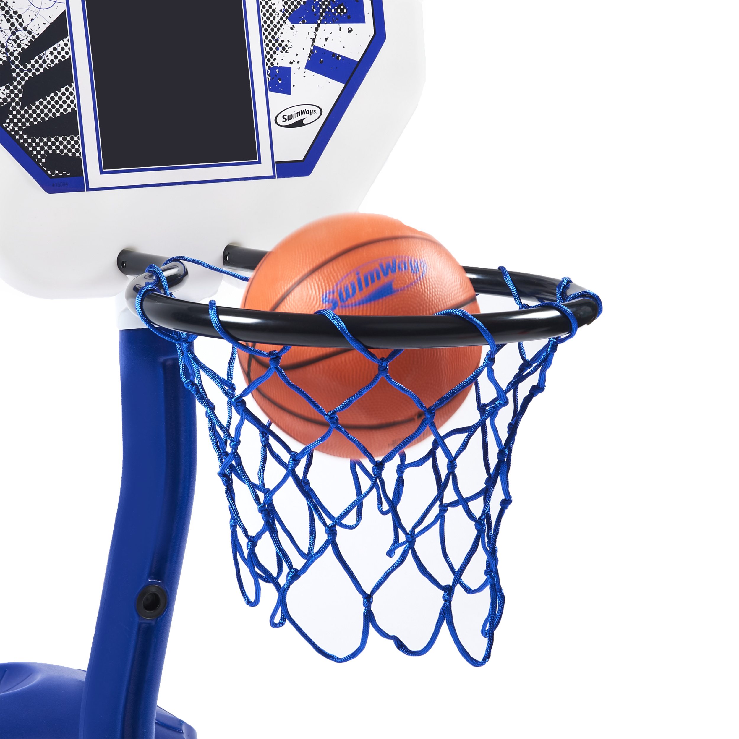 The SwimWays Poolside Basketball game is a heavy-duty swimming pool basketball game set. The extra large durable 22.25-inch backboard and base with built-in ball rest provides maximum stability during gameplay. With quick and easy no-tools assembly, you’ll be ready to play in no time. The Poolside Basketball game is great for keeping the kids active and cool on those hot summer days. Who knows? Mom or Dad might join in too – it’s outdoor fun for the entire family! Pro-style basketball included. Sold individually. For kids age 6 and older.