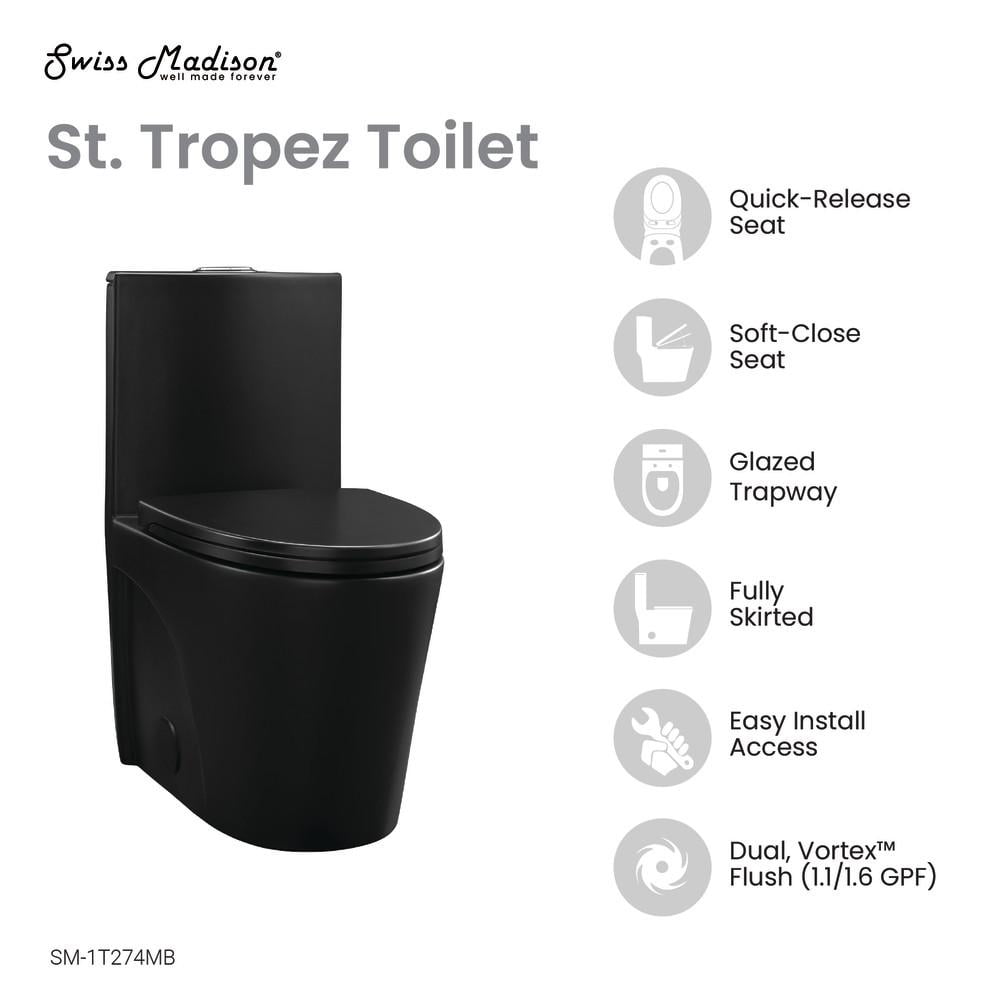 Swiss Madison St. Tropez One Piece Elongated Toilet Dual Vortex Flush 1.1/1.6 gpf