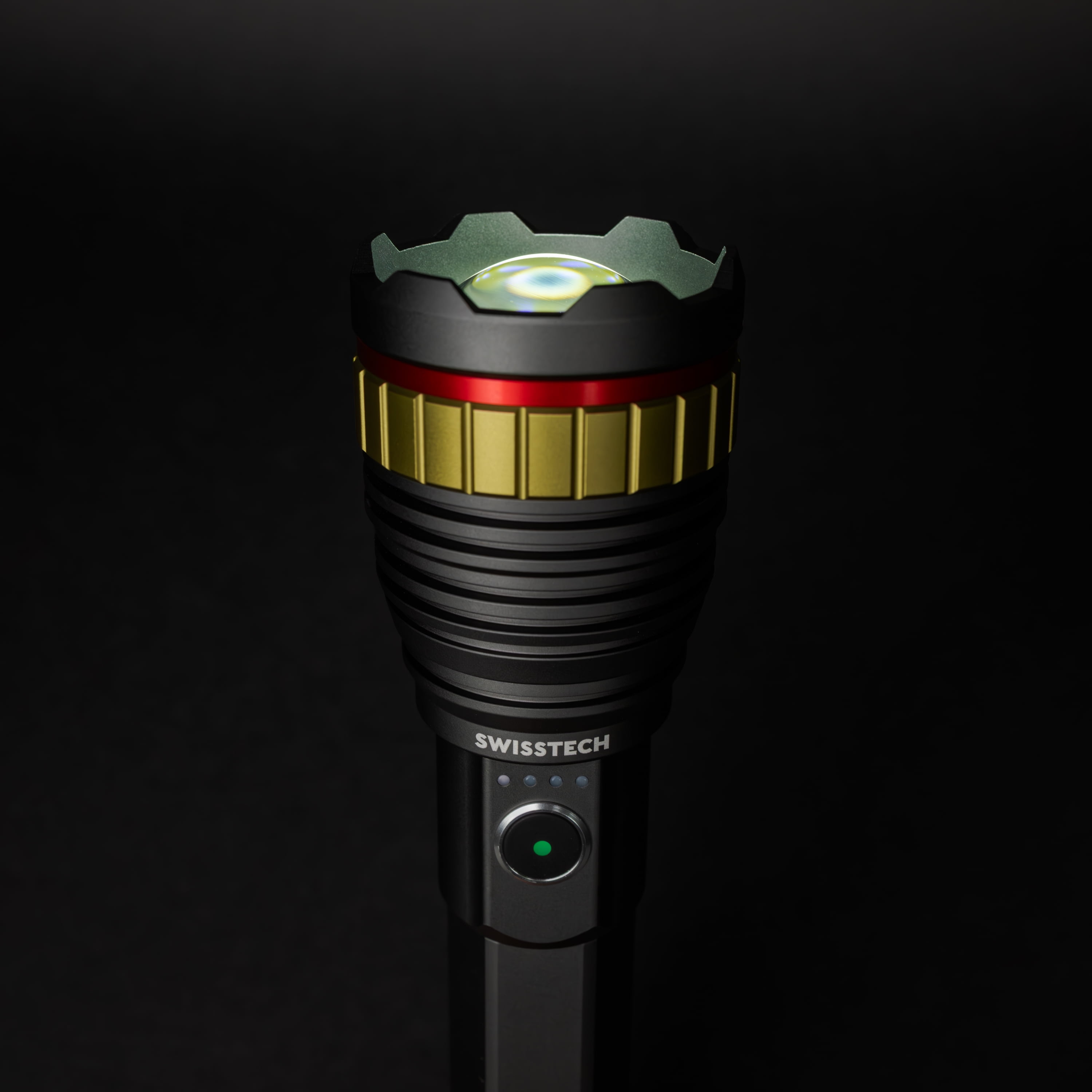 Swiss Tech 10,000 Lumen Rechargeable LED Flashlight with Power Bank, Waterproof for Camping