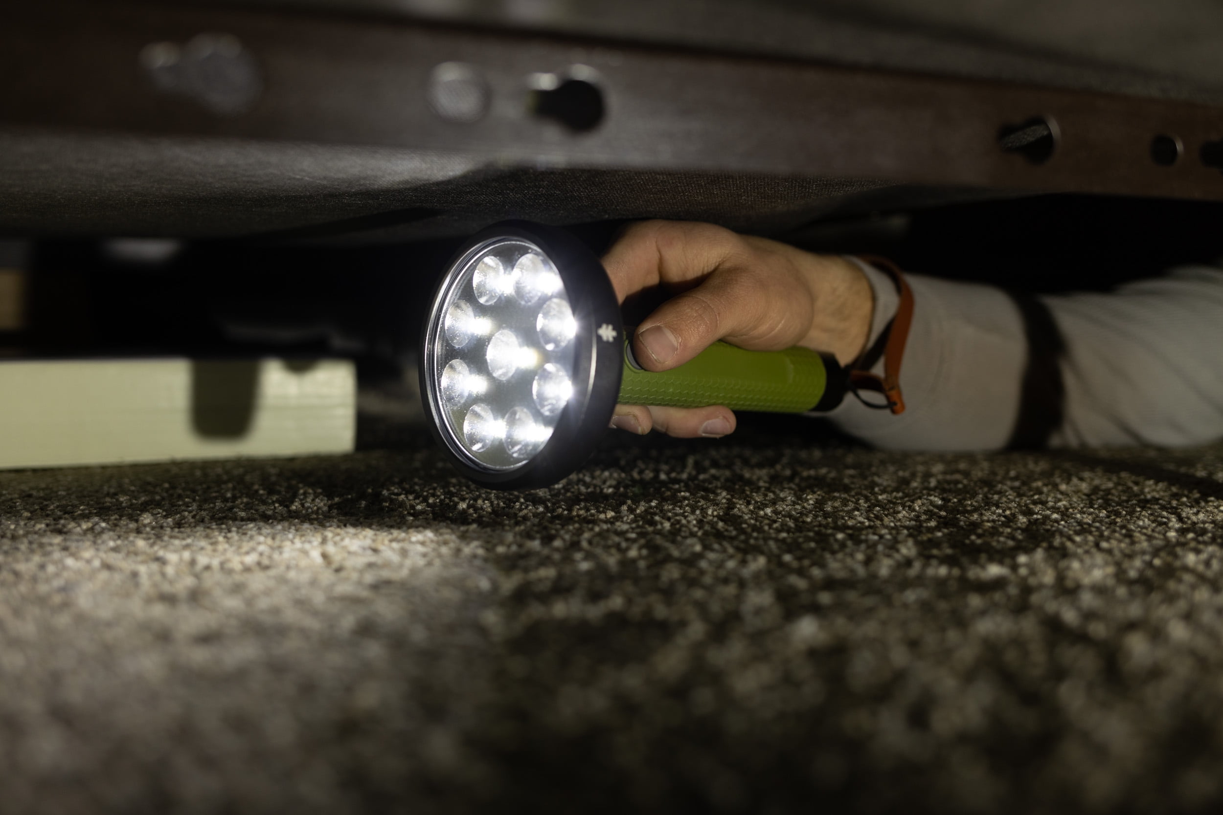 Light up the darkest environments with confidence using the Swiss Tech 1200 Lumen LED Flashlight. Engineered for performance and reliability, this high-powered flashlight delivers an impressive 1200 lumens of bright white light, making it ideal for camping, emergency preparedness, outdoor adventures, or everyday use. With its solid 1.76 lb construction and rugged housing, it’s built to withstand tough conditions while offering a secure, comfortable grip. Equipped with a long-lasting rechargeable battery, this flashlight eliminates the hassle of frequent battery replacements. Multiple lighting modes allow for customizable brightness levels to suit your environment, while the precision lens ensures a powerful and focused beam.