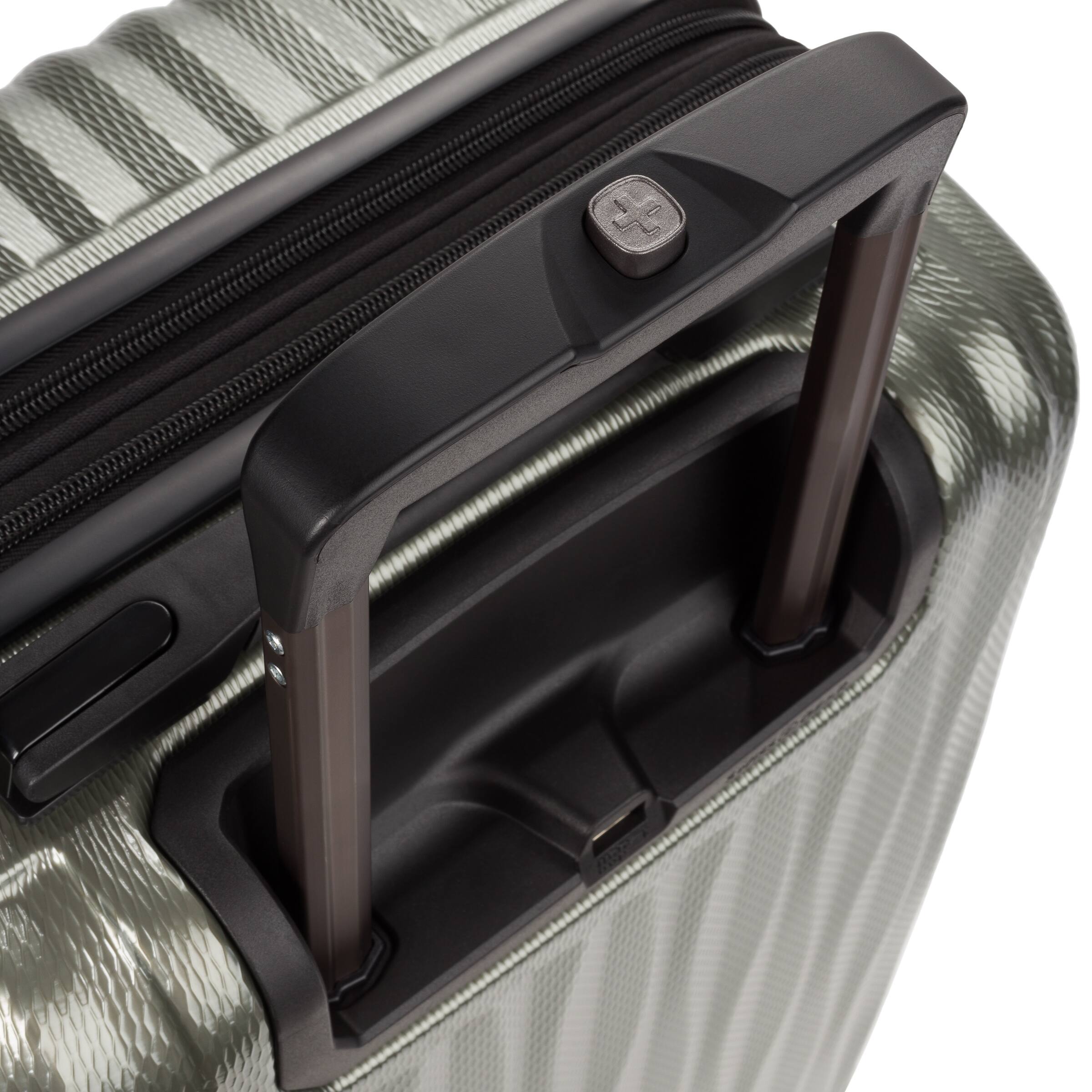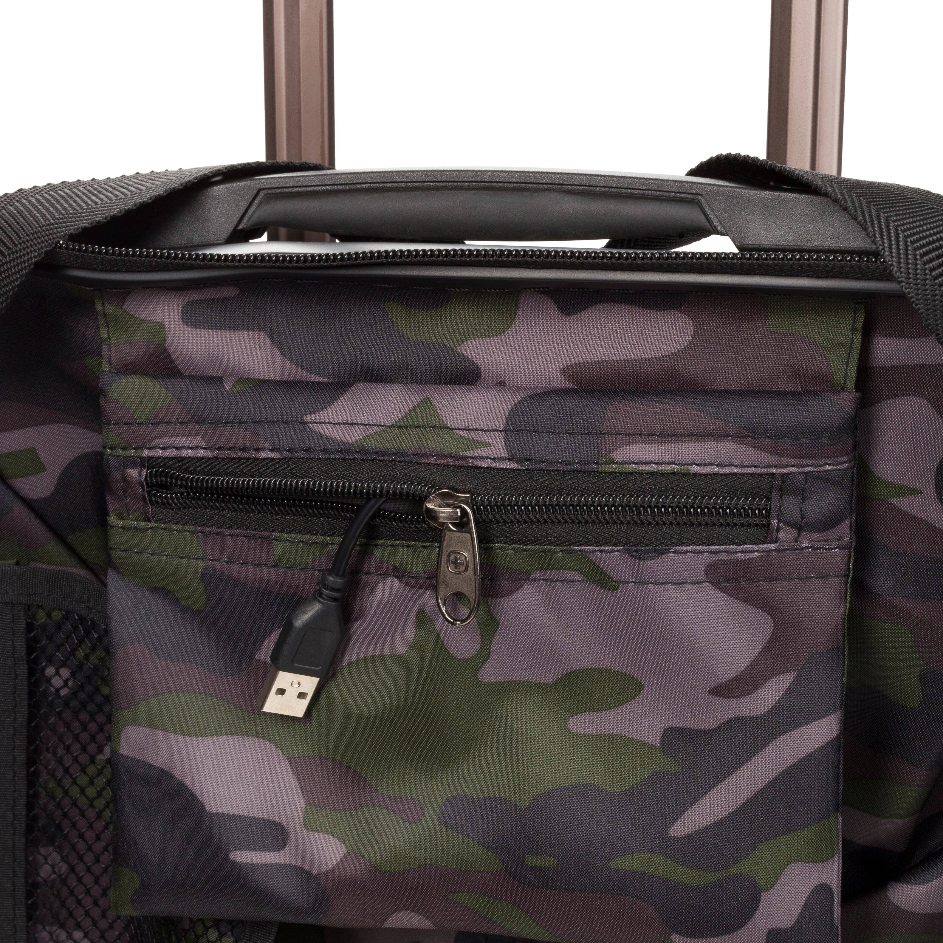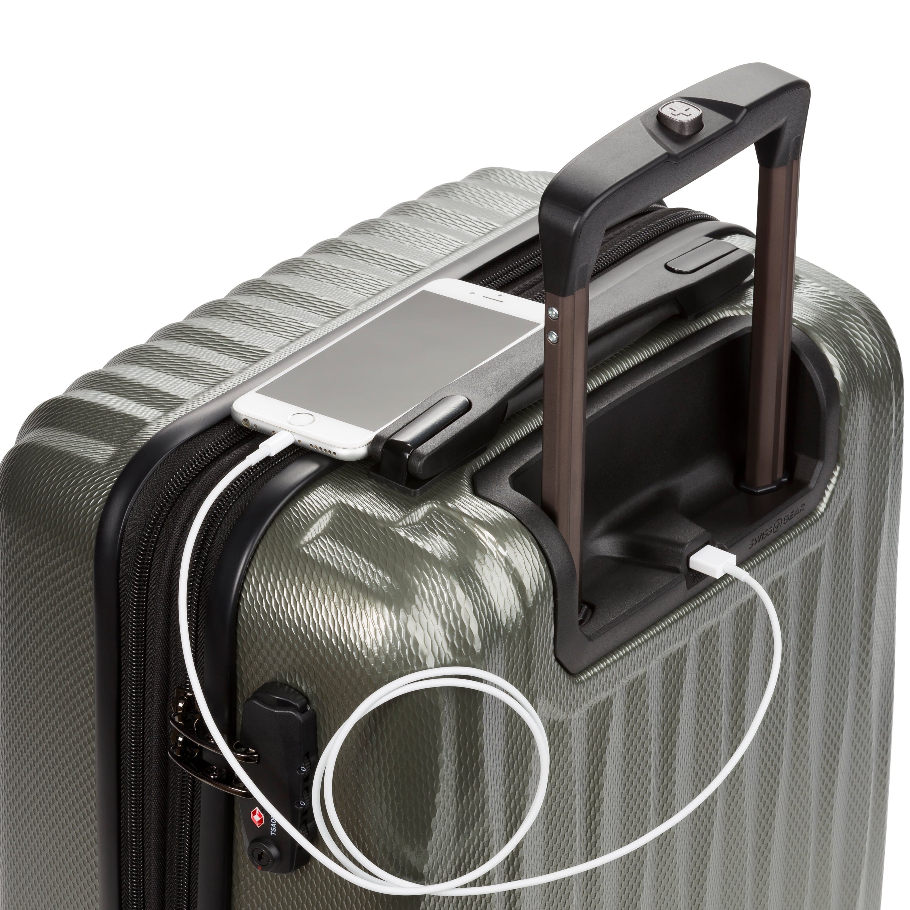 The SwissGear 7272 Energie collections combines a rugged polycarbonate hard-shell and architectural design, while its eight multi-directional spinner wheels provide 360-degree maneuverability. Energie introduces USB capability so you can now rejuvenate your drained smartphone or tablet right from the convenience of your luggage. An internal mesh pocket hides the USB cord that is connected to the back of its exterior so hook it to your power bank (not included) to charge a low battery. The split main compartment features a tie-down clothing compartment with zippered accessory pocket, and a large, zippered compartment with additional mesh and cinched pockets. Also includes 2″ expandable packing space, and an integrated TSA-approved lock for extra security.