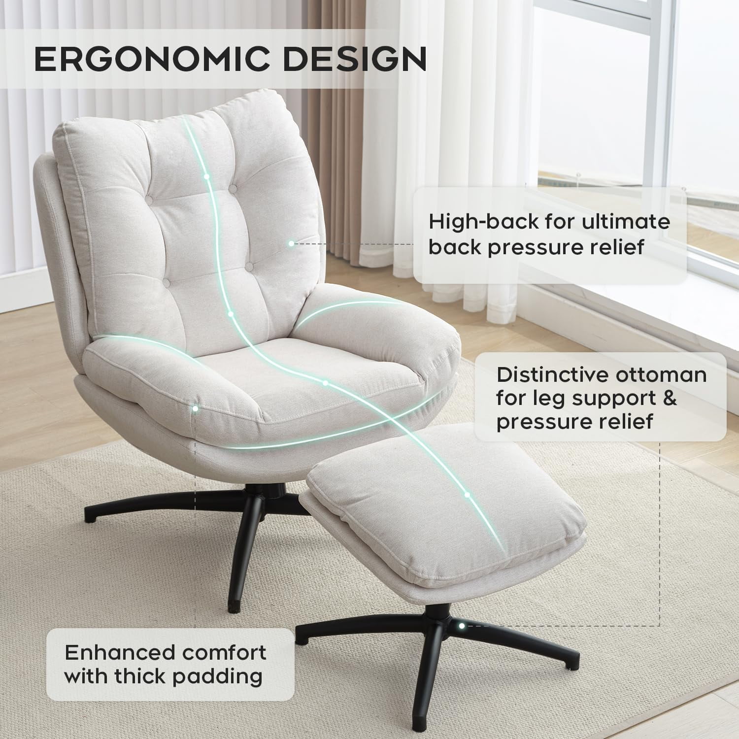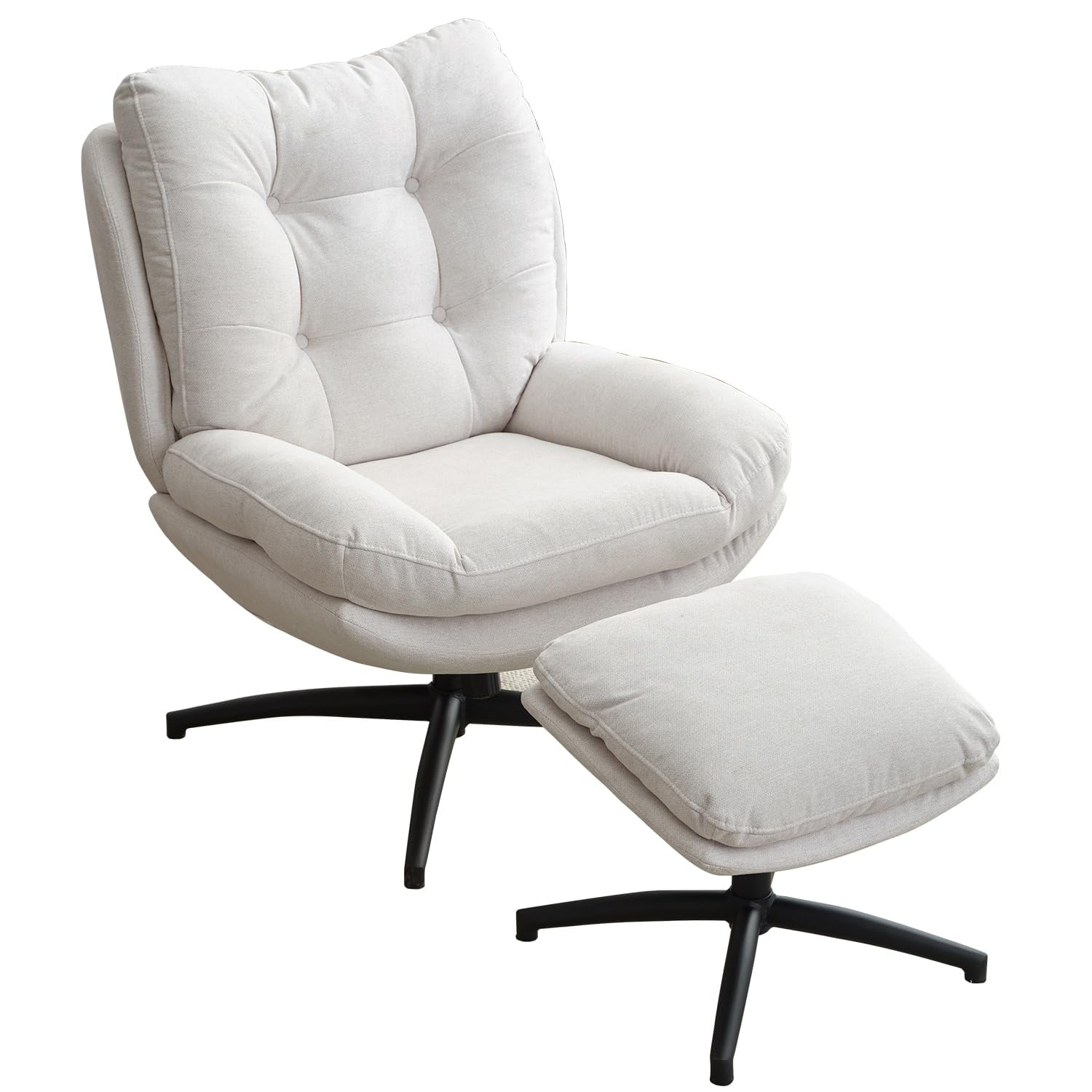 Swivel Accent Chair with Ottoman for Living Room Bedroom Reading Room, Cozy Lounge Armchair Fluffy Round Tufted Back Adult Gifts for Small Room Lazy Relax Read TV Chair,Gray